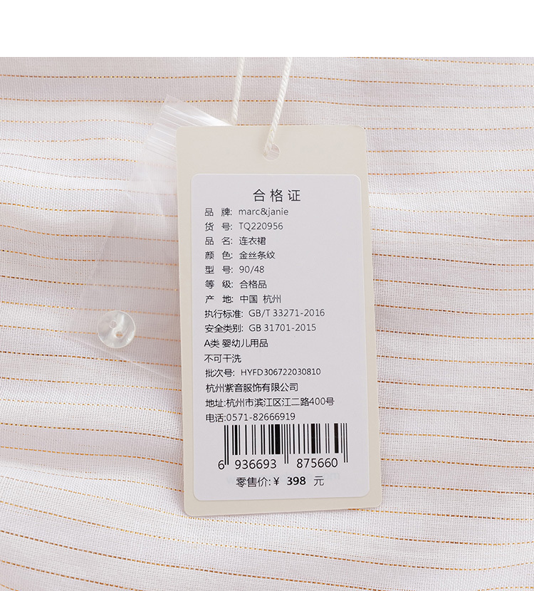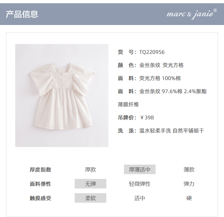 【打折】马克珍妮夏装新款 女童复古方领蝴蝶袖连衣裙220956