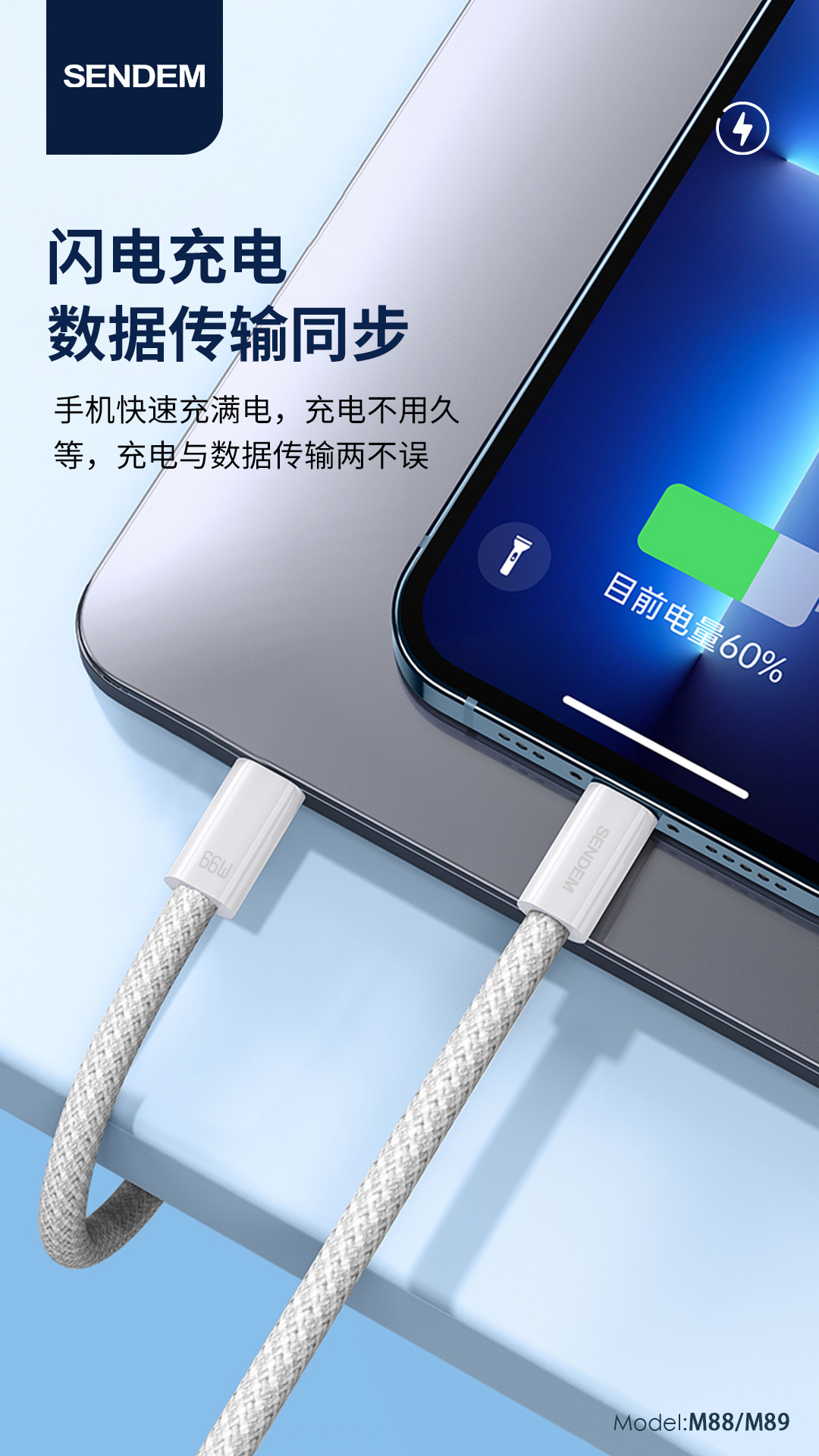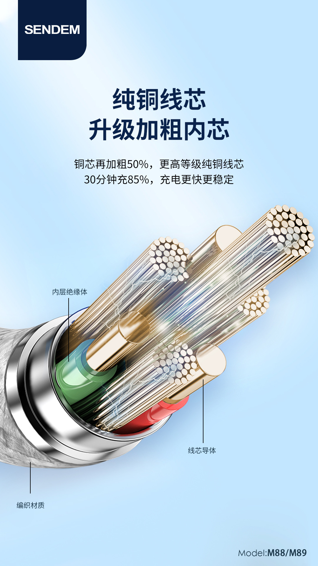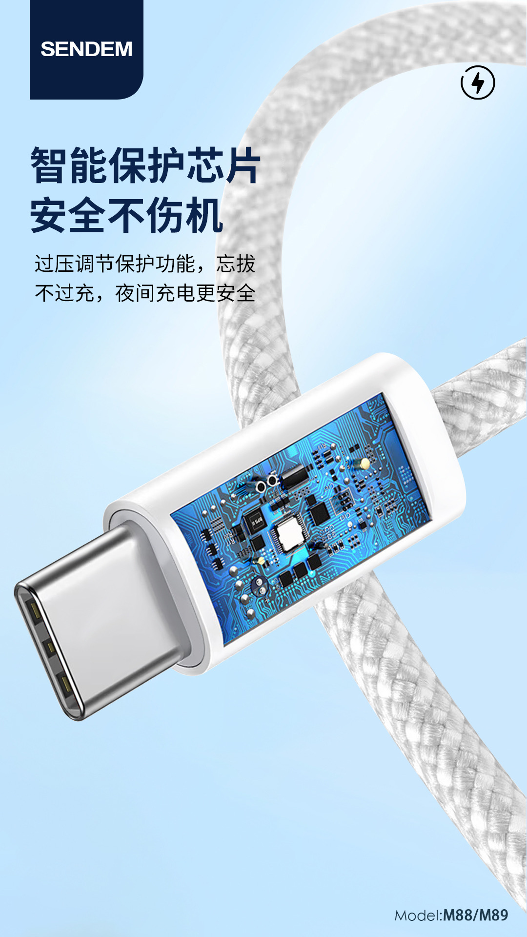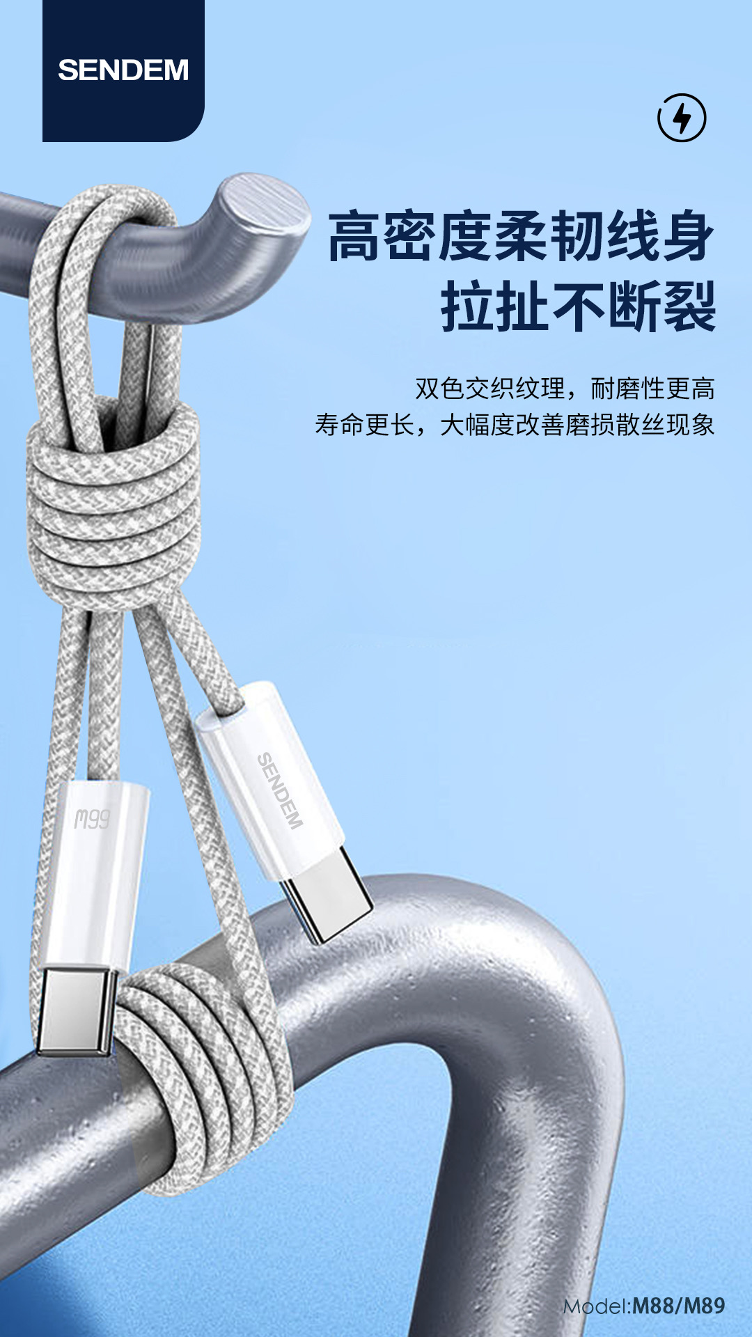 66W原装type-c数据线纯铜线芯加粗智能保护芯片安全不伤机M89数据线