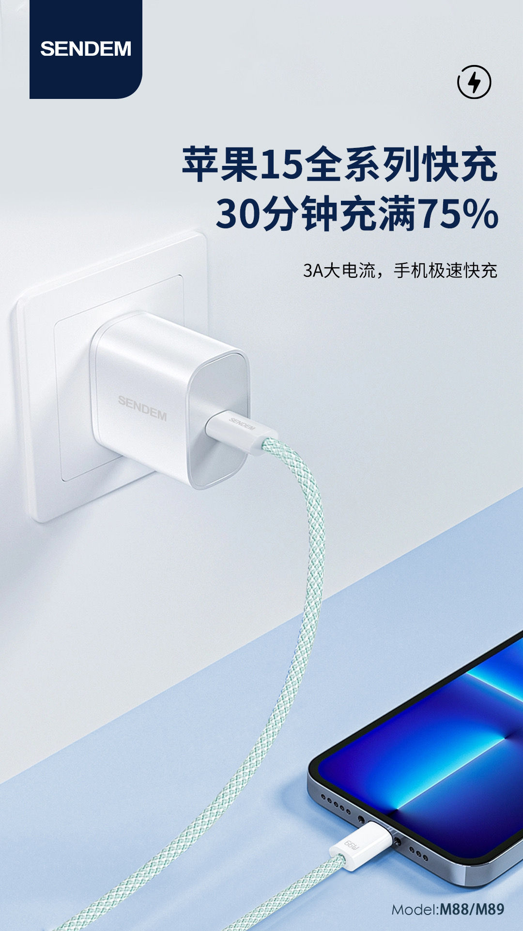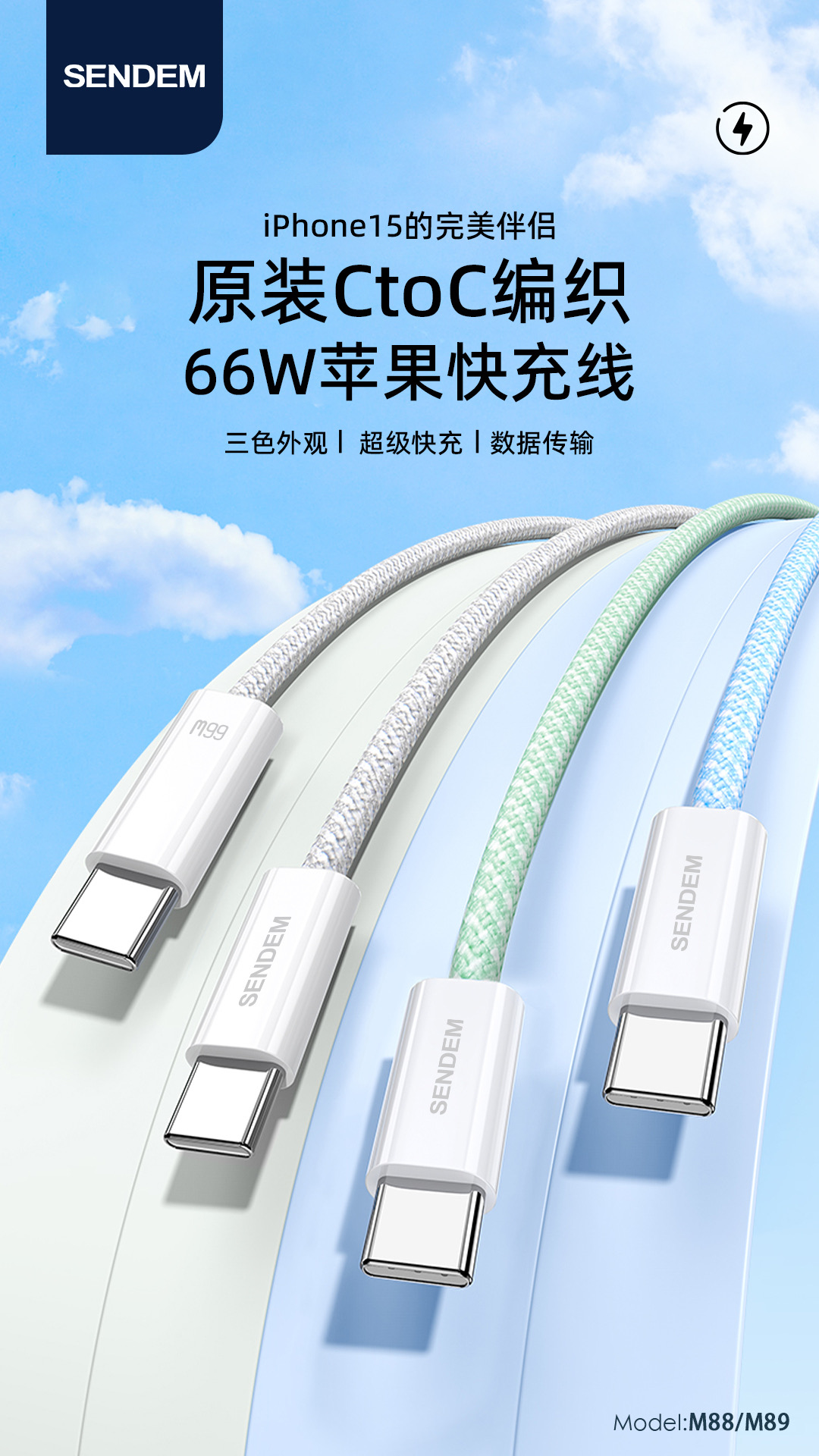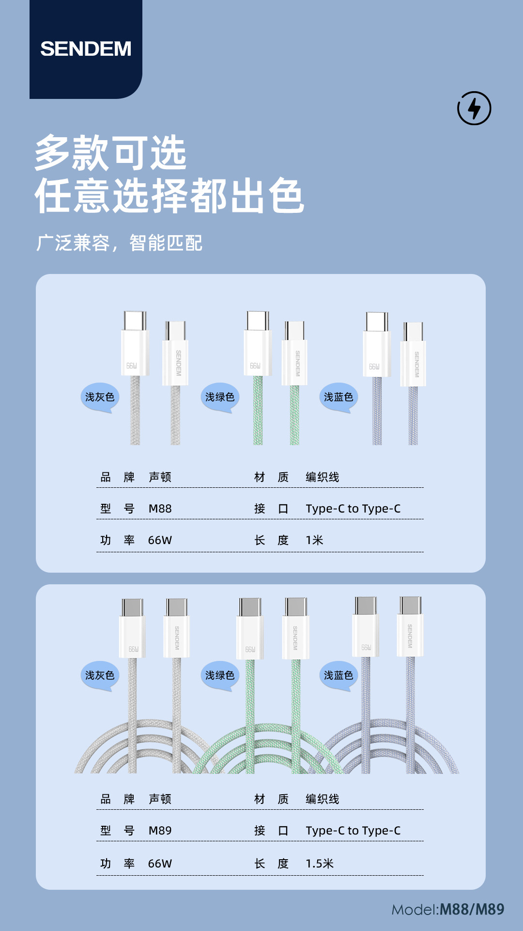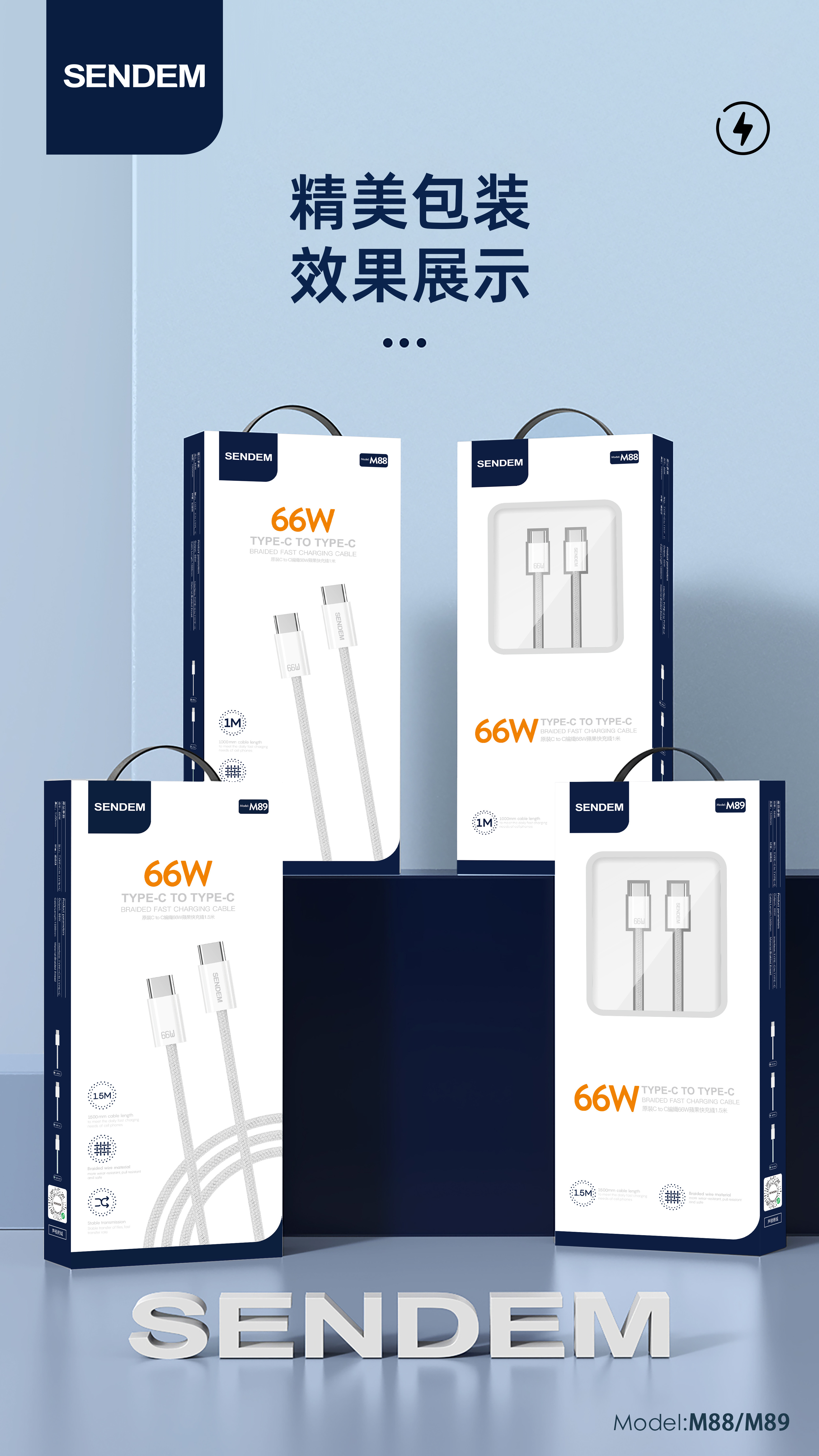 66W原装type-c数据线纯铜线芯加粗智能保护芯片安全不伤机M89数据线