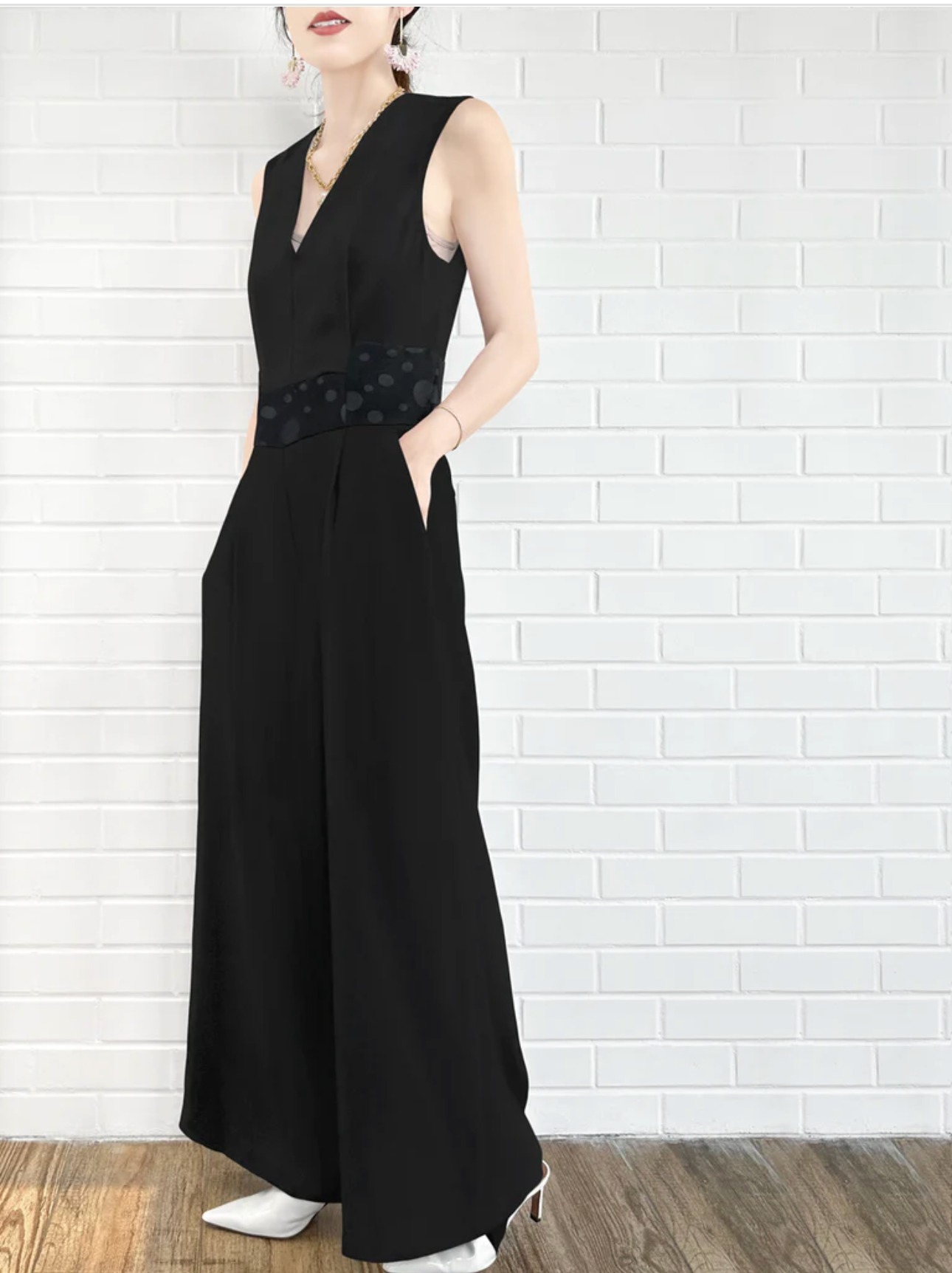 TYNVIE 荷叶边袋口装饰廓形西装-蓝色白点