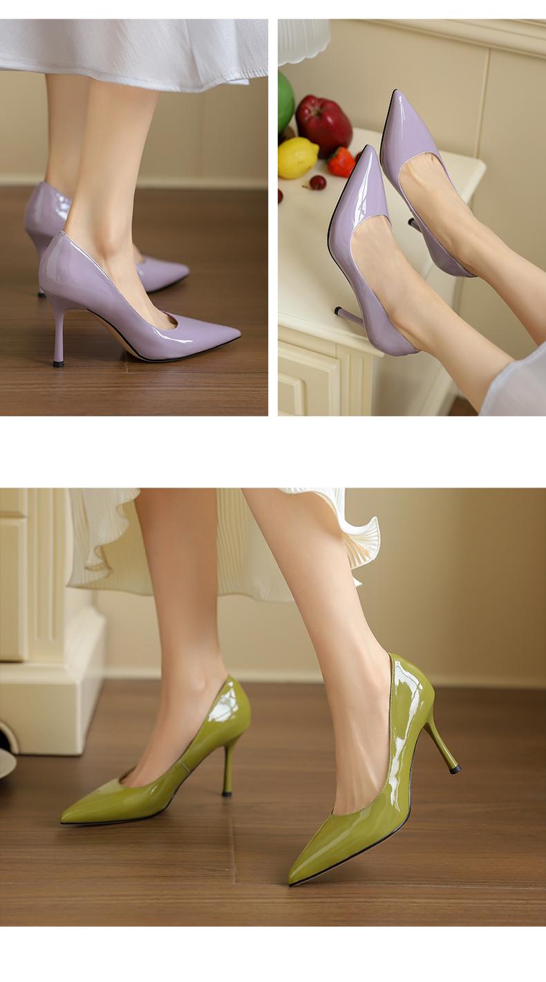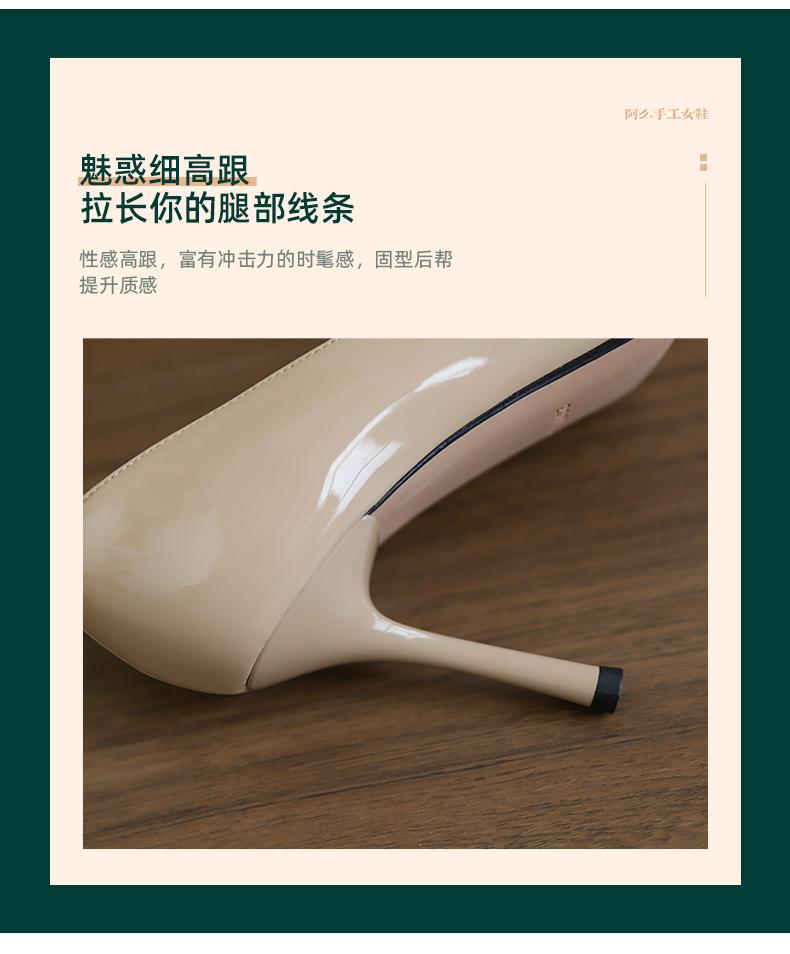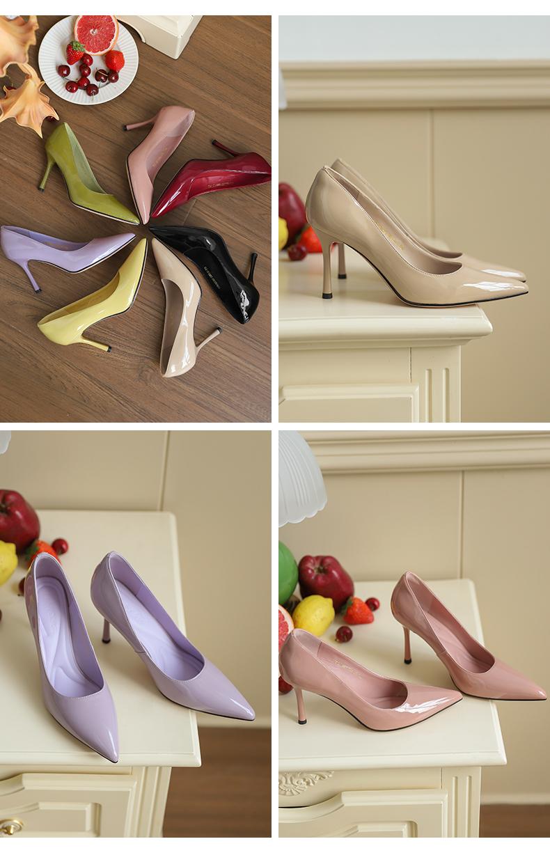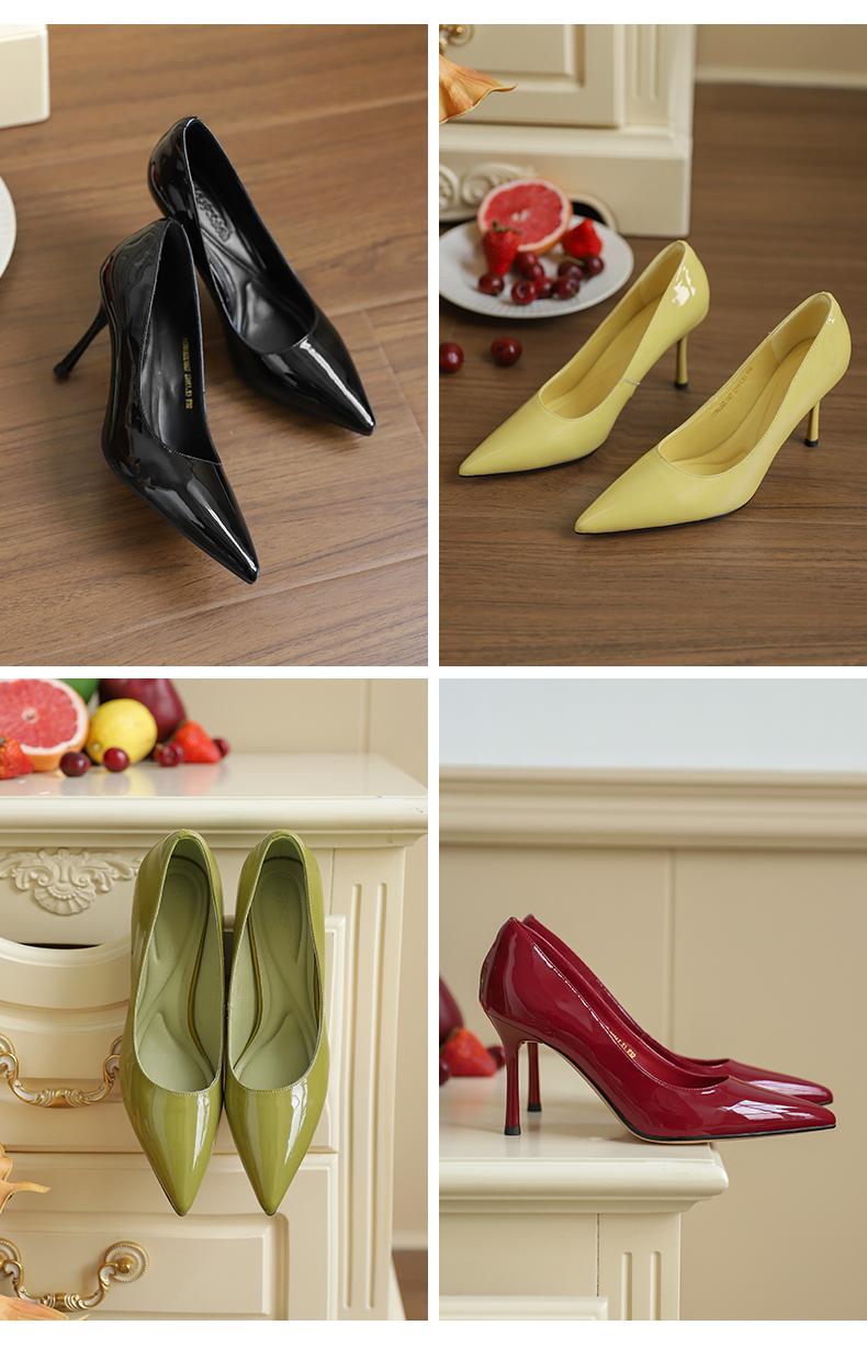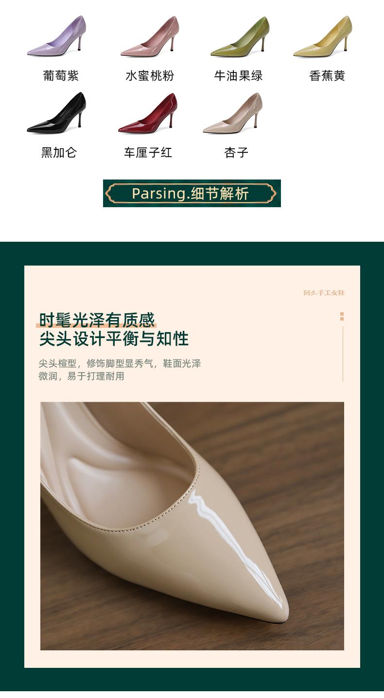 阿么手工女鞋漆皮细跟高跟鞋软底2025新款彩色网红尖头单鞋女8CM