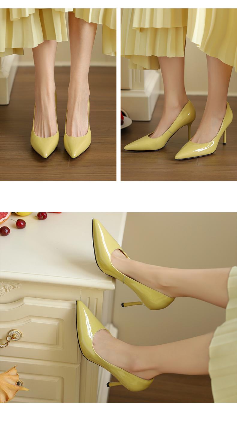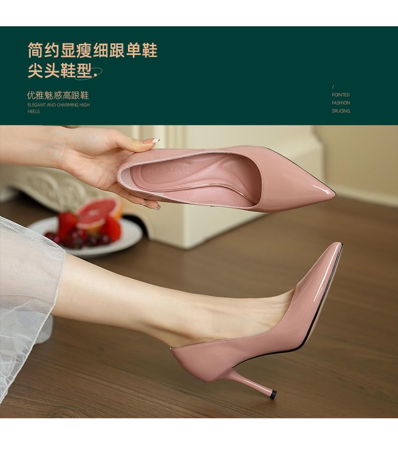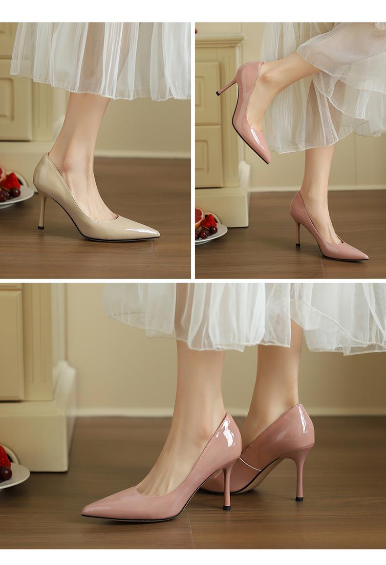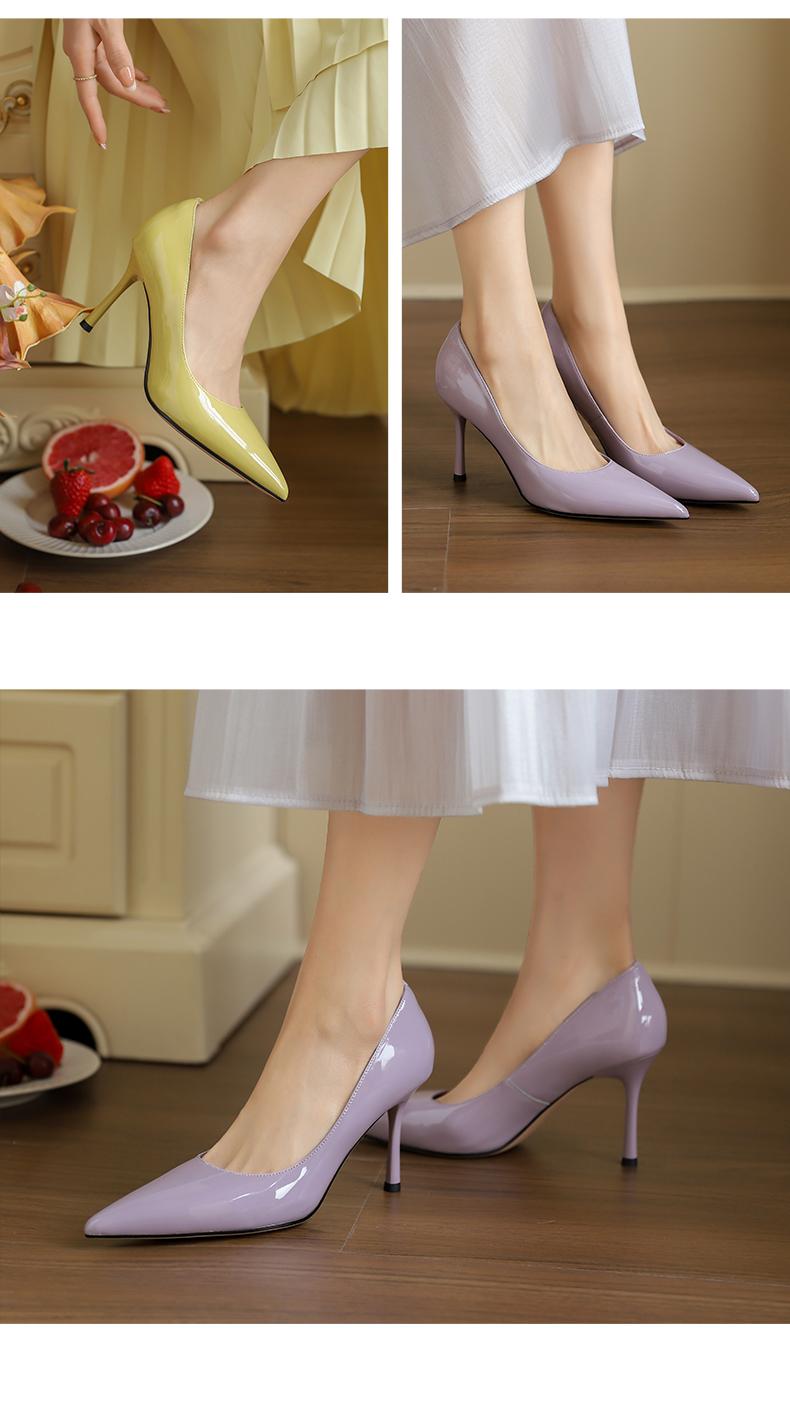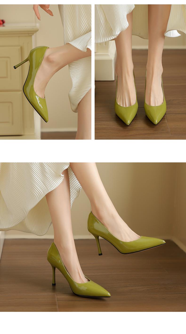 阿么手工女鞋漆皮细跟高跟鞋软底2025新款彩色网红尖头单鞋女8CM