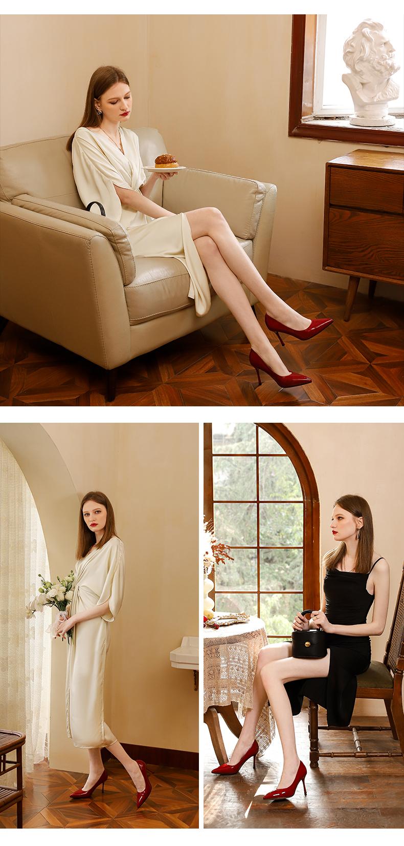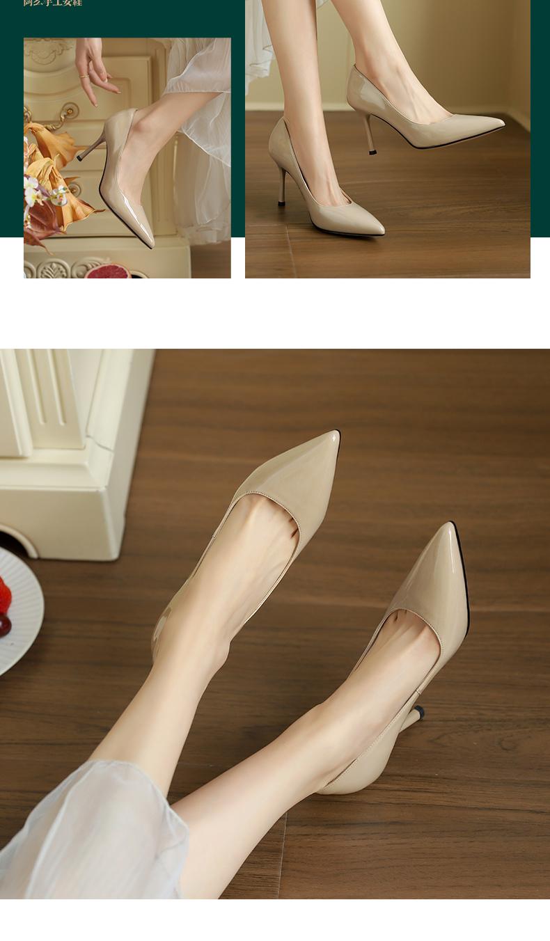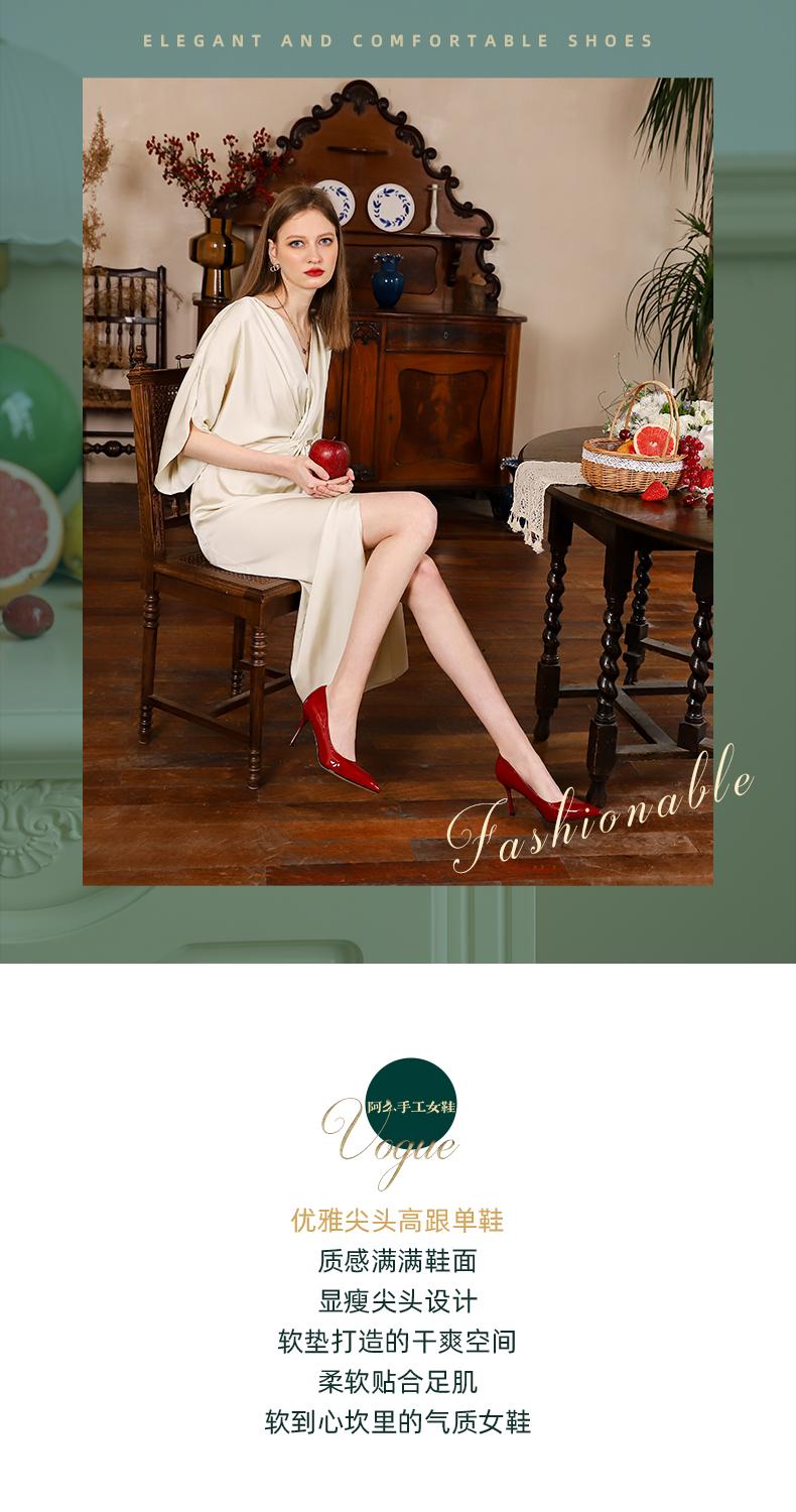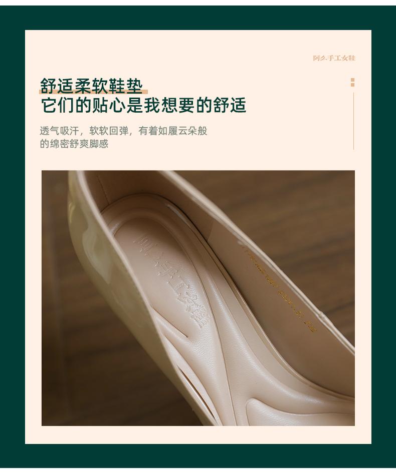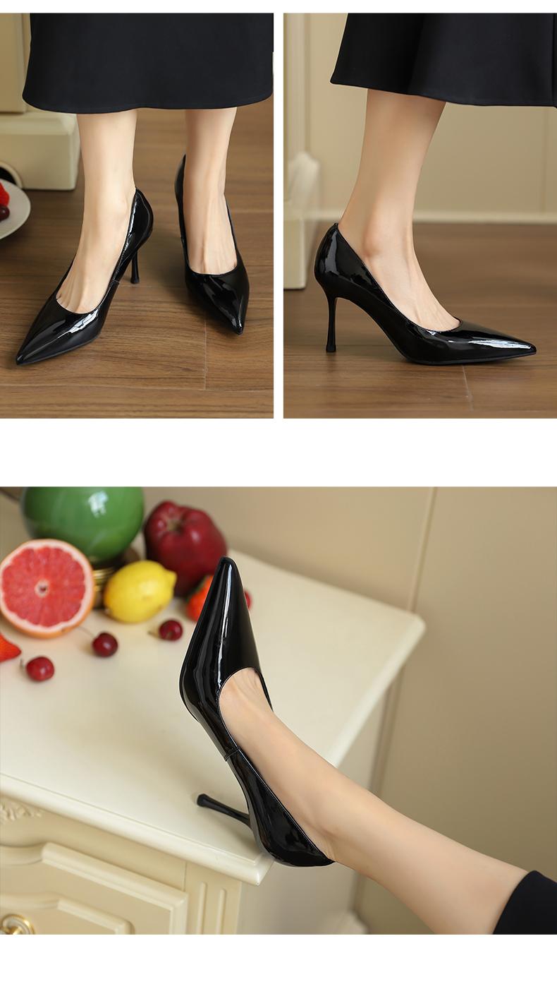 阿么手工女鞋漆皮细跟高跟鞋软底2025新款彩色网红尖头单鞋女8CM