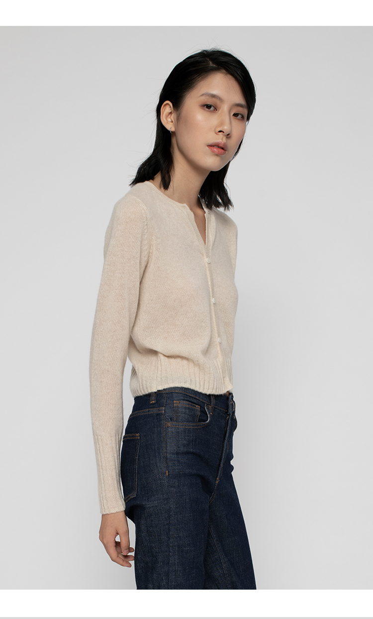 322工房无染色100羊绒衫女新款春秋薄款单穿长袖短款假式开衫A493