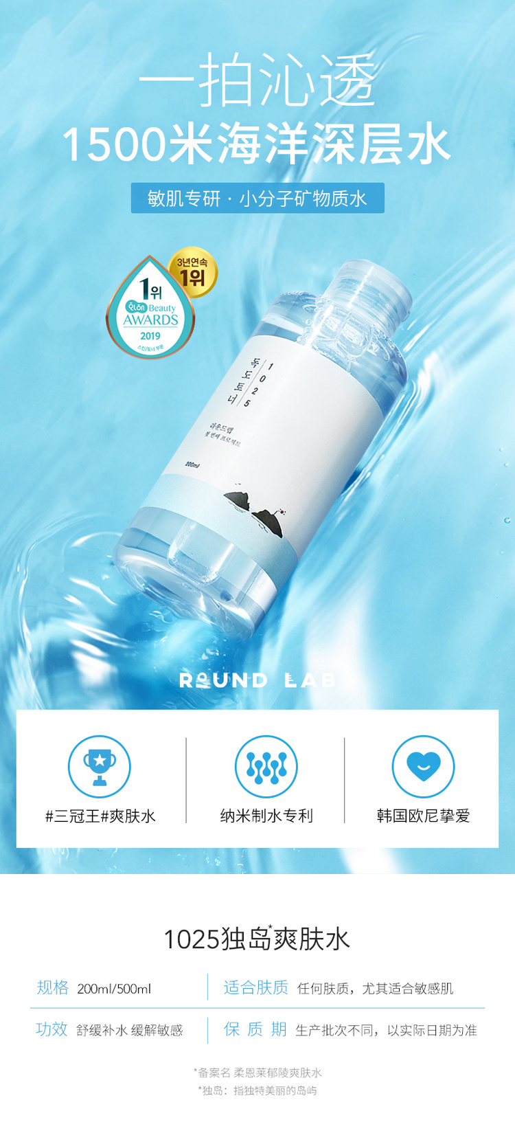 【中欧班列精选】ROUNDLAB独岛水/柔恩莱爽肤水200ml