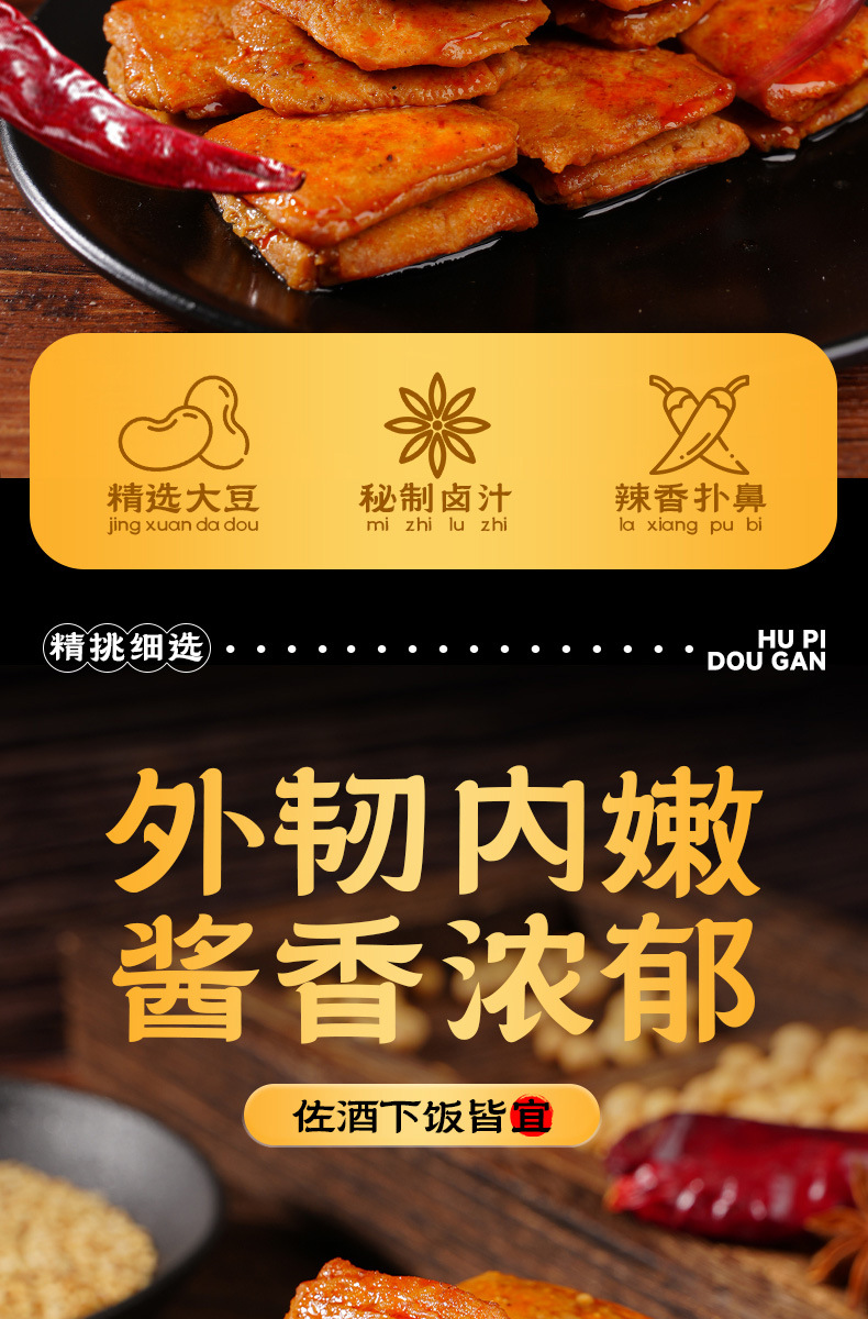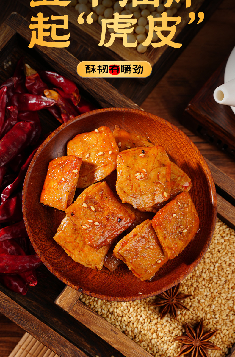 【19.9到手30袋❗虎皮爆汁豆干】豆干油炸起“虎皮”外韧内嫩,酱香浓郁有嚼劲,秘制卤汁精心卤煮,湖南特产休闲香辣味,解馋卤味追剧零食即食L