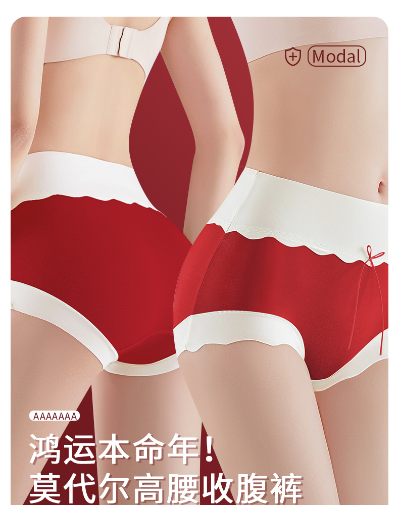 幸运红高腰收腹美臀裤(3条装)