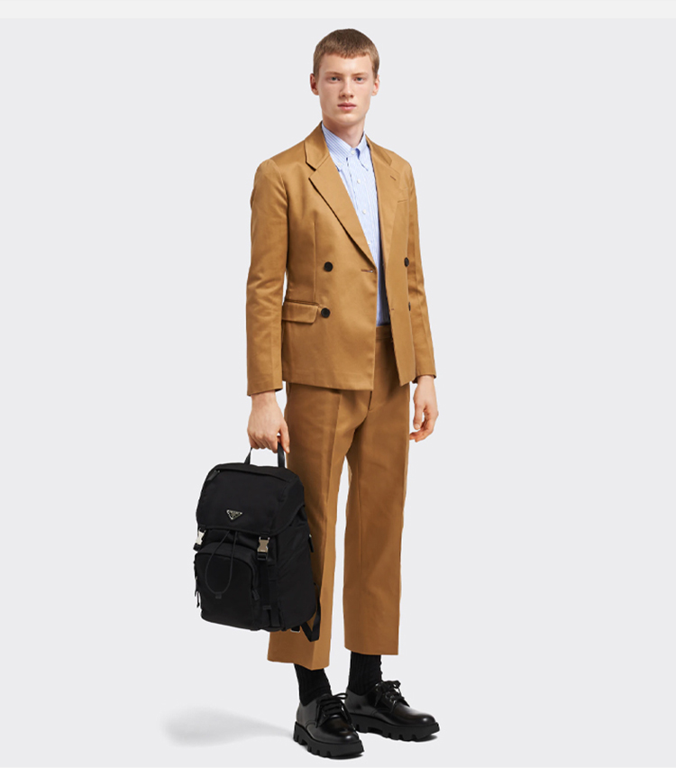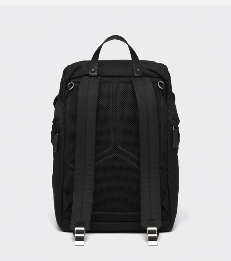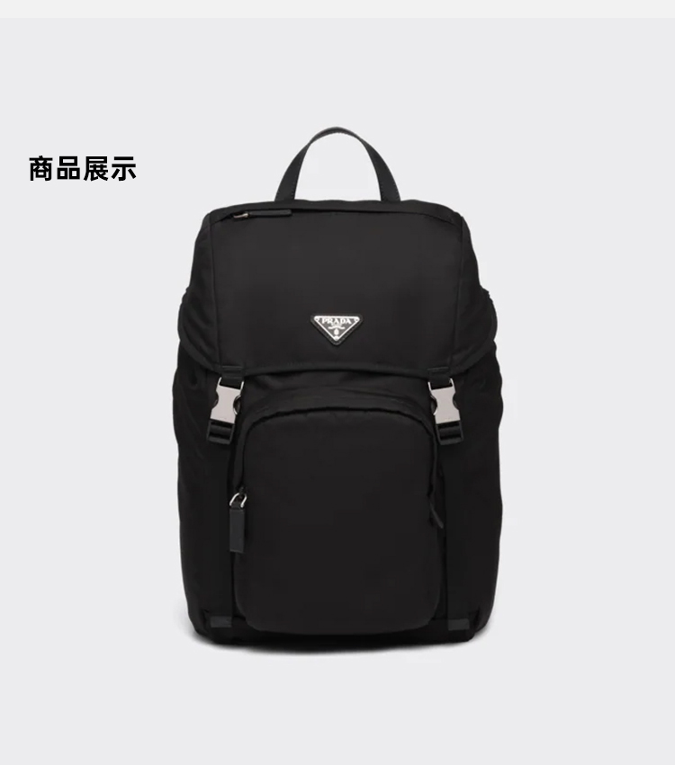 【二】PRADA 普拉达 男士 Re-Nylon 尼龙法琅三角形金属徽标手提双肩背包 黑色 2VZ135 2DMG F0002 HOL