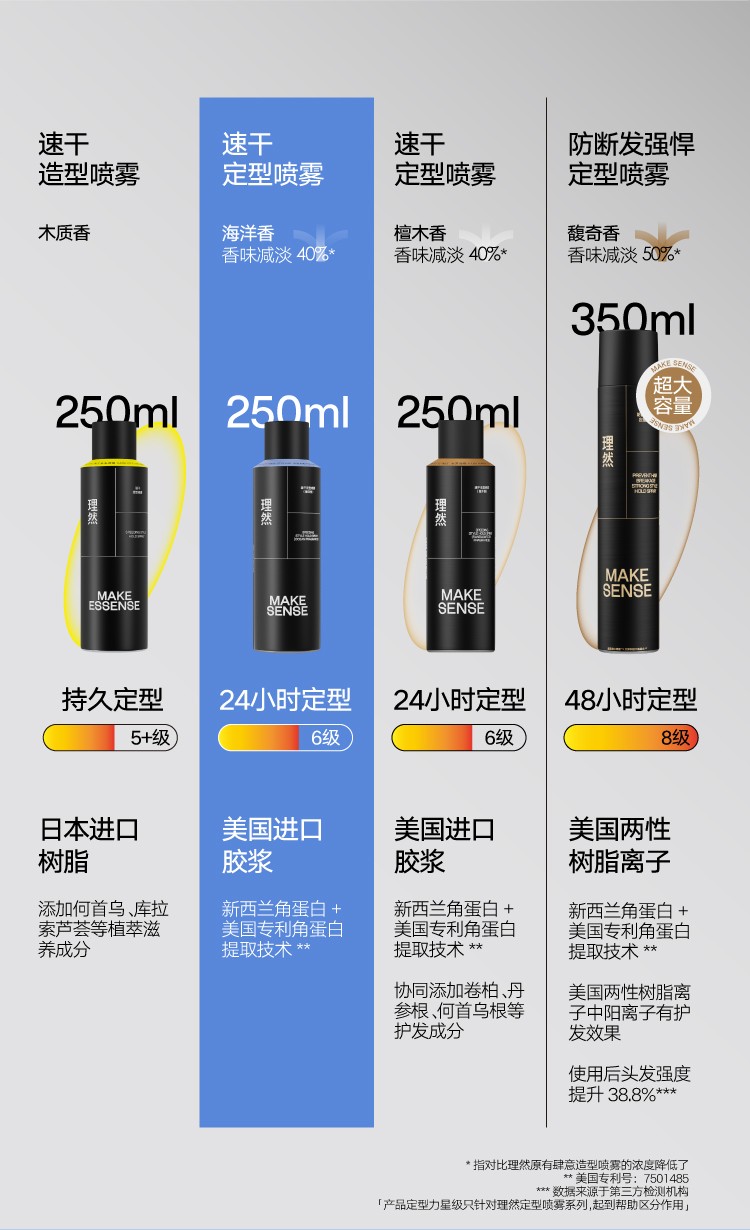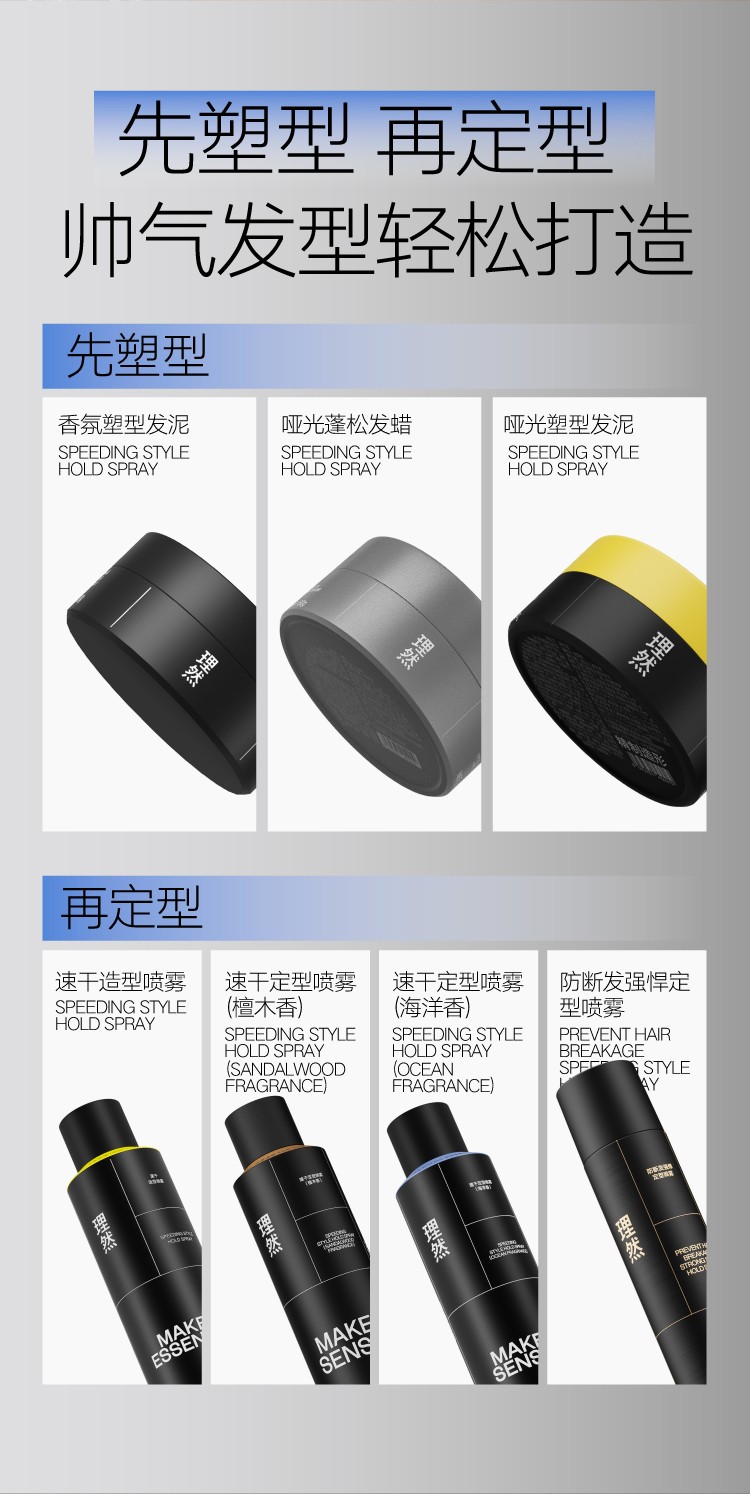 理然发胶定型喷雾男士速干24H立挺持久强力固定自然哑光海洋香250ml