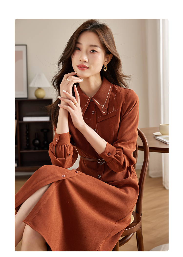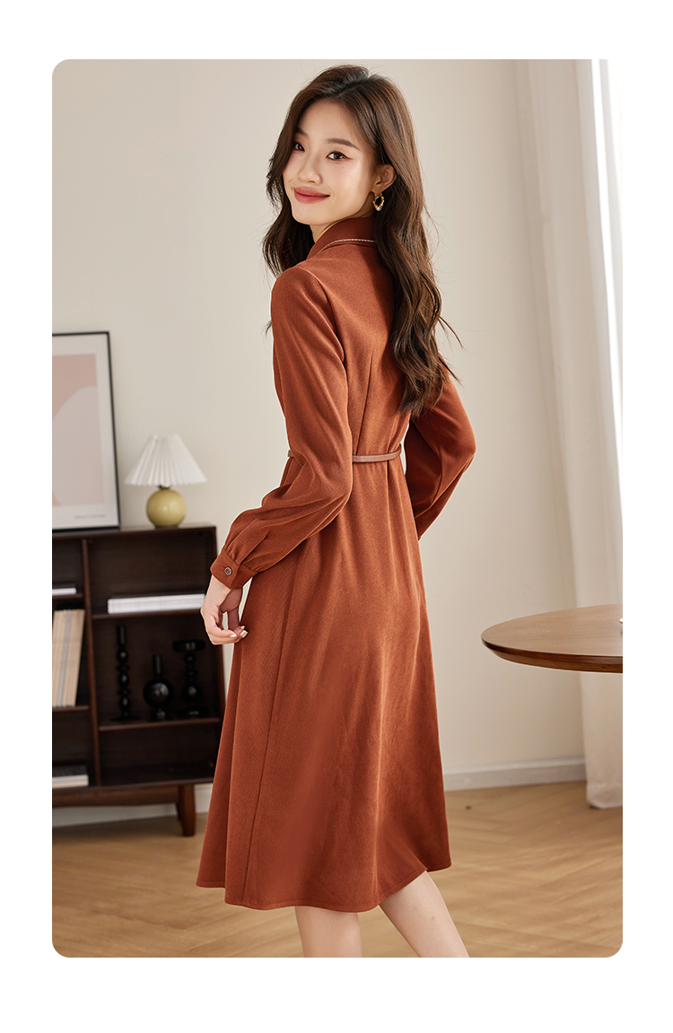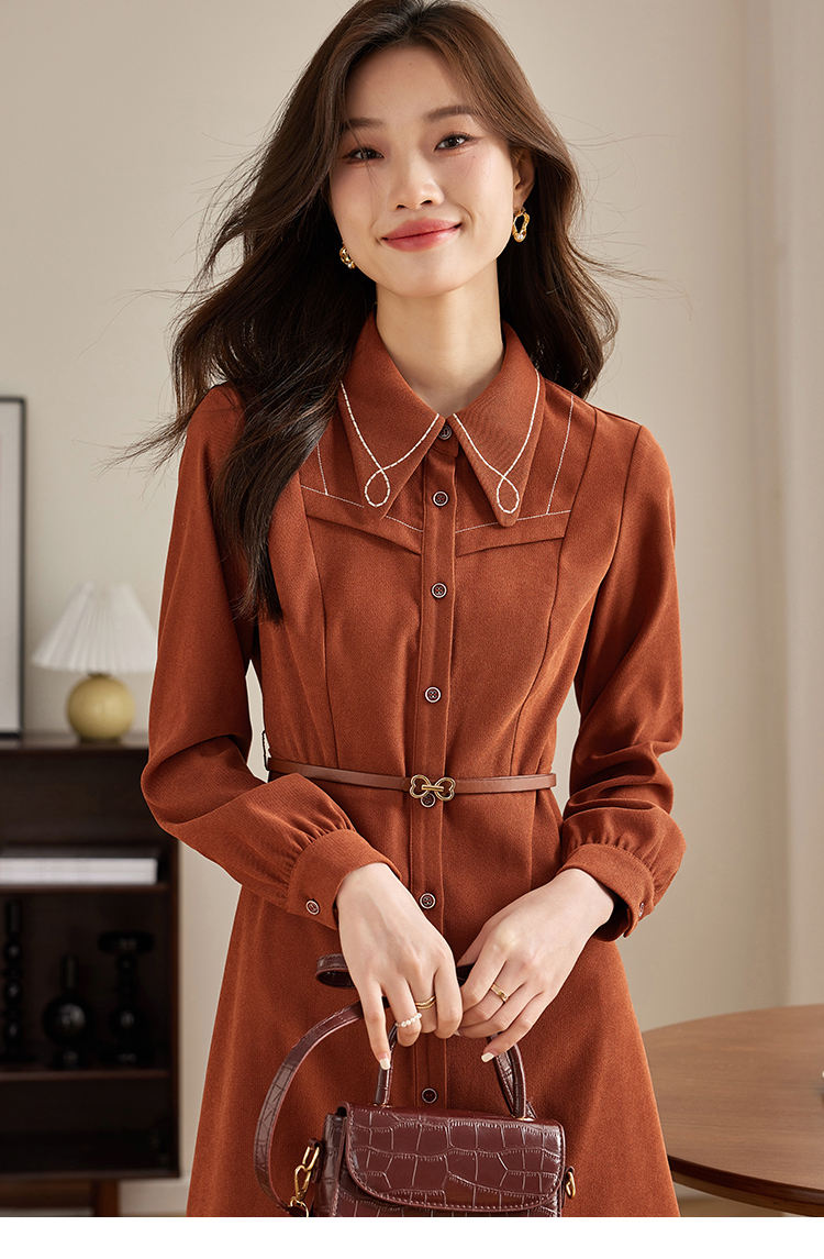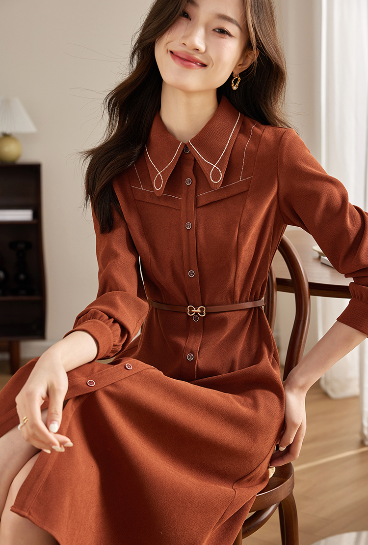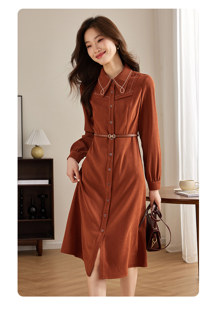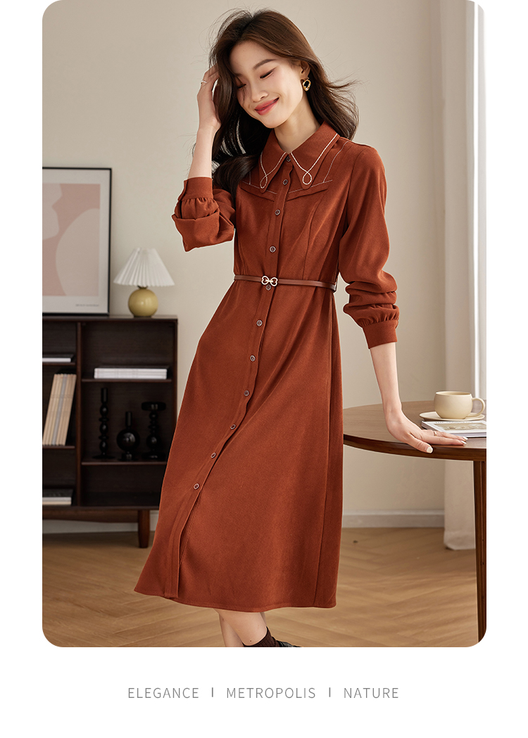 【专属特价】熙世界绒感磨绒连衣裙女长袖2025年秋冬新款高级感刺绣翻领衬衫裙