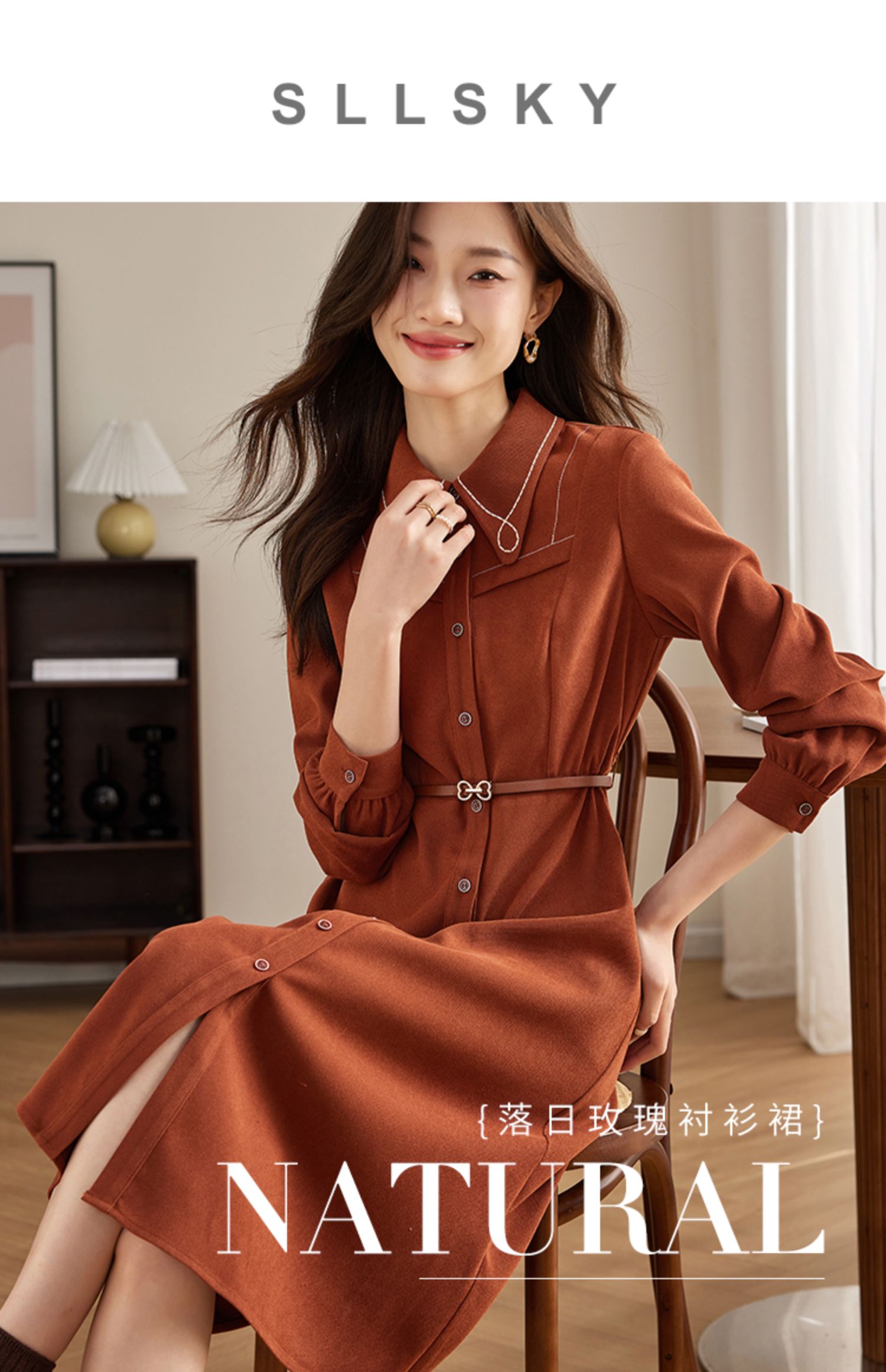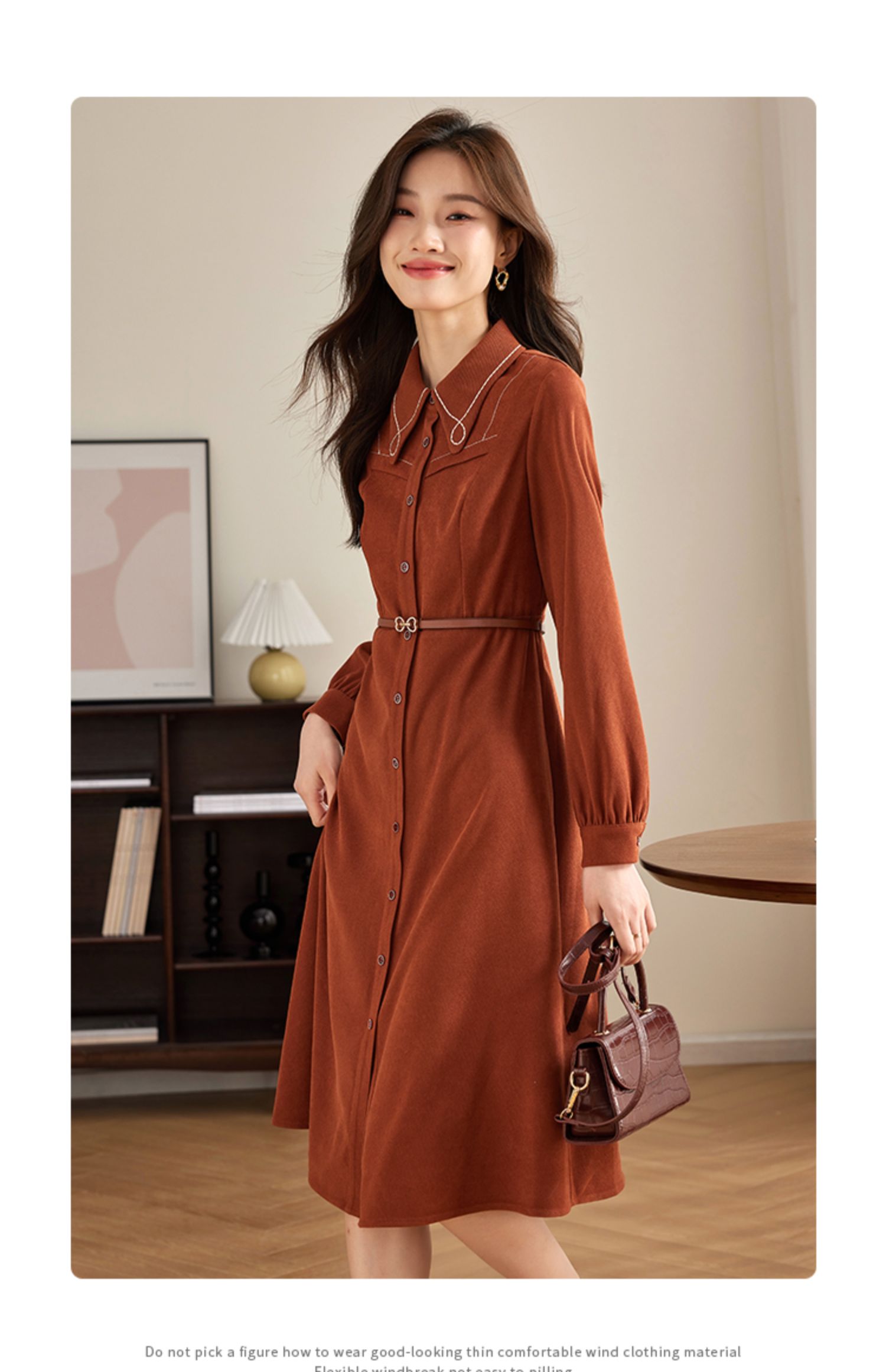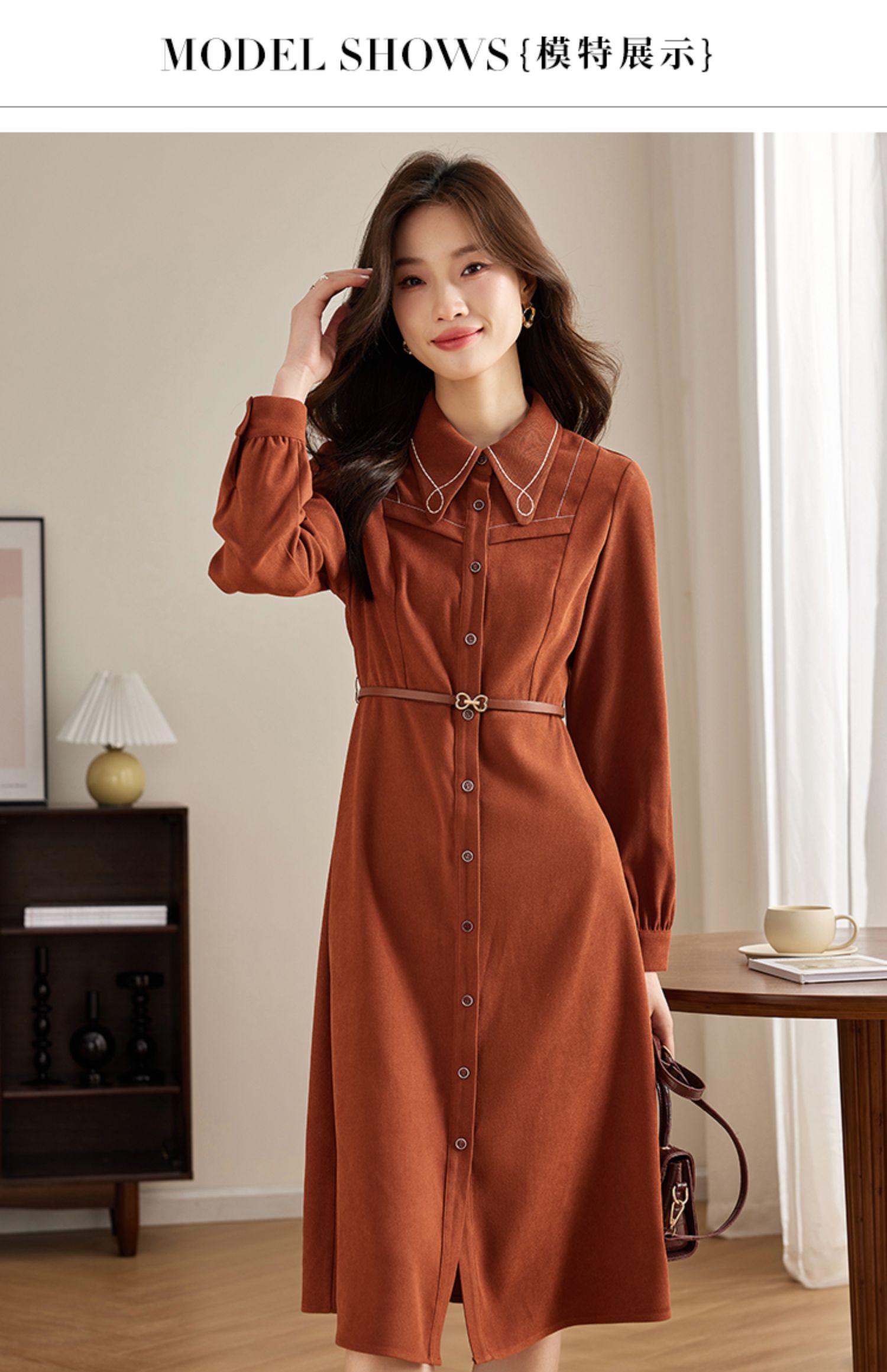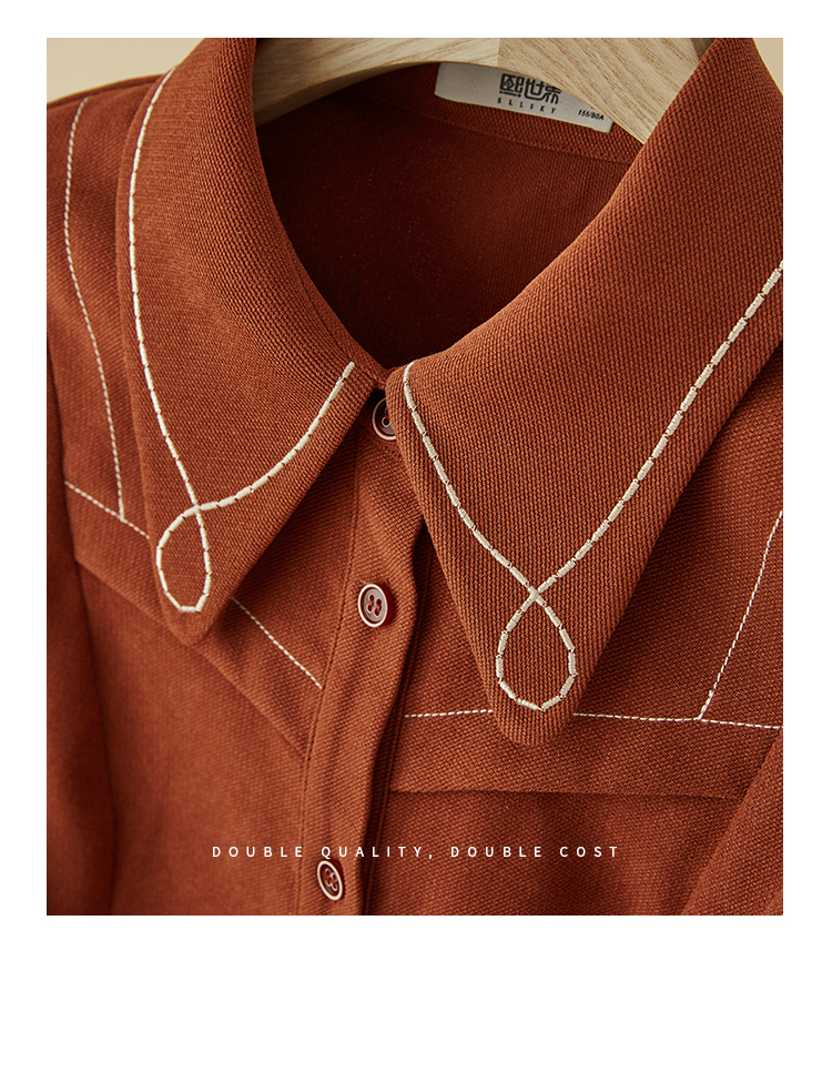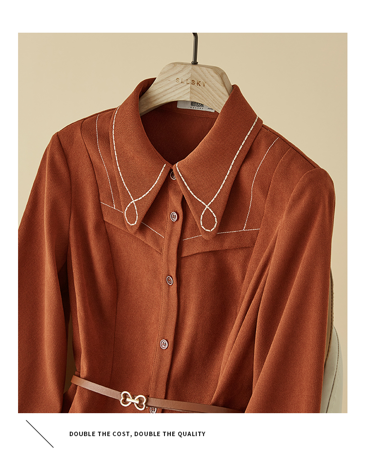 【专属特价】熙世界绒感磨绒连衣裙女长袖2025年秋冬新款高级感刺绣翻领衬衫裙