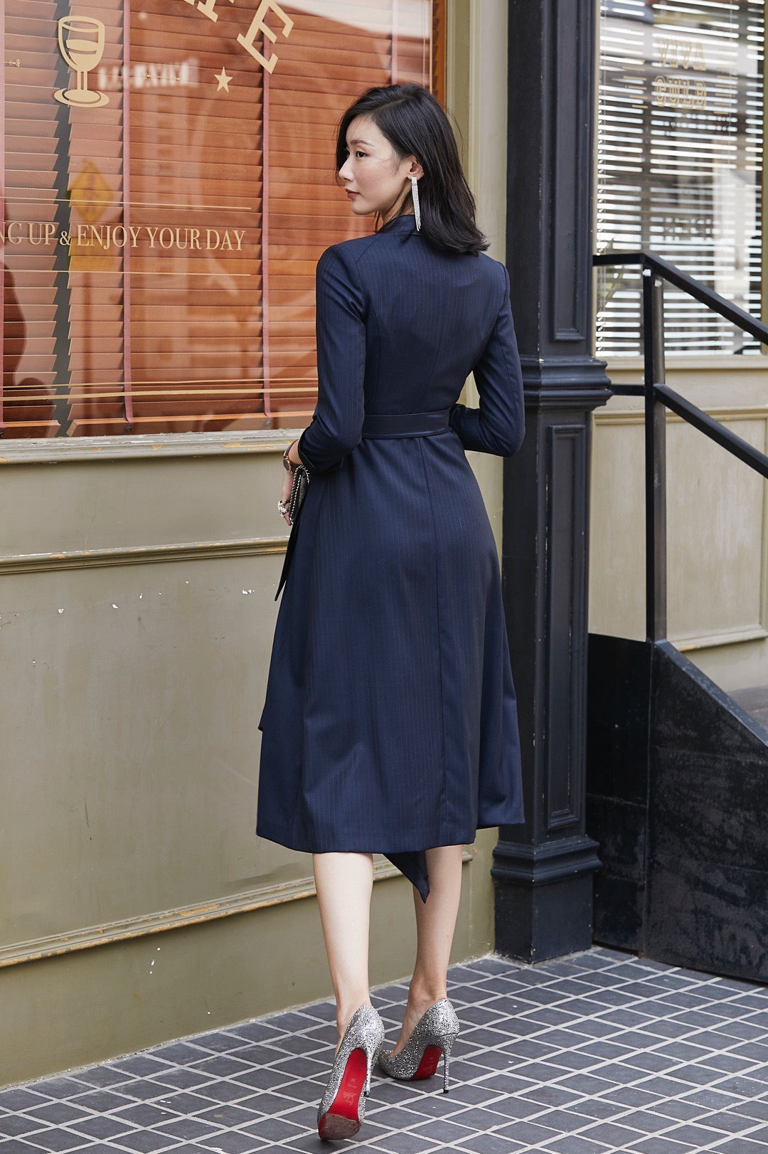 “巾帼”颈袖添香-连衣裙-限量✬J20384570 颈袖添香雯子私服刚柔并济藏青色条纹连衣裙