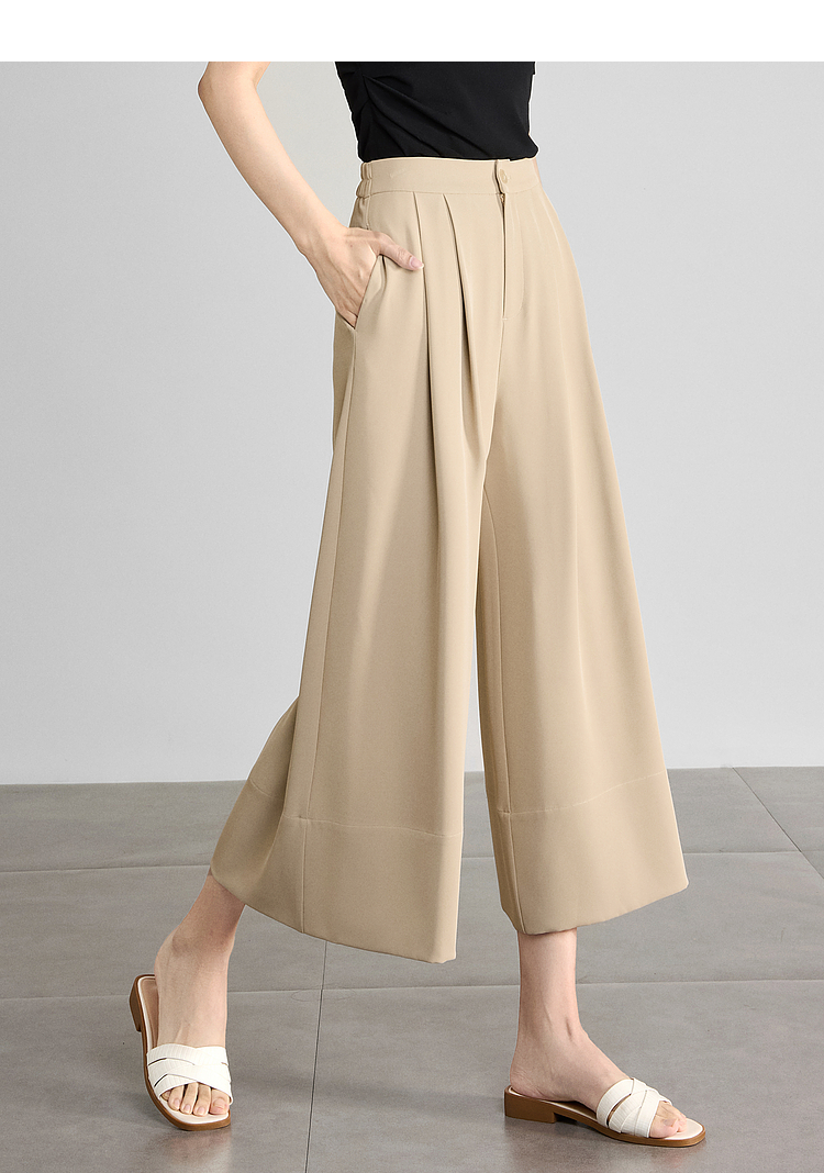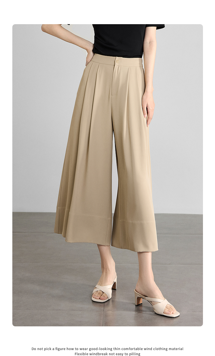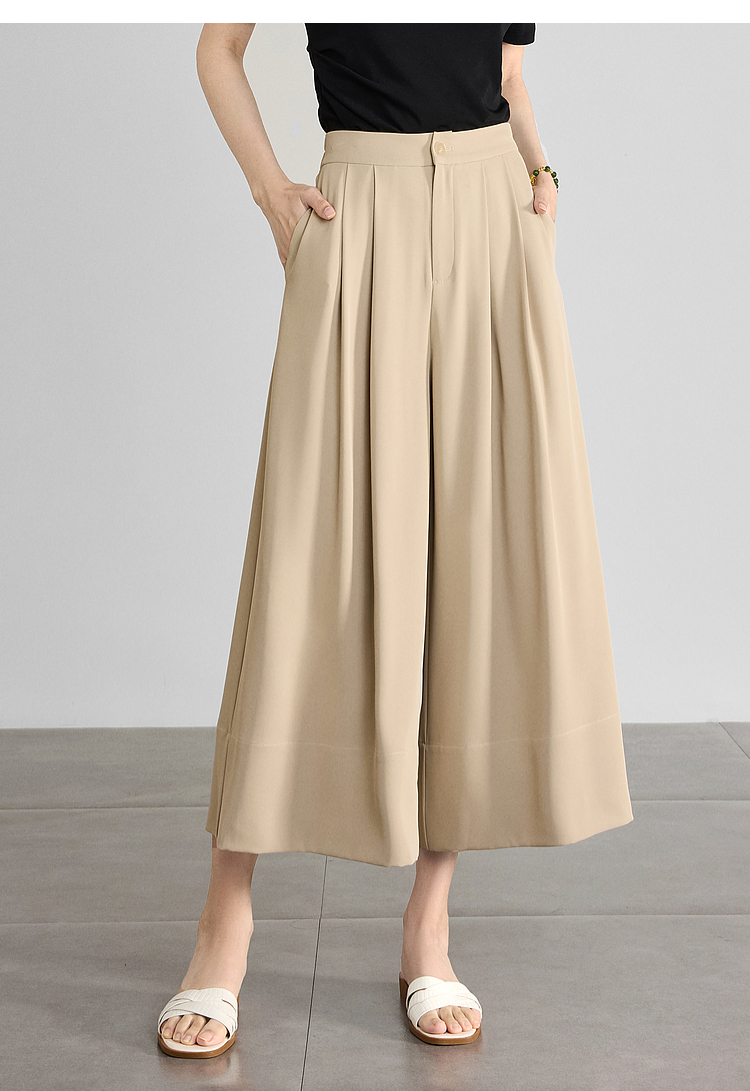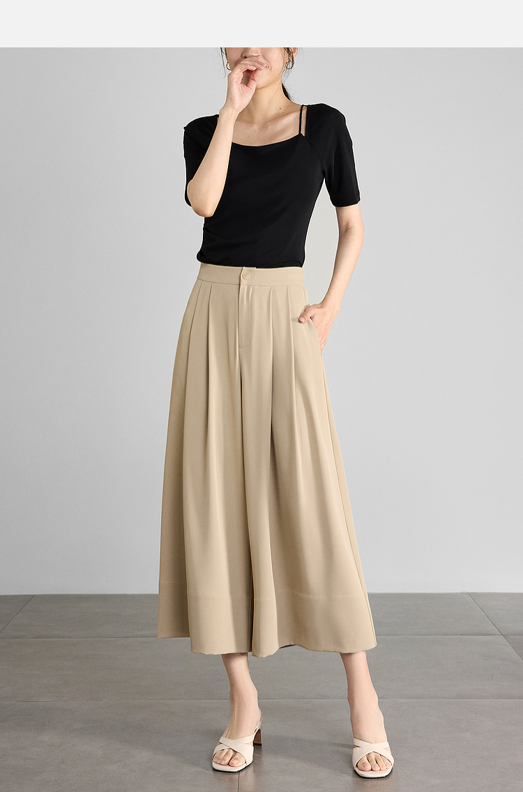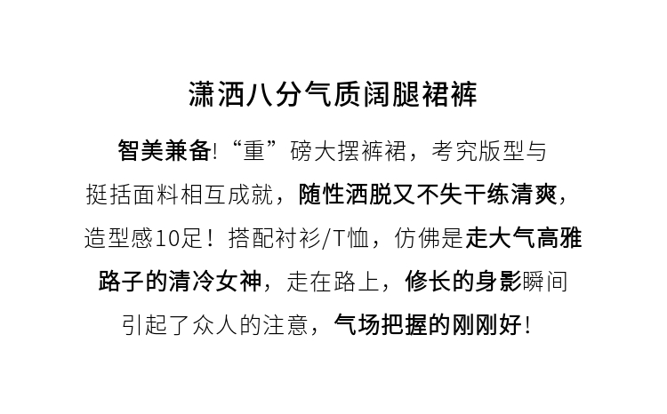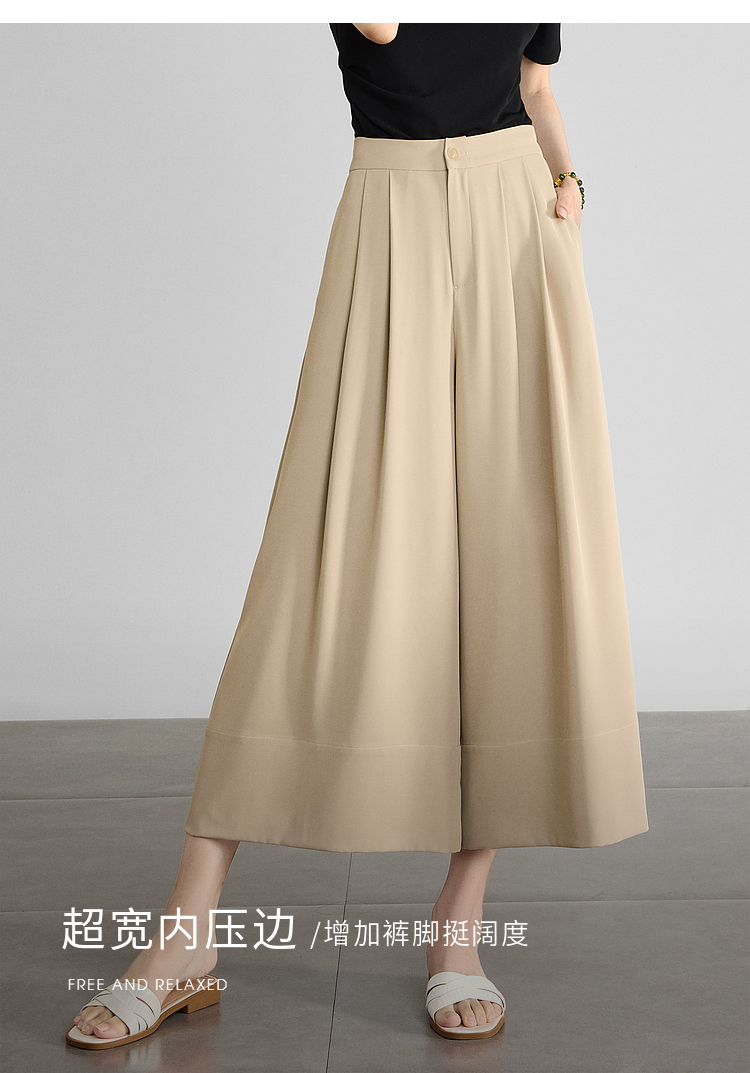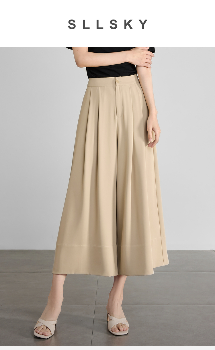 【五折购】熙世界八分裙裤女2025夏薄款高腰宽松显瘦气质休闲裤子阔腿裤裙