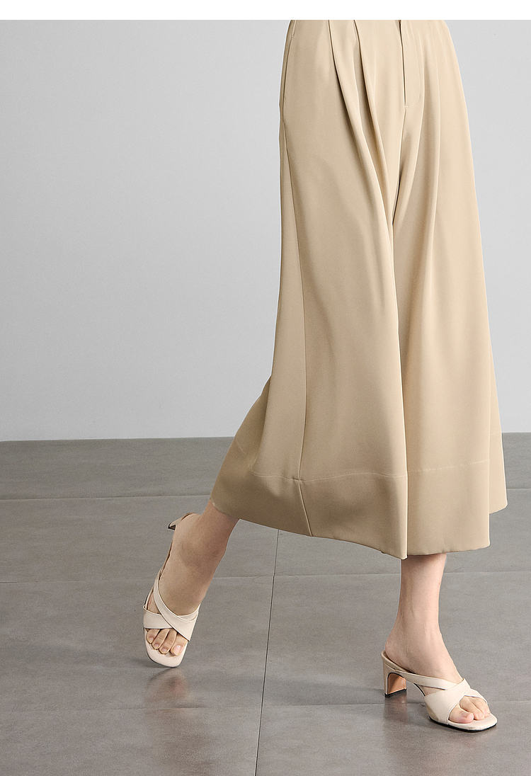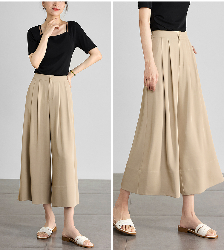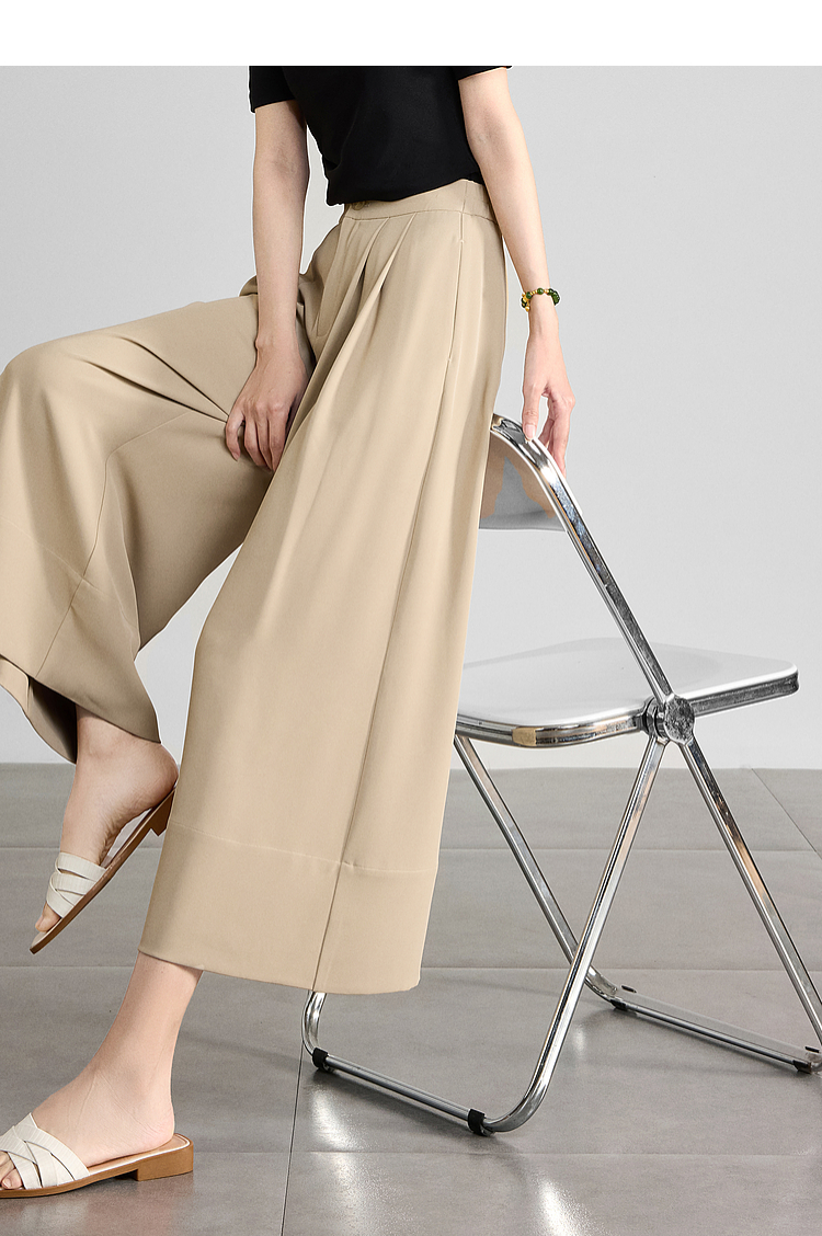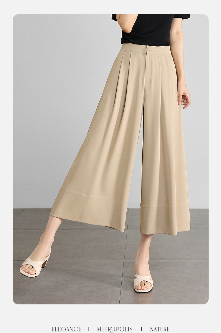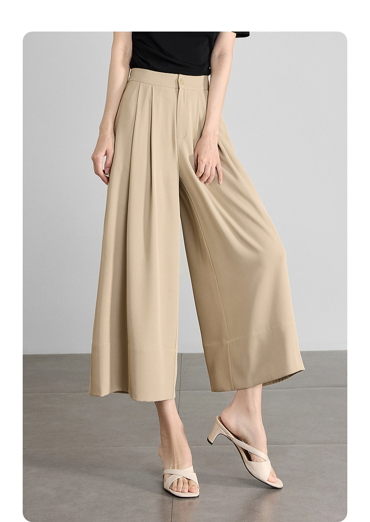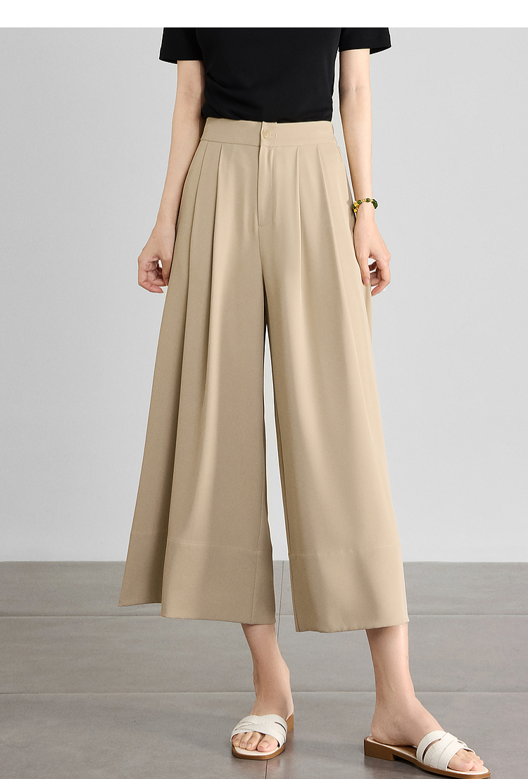 【五折购】熙世界八分裙裤女2025夏薄款高腰宽松显瘦气质休闲裤子阔腿裤裙