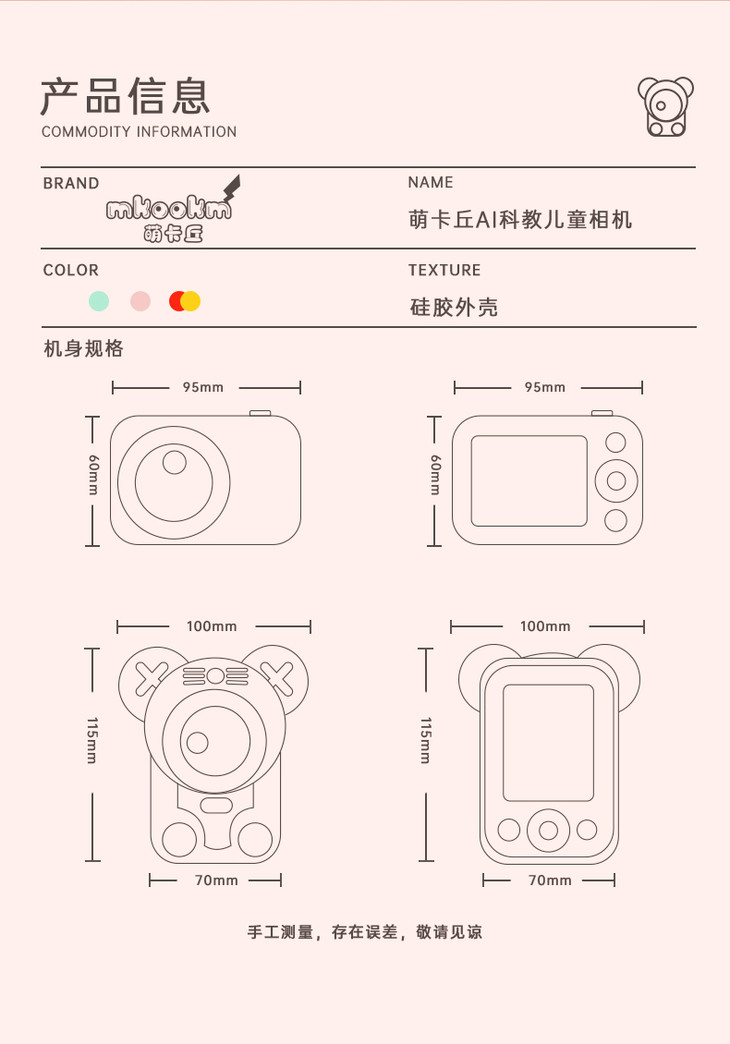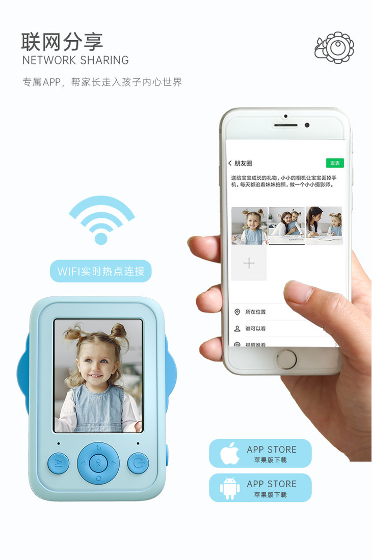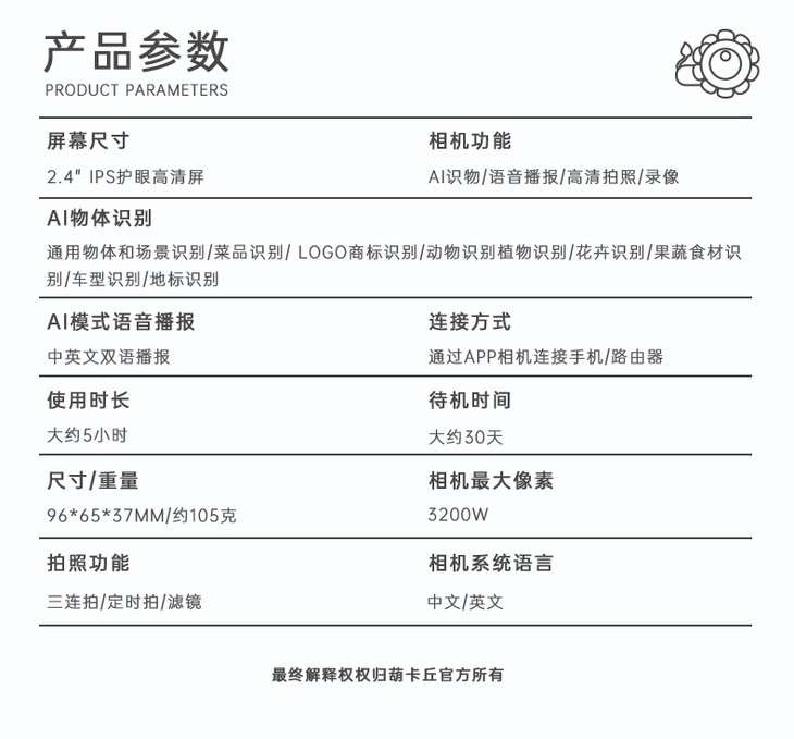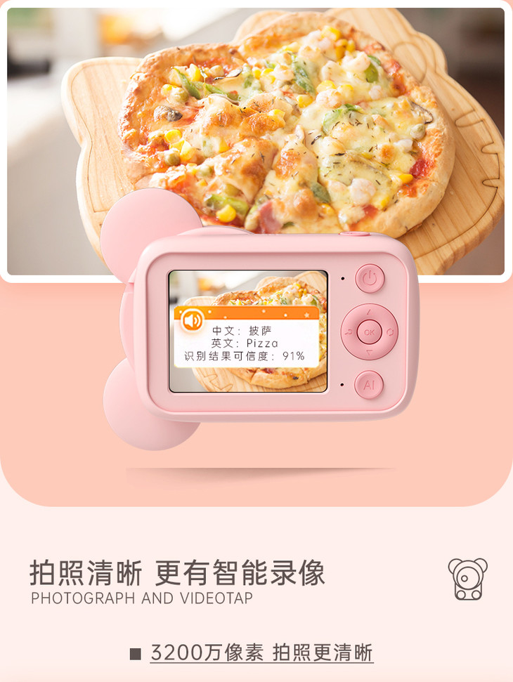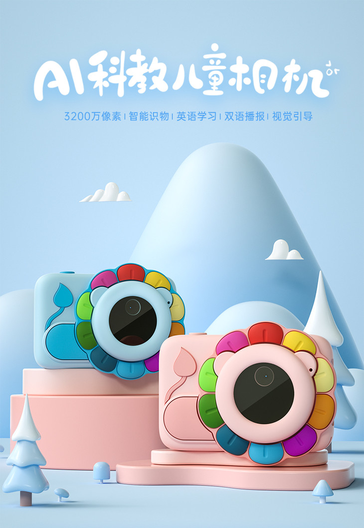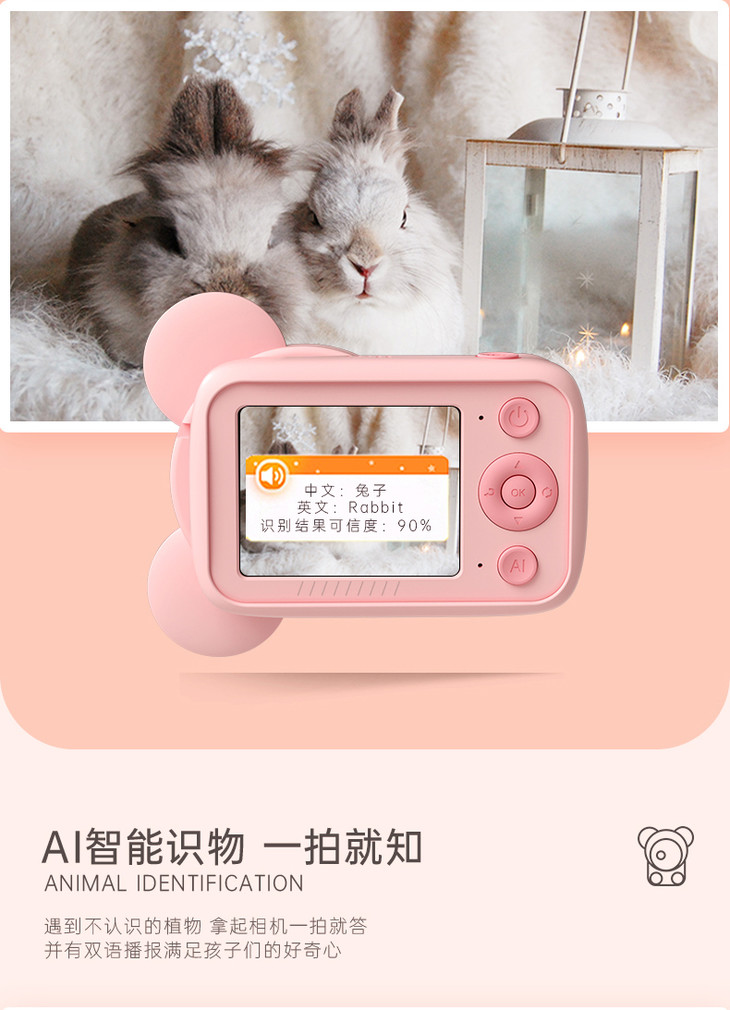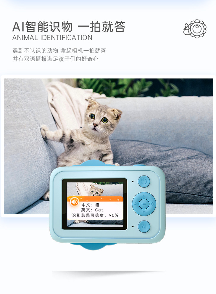 (超值)萌卡丘 AI科教智能儿童数码相机 WiFi版 32G 萌奇奇/七彩太阳花款