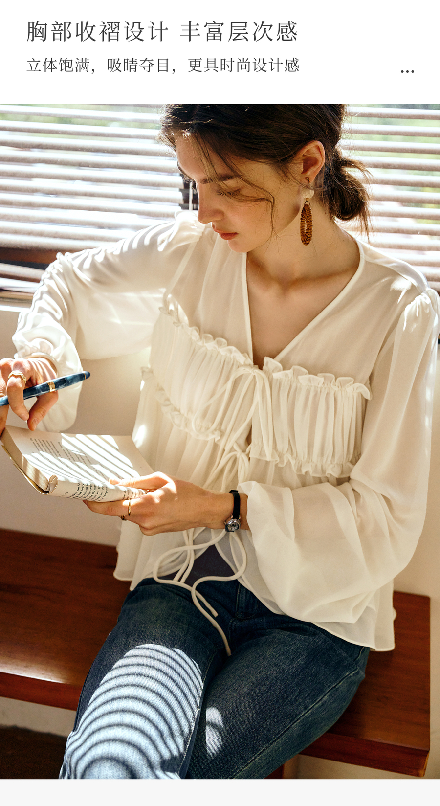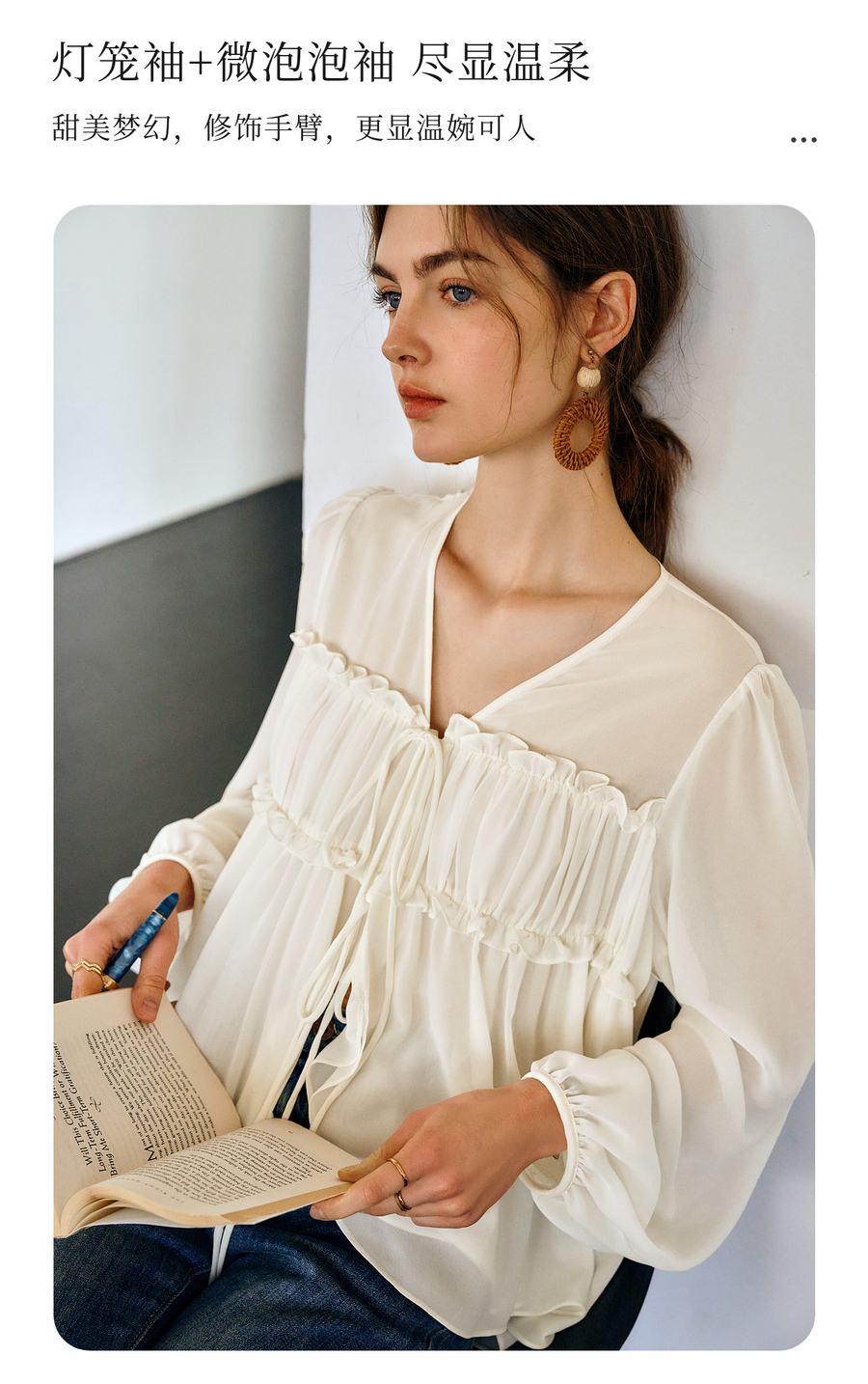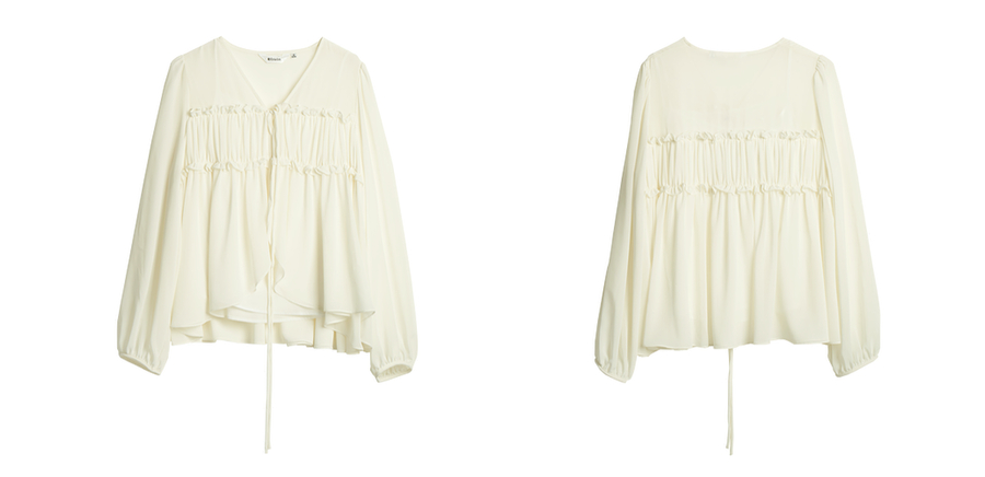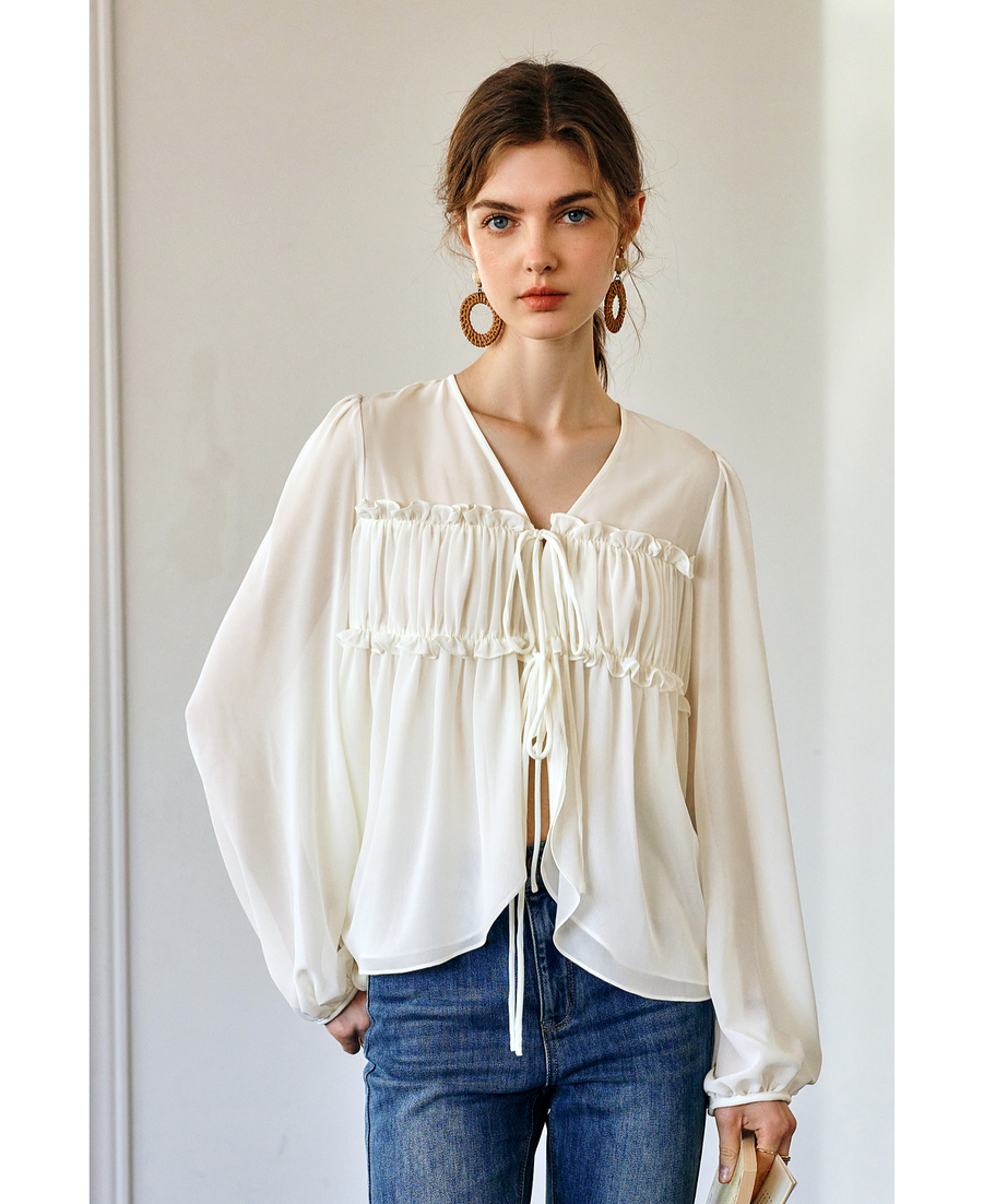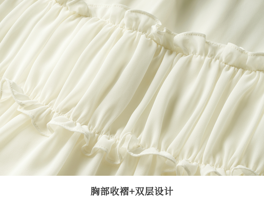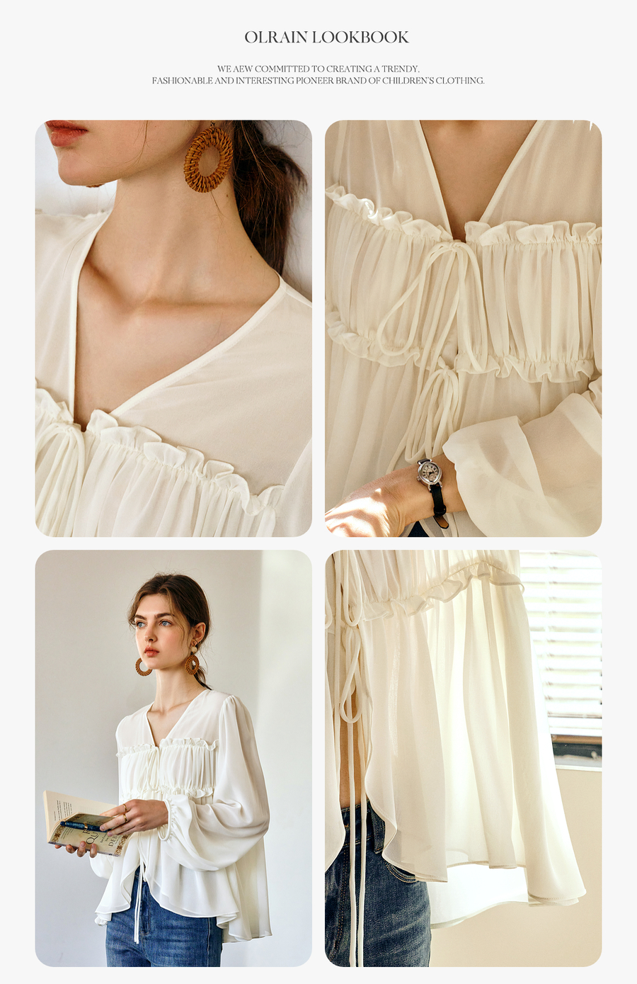 OLrain欧芮儿米杏色V领雪纺衫女春季2025年新款设计感度假风衬衣