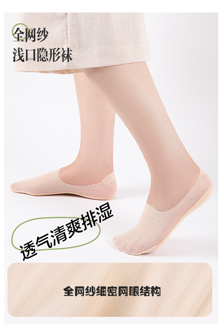 足装秀24夏季新女士短款超薄棉轻薄透气凉感网眼镂空纯色中邦女袜