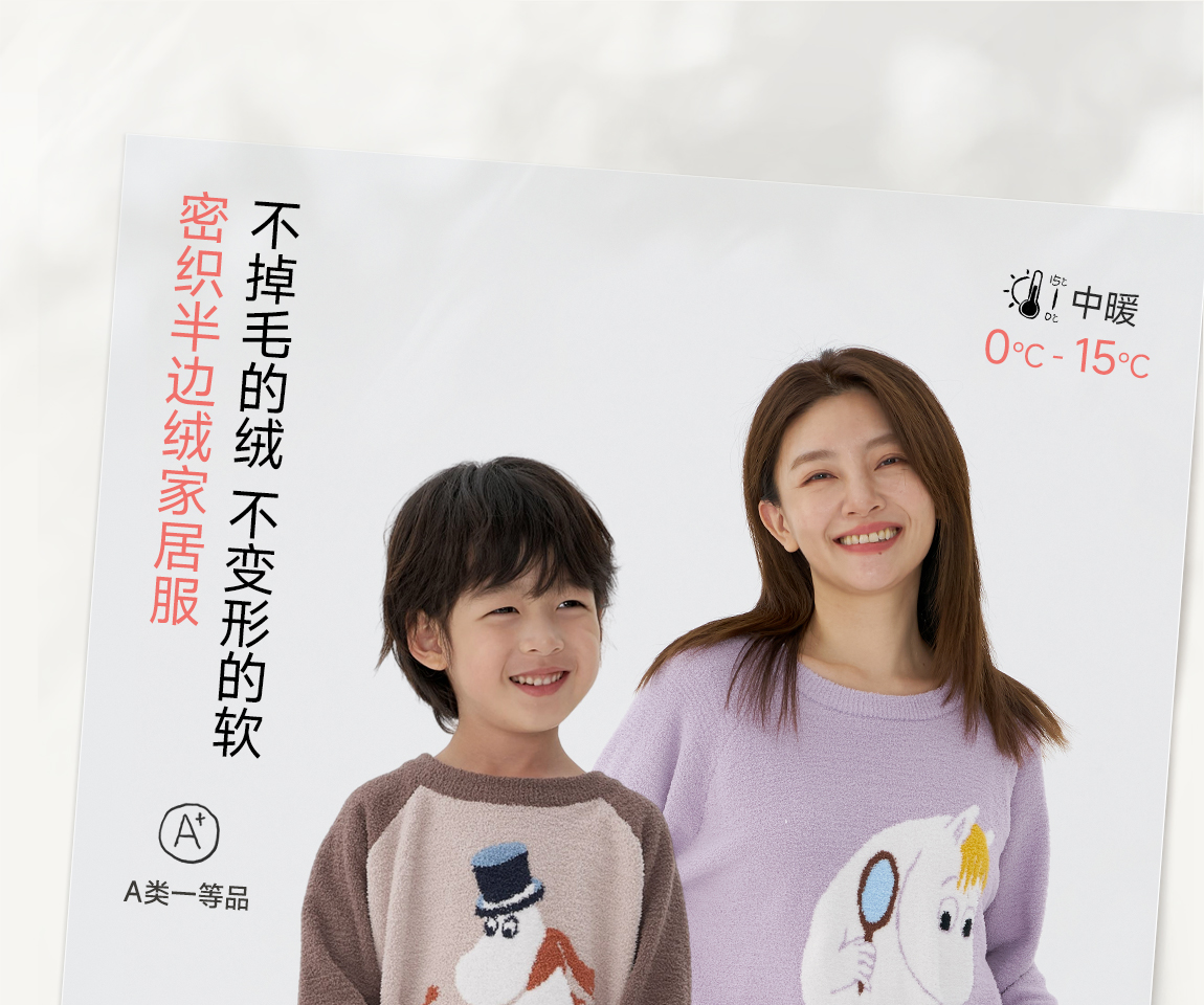 【久洗蓬松不易掉绒】Q21x姆明联名半边绒家居服柔软亲肤A类保暖睡衣