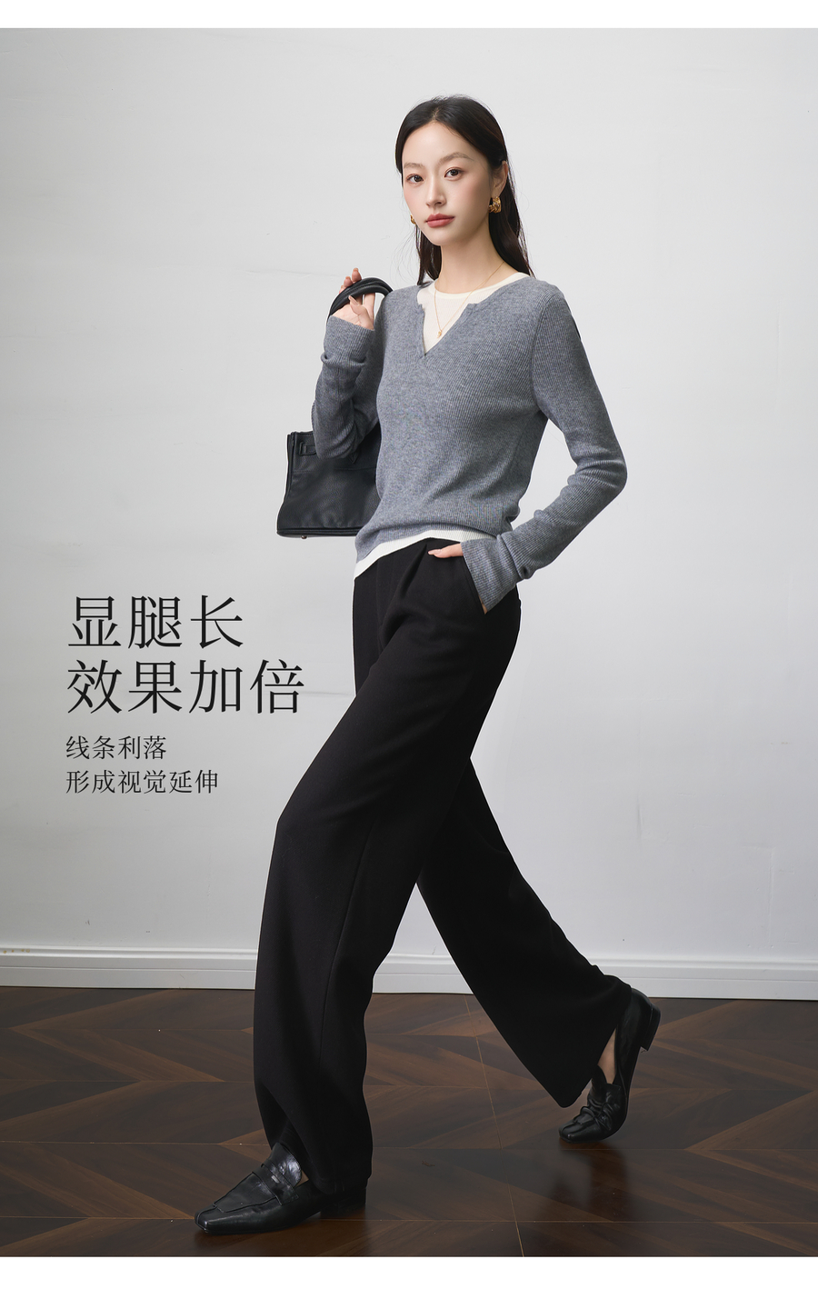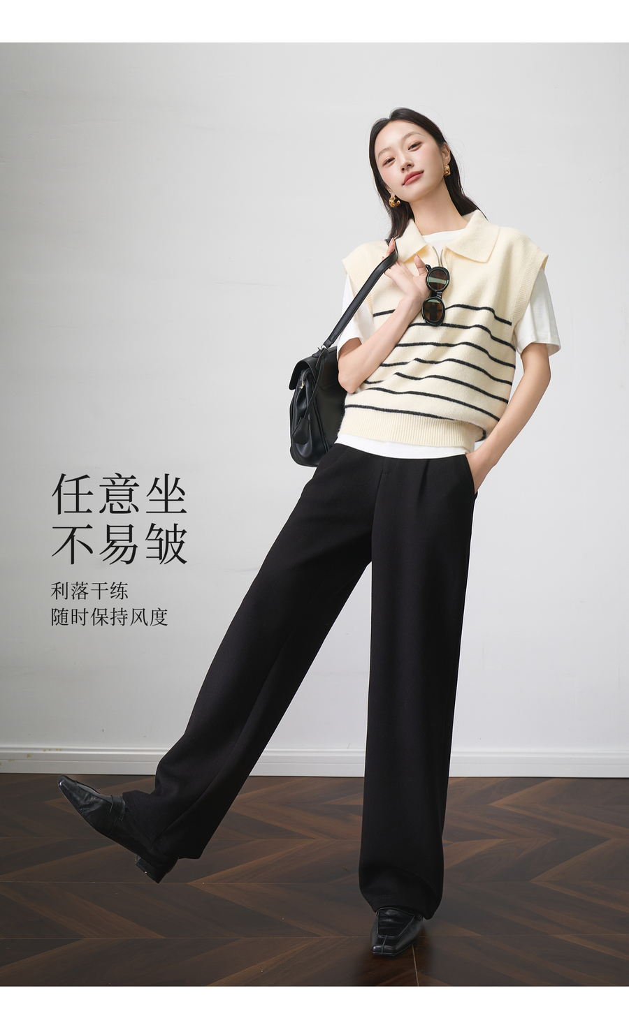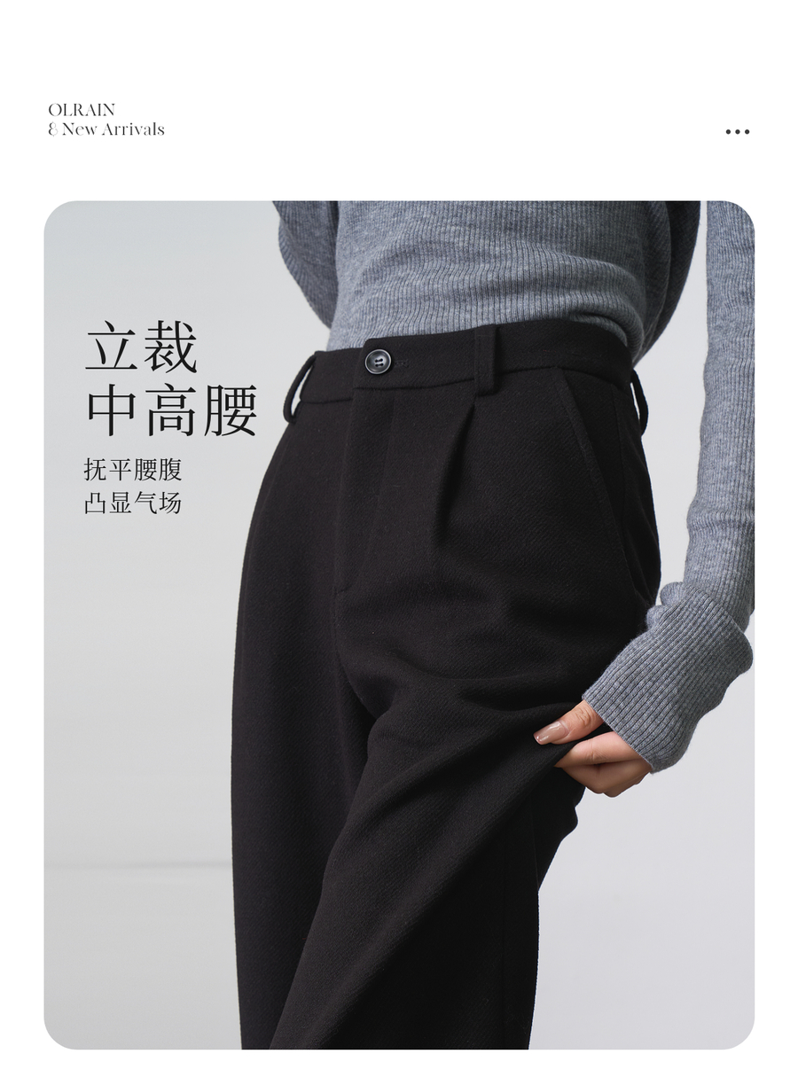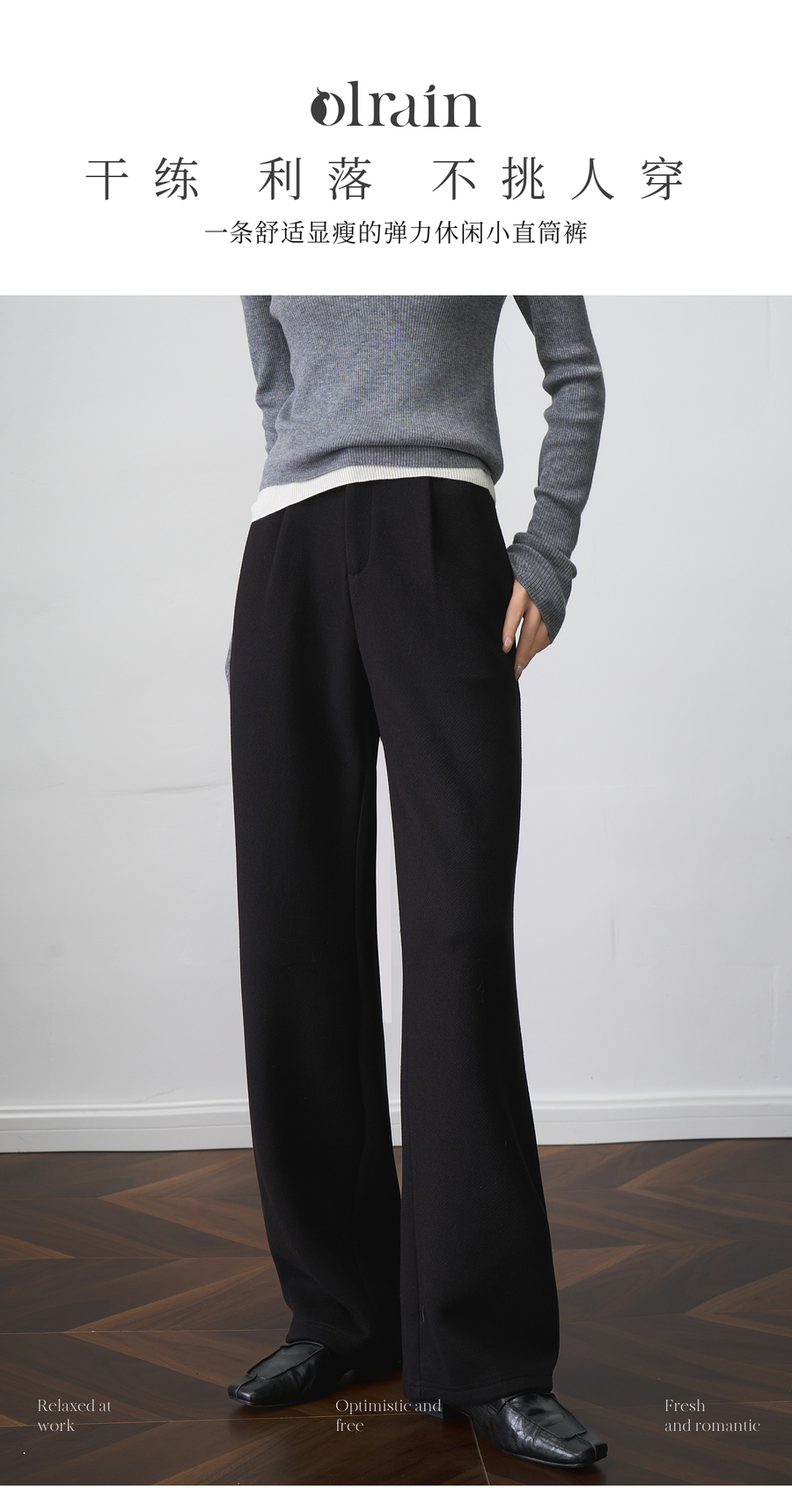 OLrain欧芮儿2025新款女秋季通勤舒适休闲直筒裤显瘦长裤黑色裤子