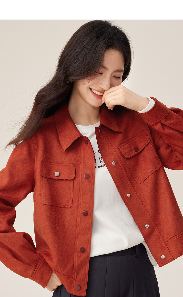 【09/03新品】熙世界仿生麂皮绒短外套女高级感2025秋装法式工装夹克小个子上衣