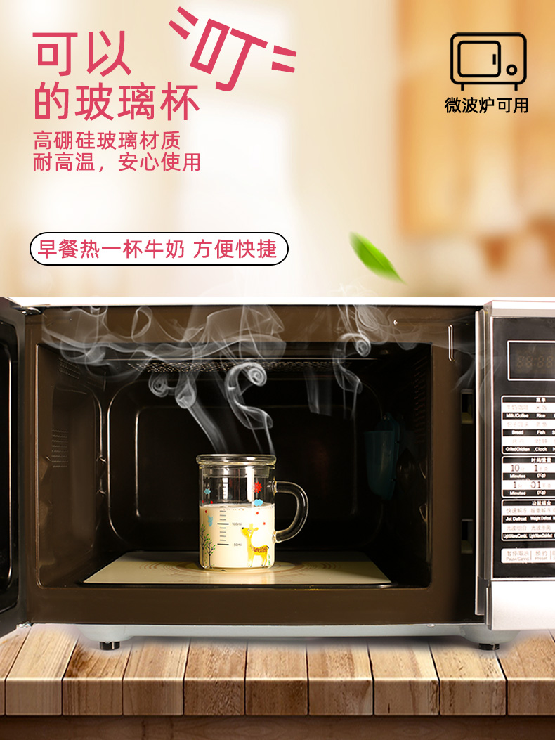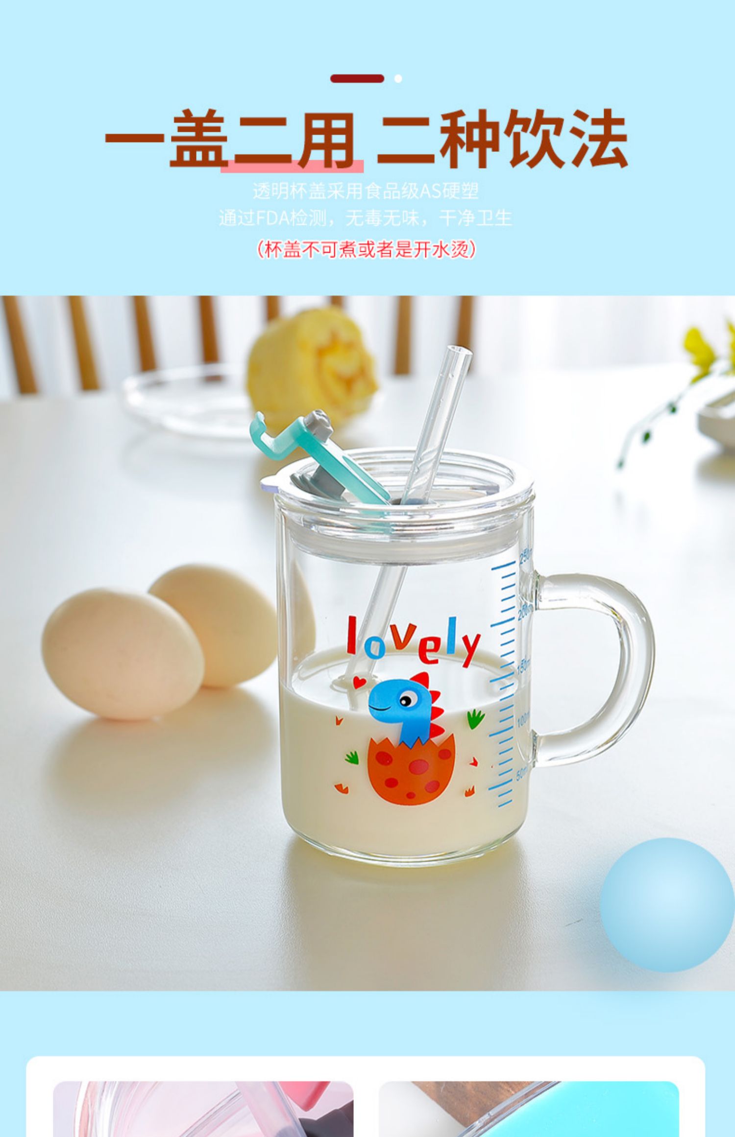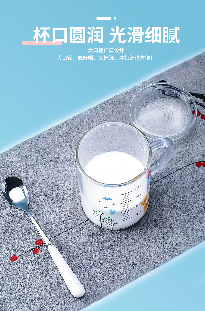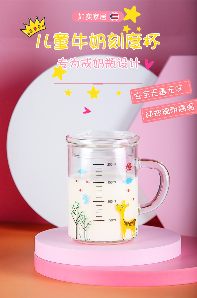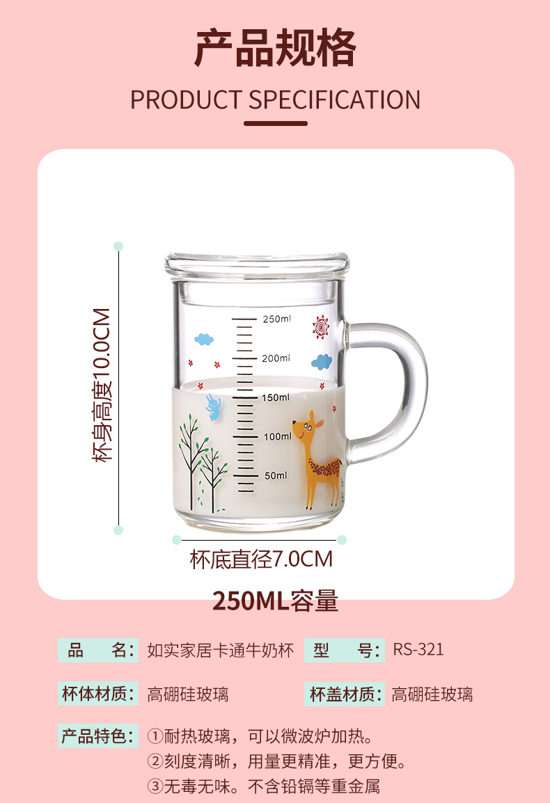 Z2502 宝宝戒奶瓶 带刻度玻璃牛奶杯250ml 带密封盖送吸管 小鹿中号