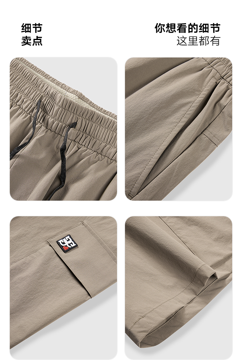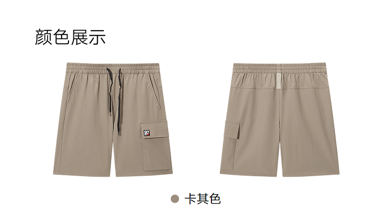 GXG男装 卡其色肌理感休闲短裤织带运动短裤 夏季舒适宽松短裤 G24X222010