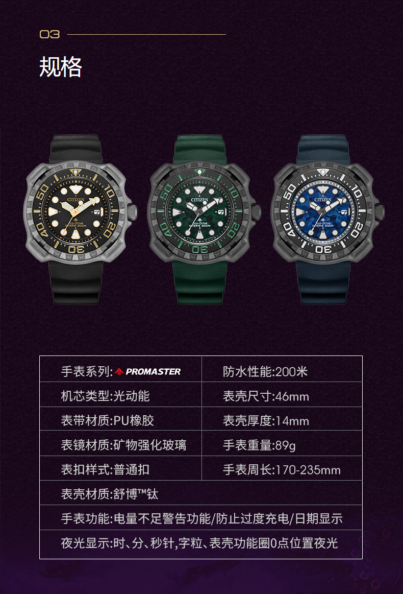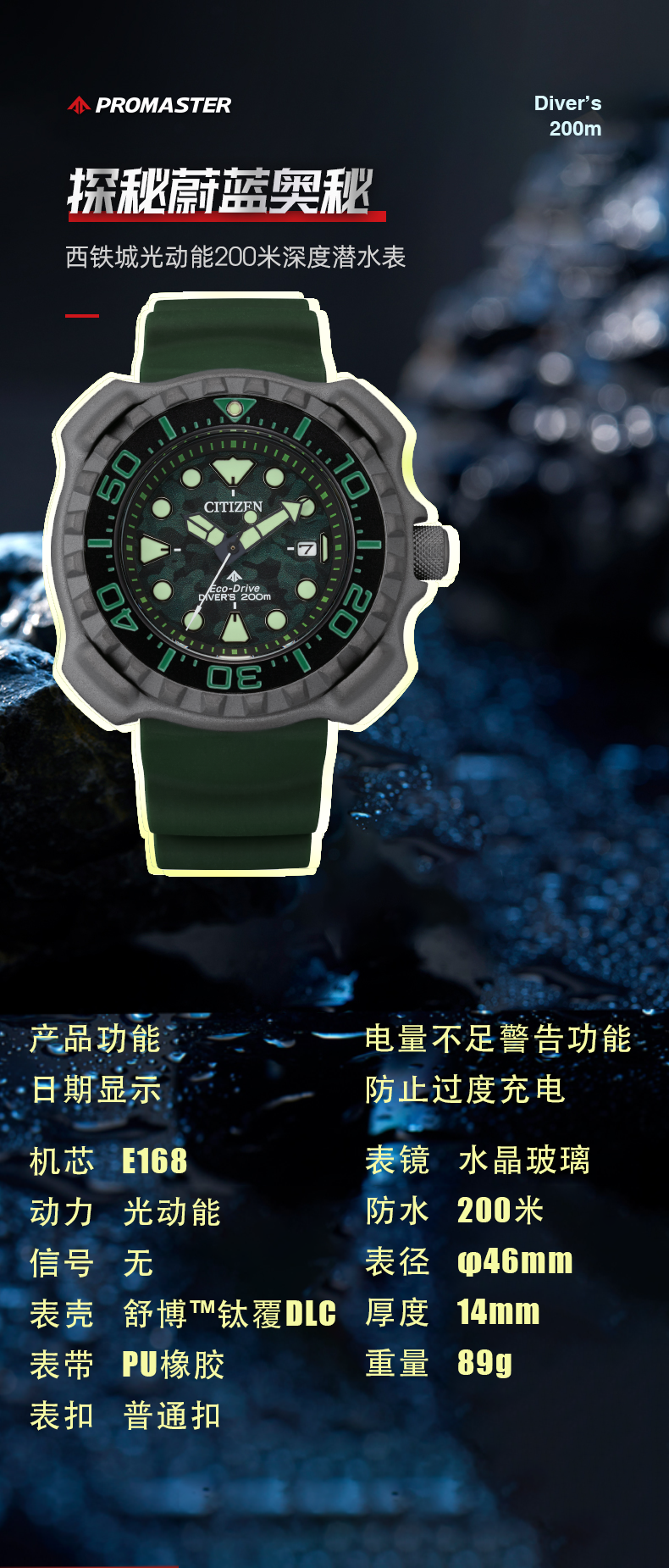 西铁城日本官方正品新款小海龟舒博钛光动能男士潜水手表BN0228-06W
