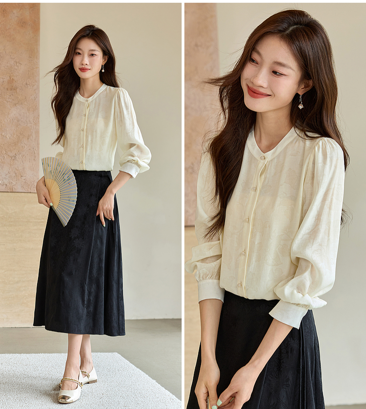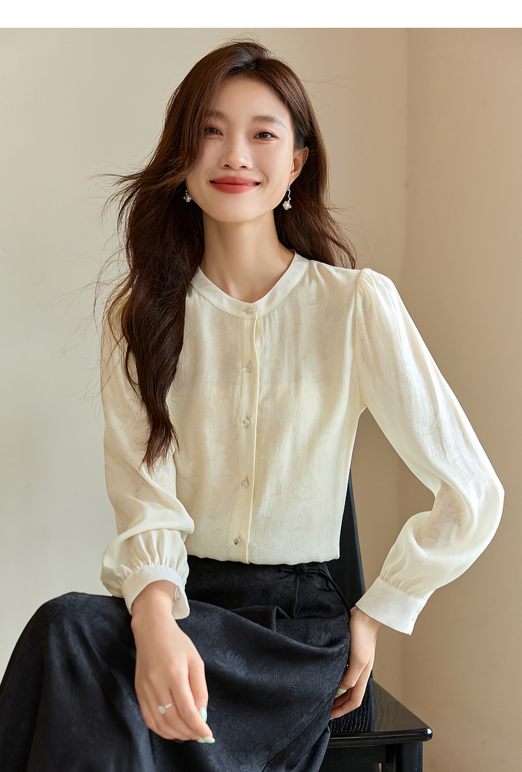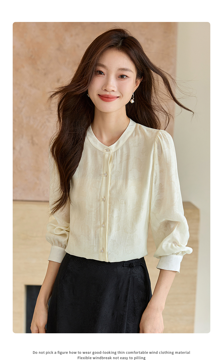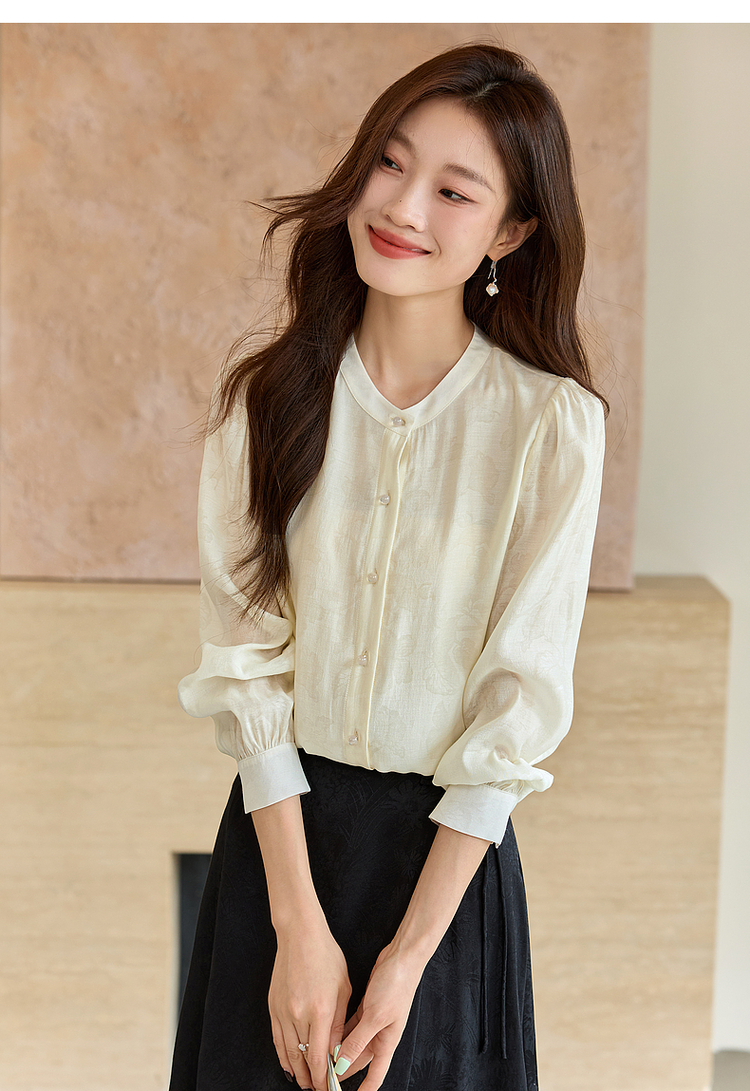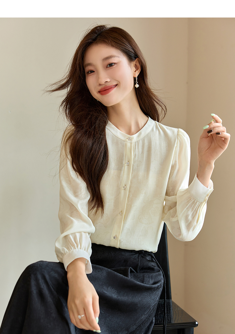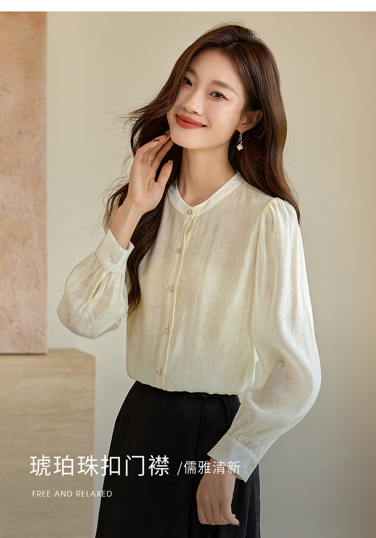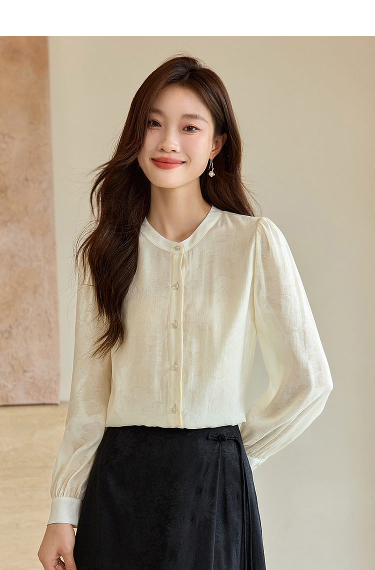 【年终特卖】熙世界新中式琥珀珠扣气质2025新款暗纹提花衬衫珠扣长袖轻国风上衣
