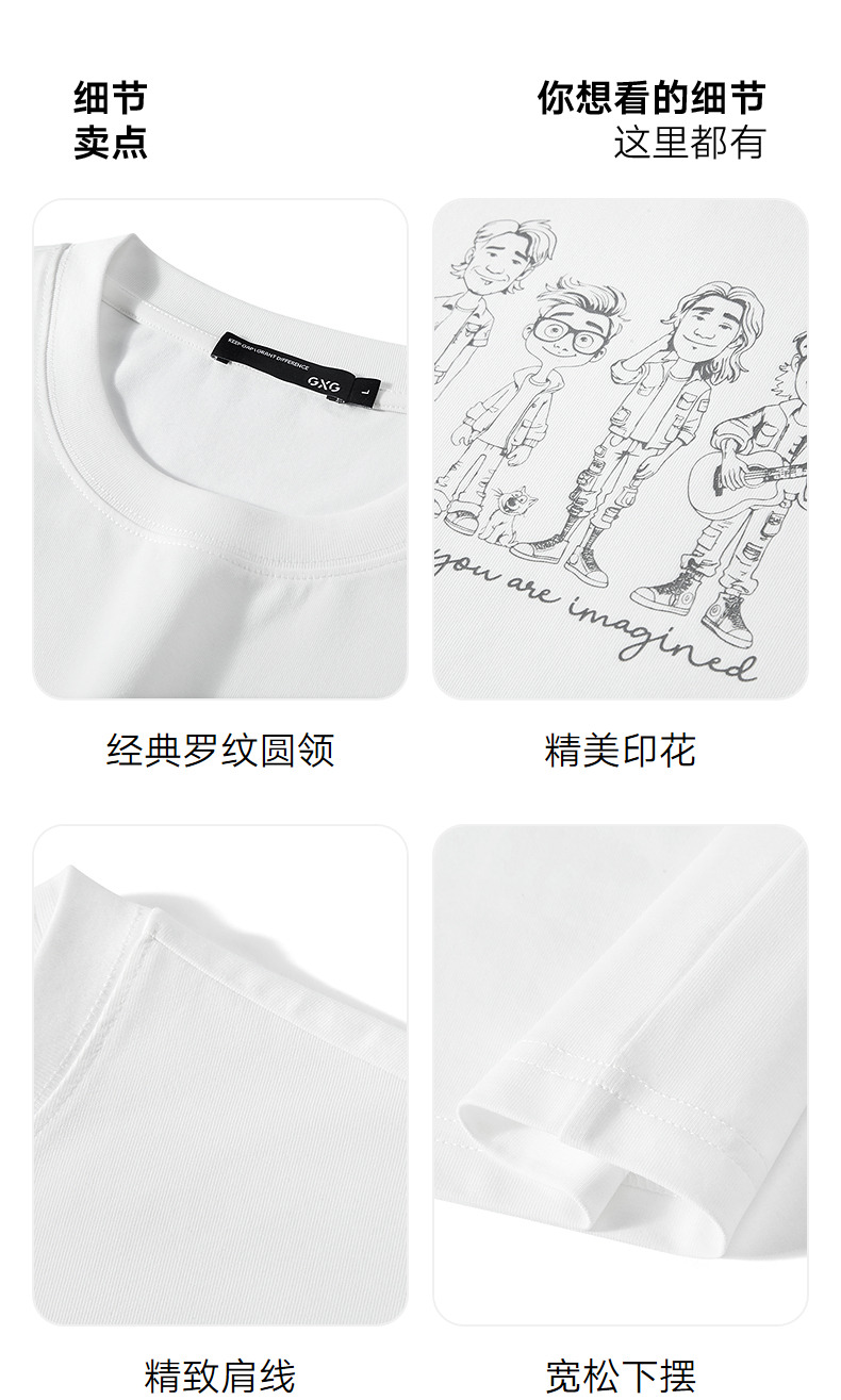 25夏季热卖 GXG男装经典双色时尚前胸印花百搭通勤圆领短袖T恤