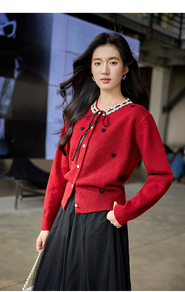 奢姿大码女装2025冬季胖妹妹时尚爱心刺绣针织衫气质显瘦休闲上衣9854669950