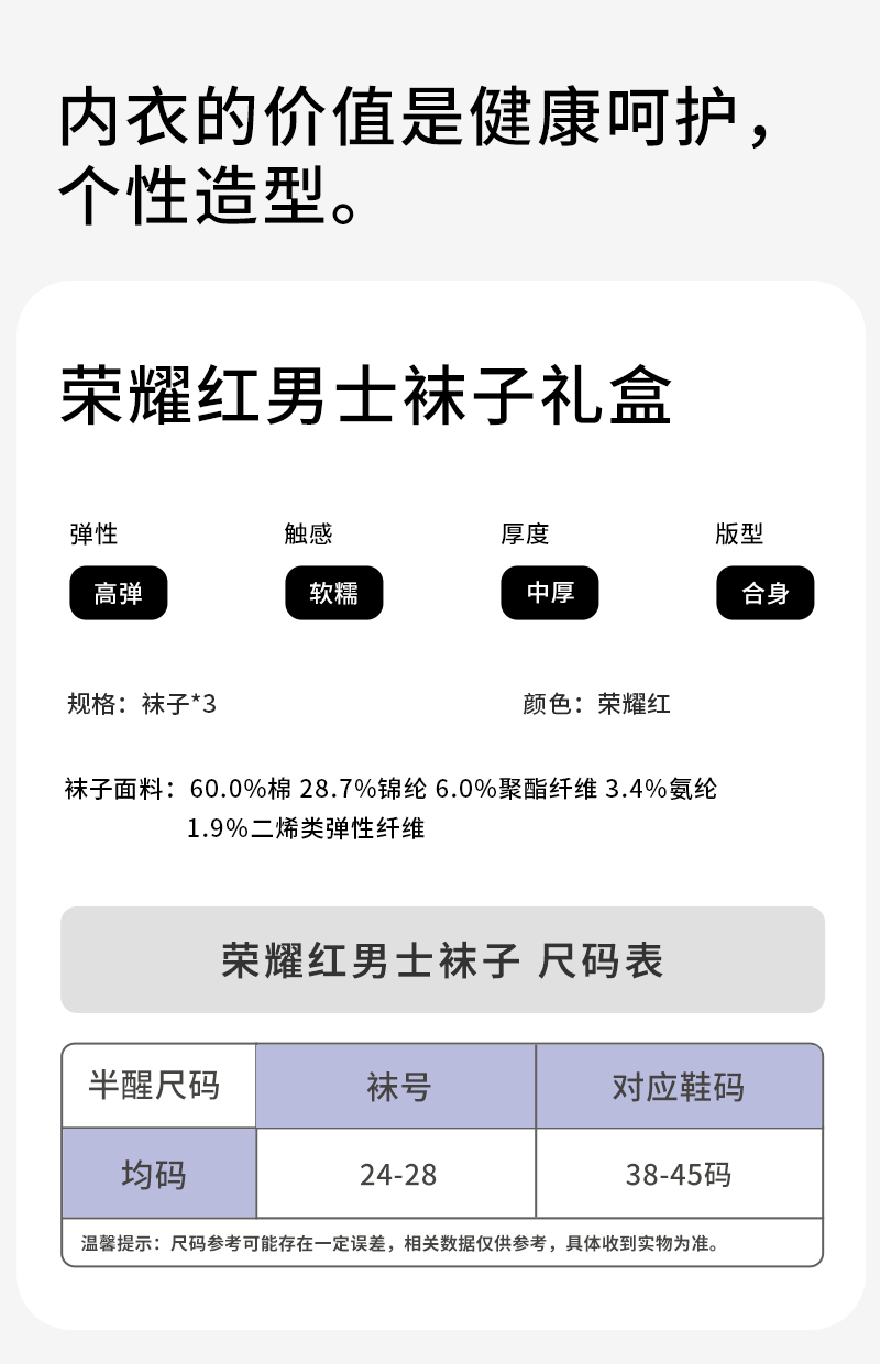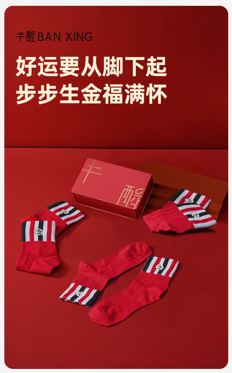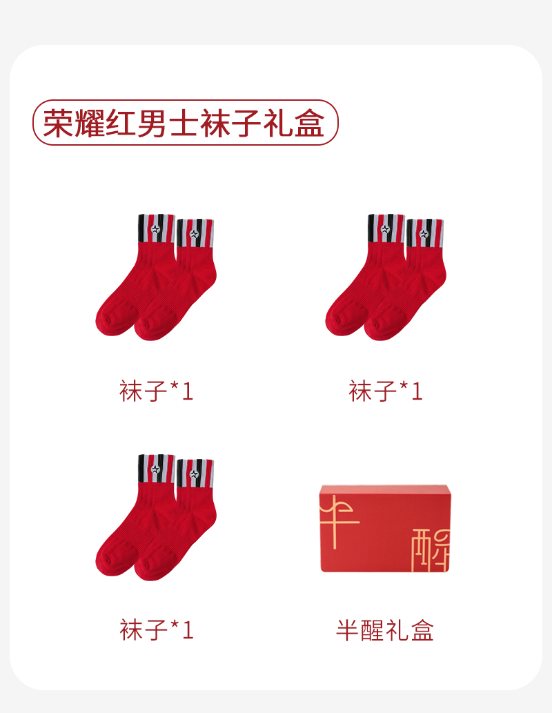 *【半醒】荣耀红男士袜子新疆长绒棉抑菌透气不臭脚礼盒装