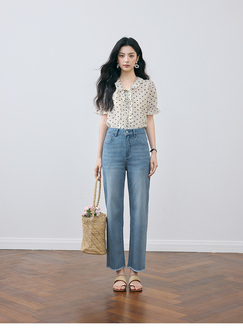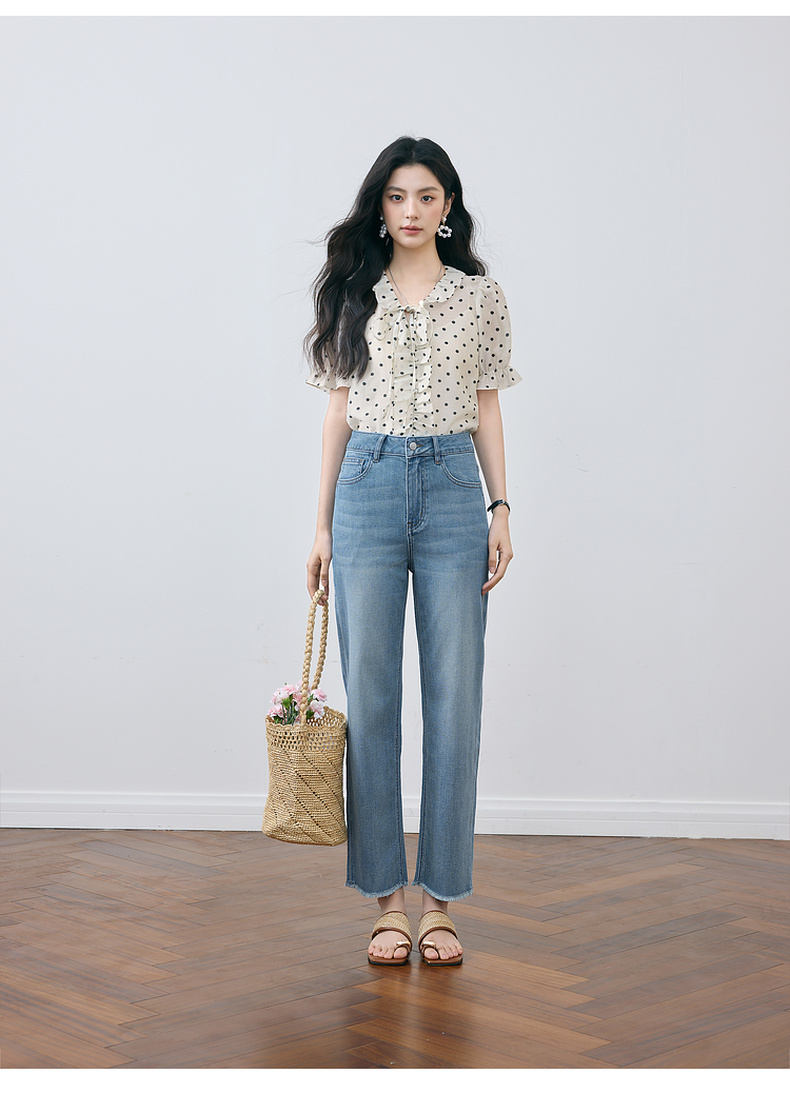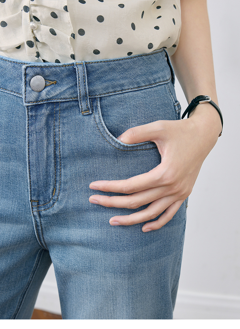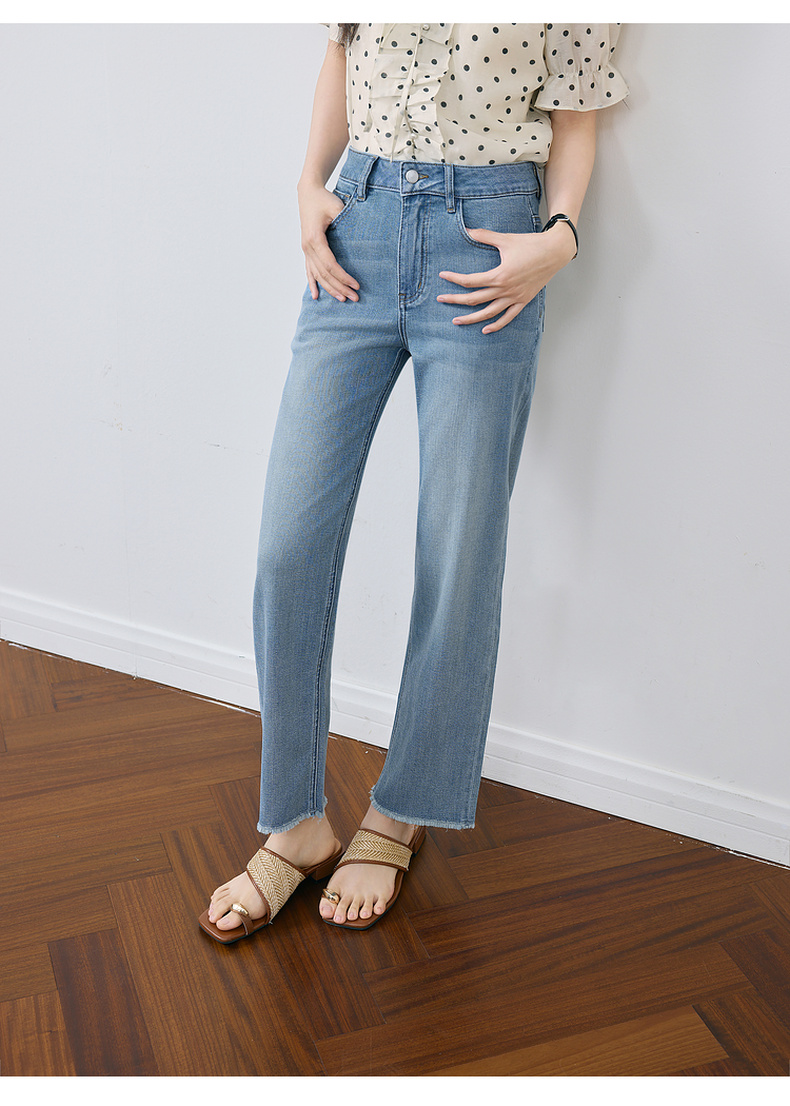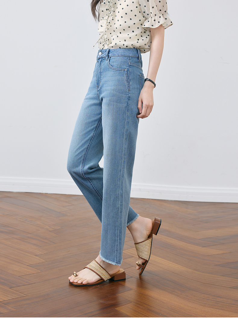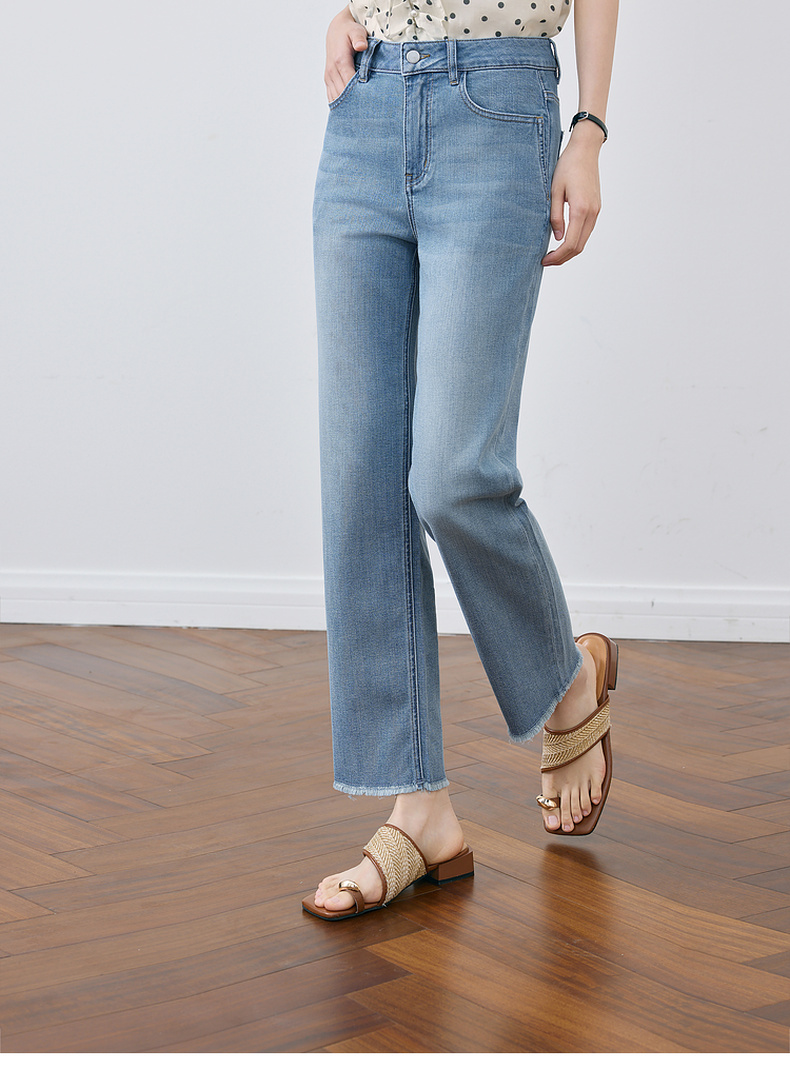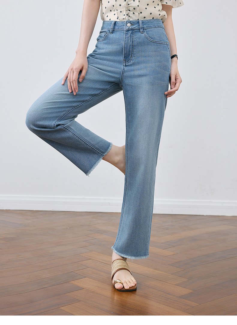 【严选】诗凡黎宝宝柔薄款轻弹锥形牛仔裤2025夏新款亲肤舒适显瘦直筒长裤7G4350731