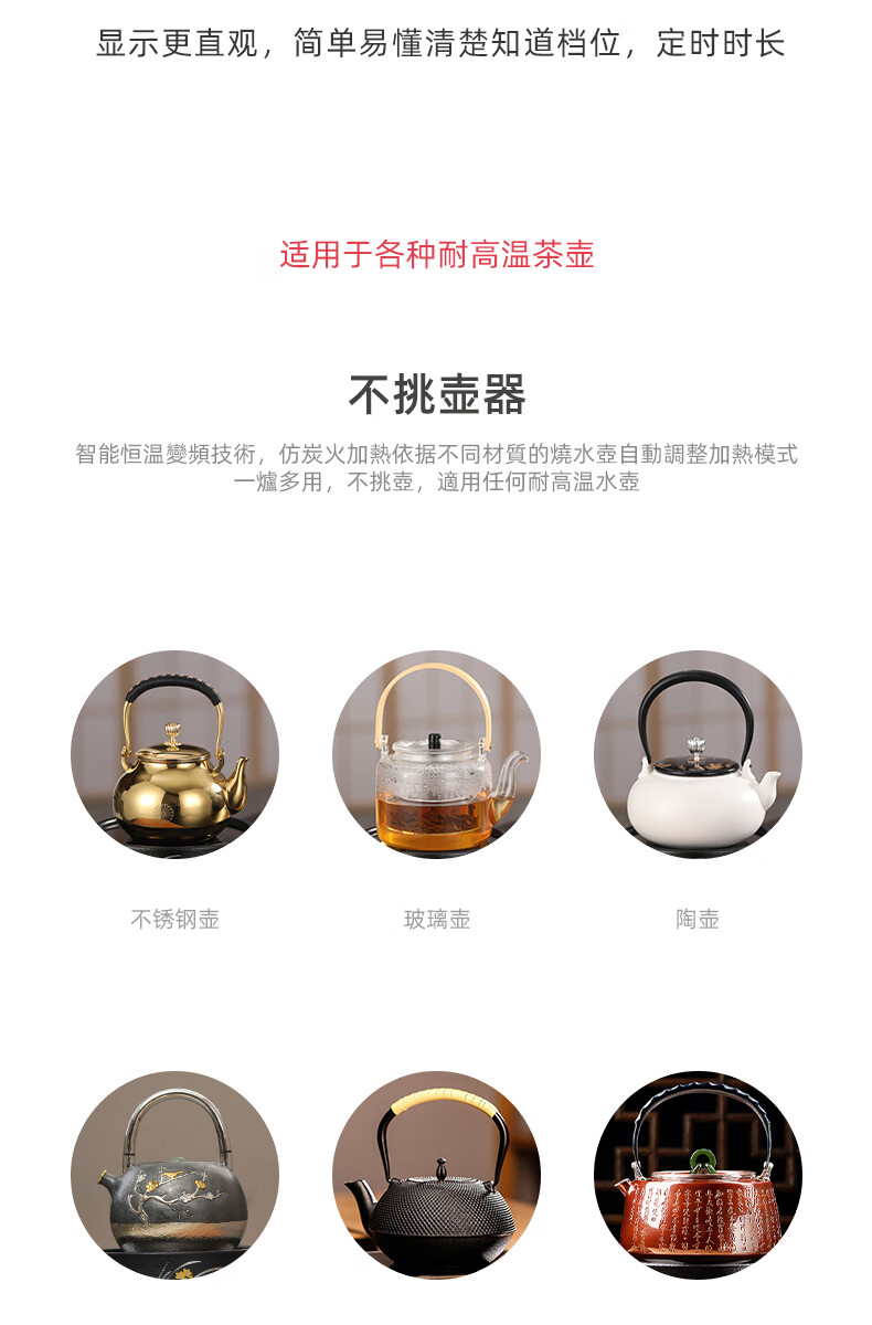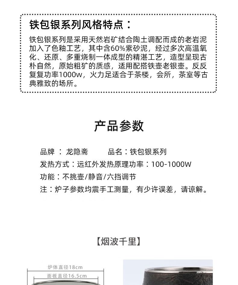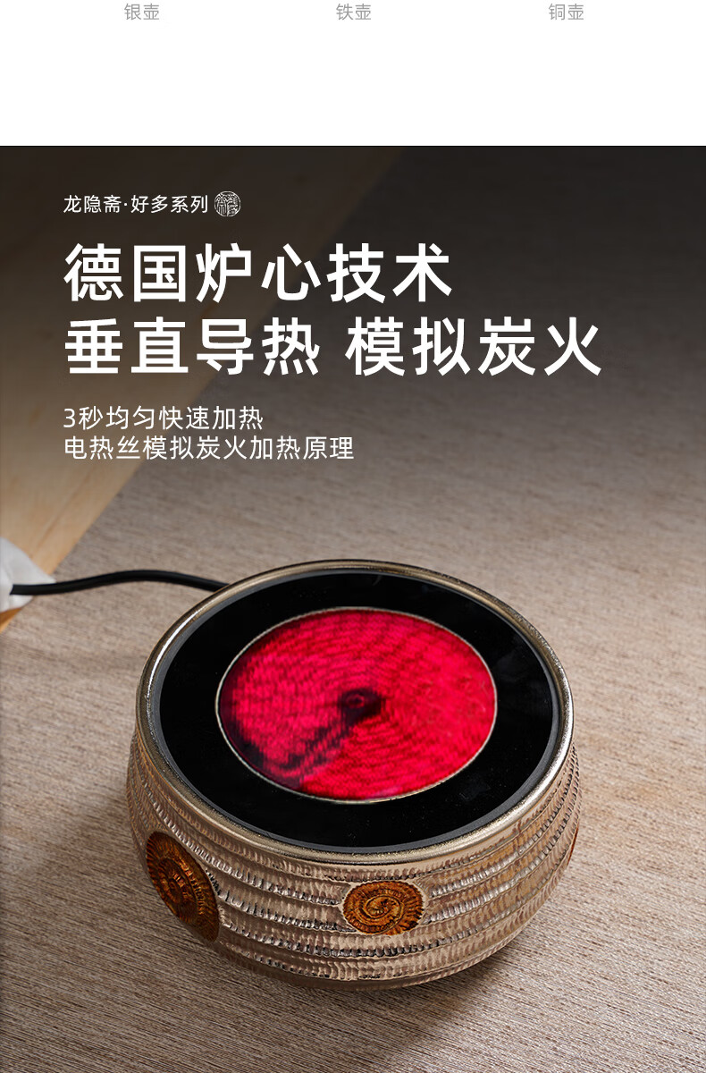 厂家直发/龙隐斋 【铁包银】螺纹静音电陶炉煮茶 1000W大功率德国炉芯可定时