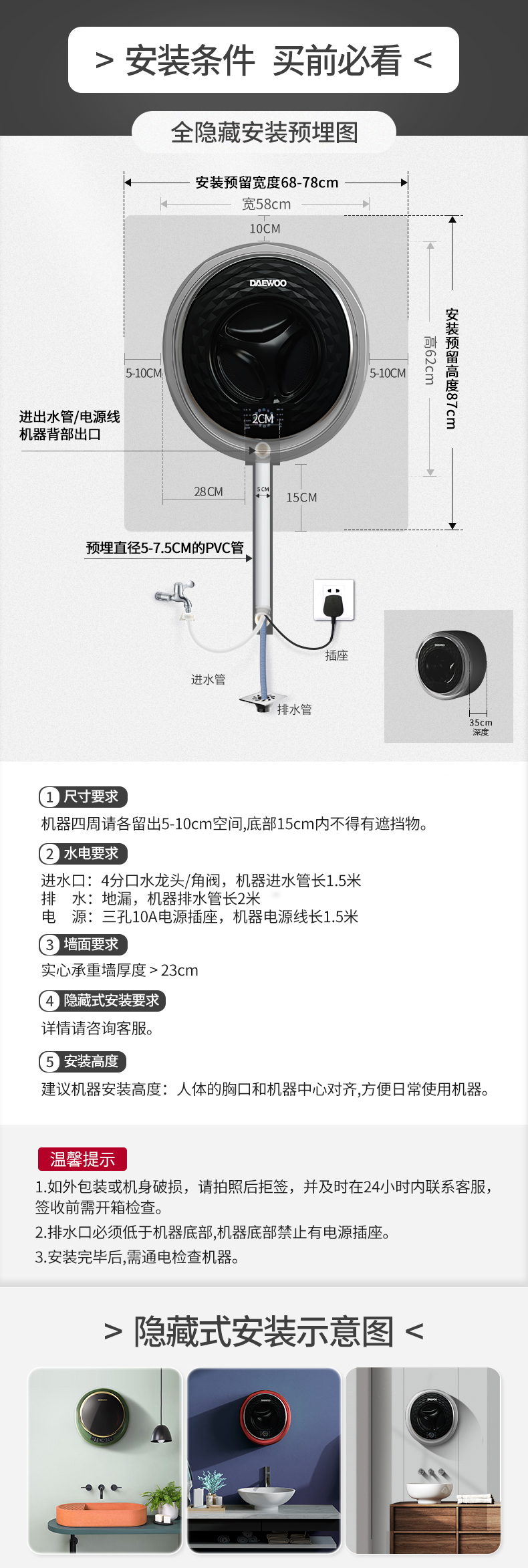 韩国大宇壁挂式洗衣机除菌除螨智能小型迷你婴儿宝宝儿童洗衣机