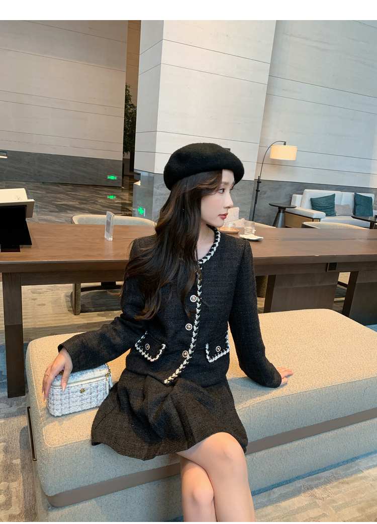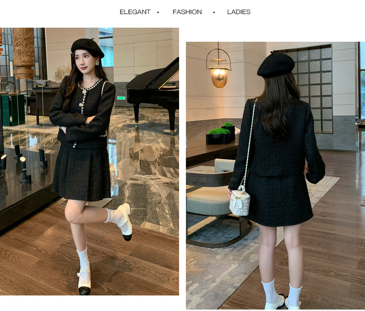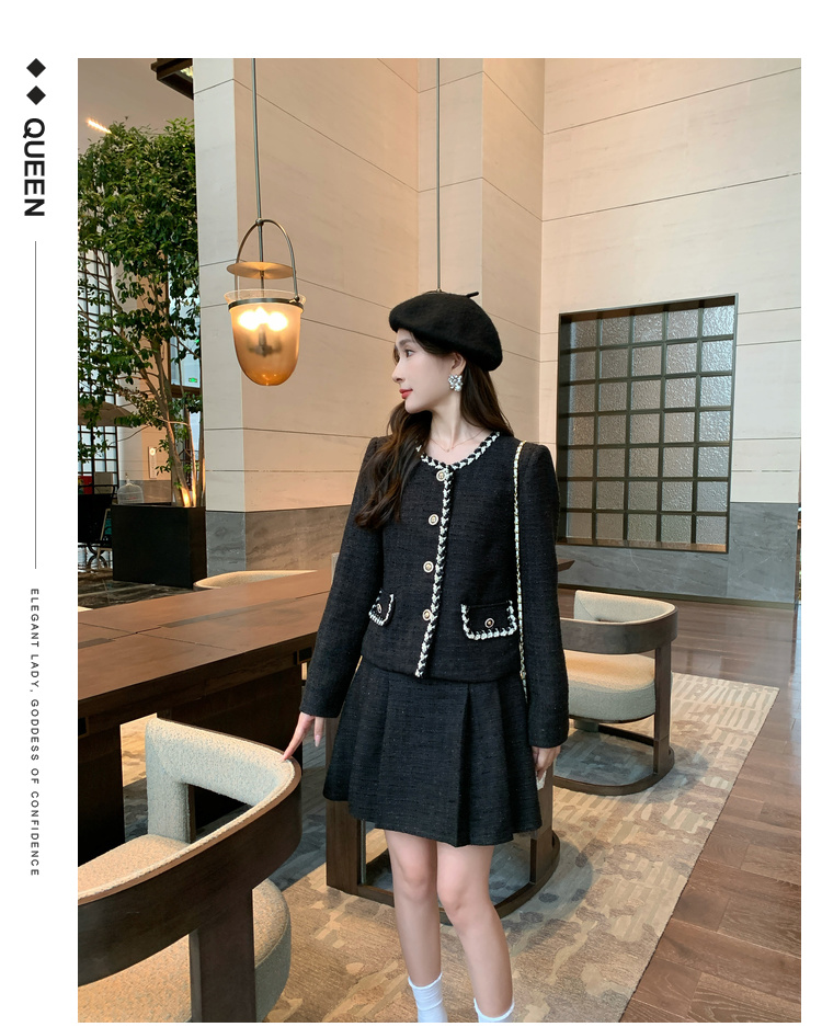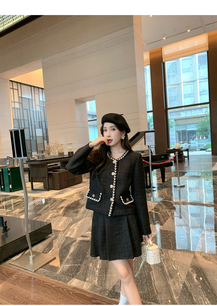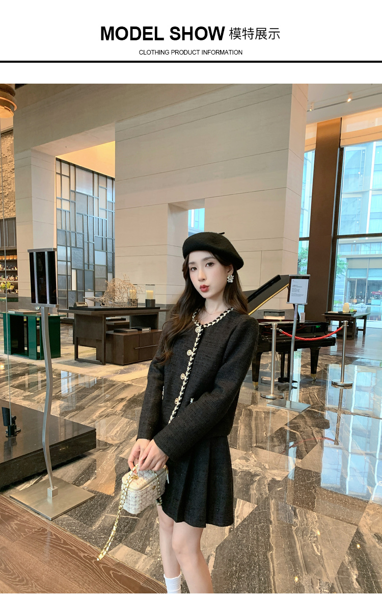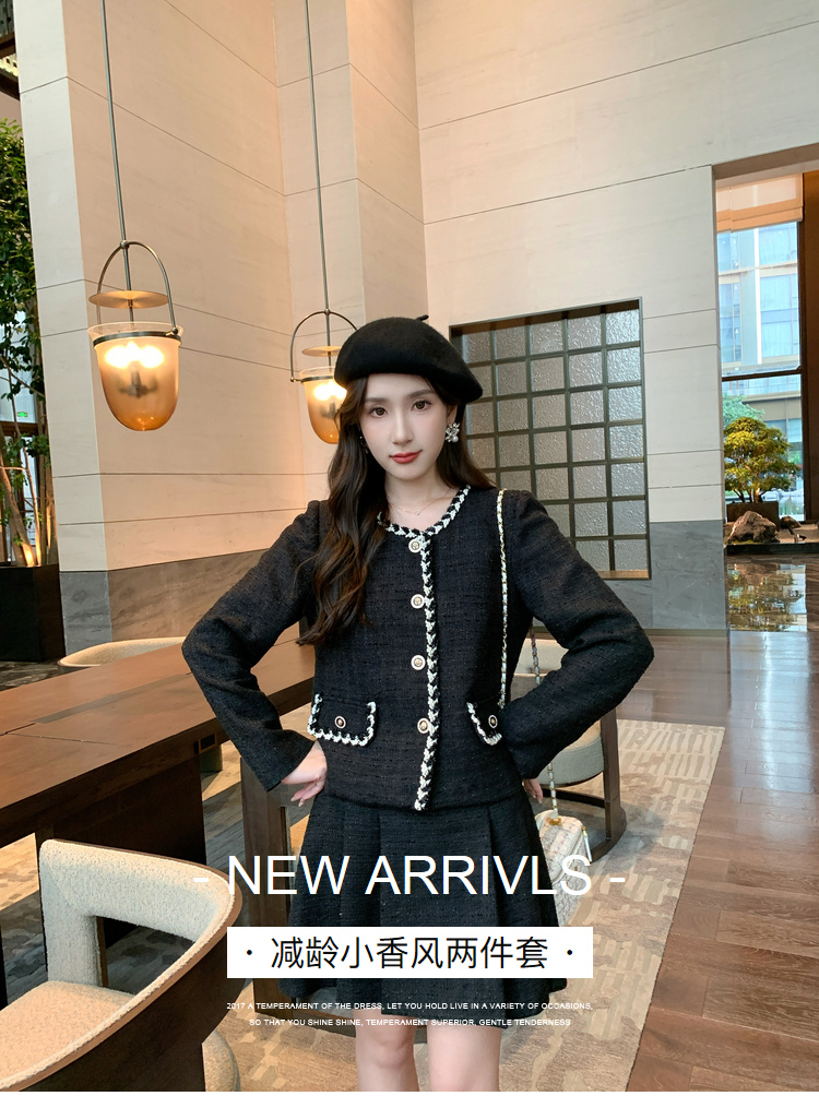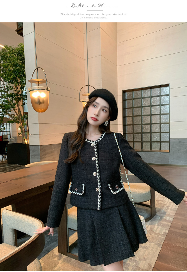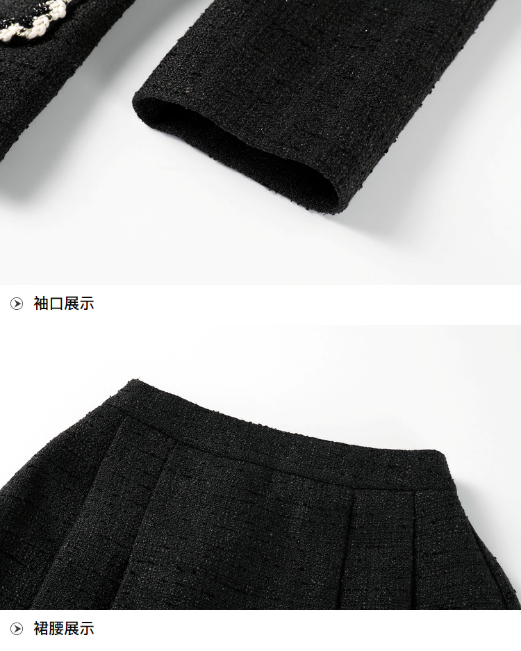 奢姿2024年秋季新款大码女装小香风套装胖妹妹外套百褶半裙两件套9943953540
