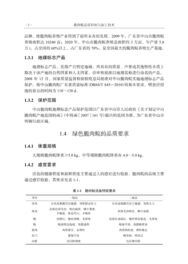 1.4 绿色脆肉鲩的品质要求 2