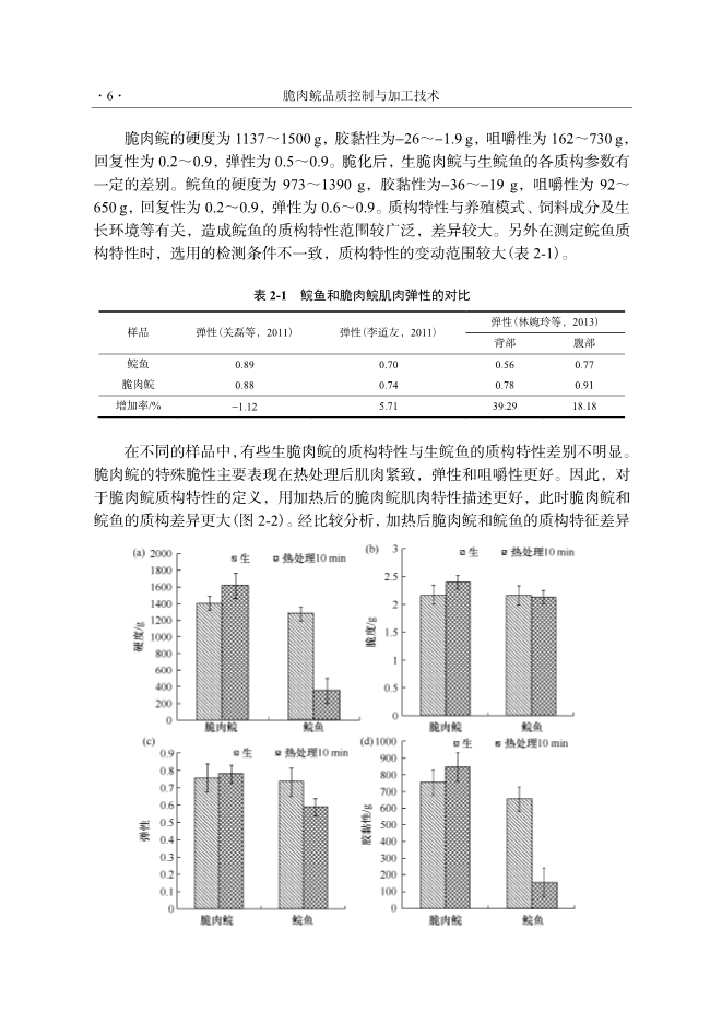 表2-1 鲩鱼和脆肉鲩肌肉弹性的对比