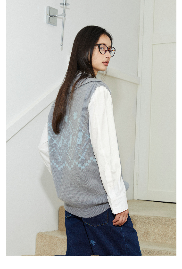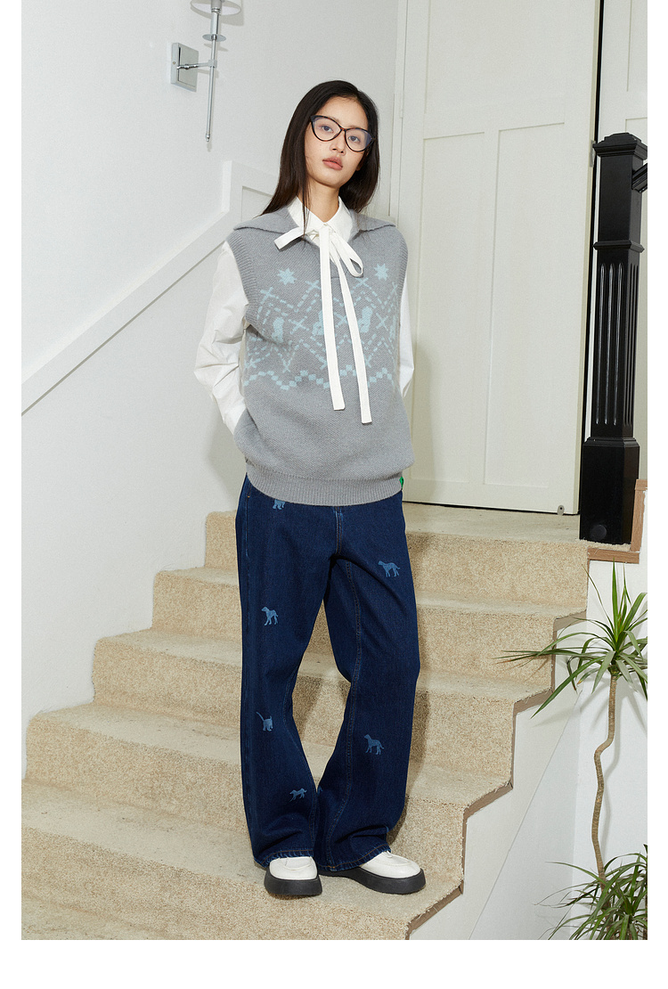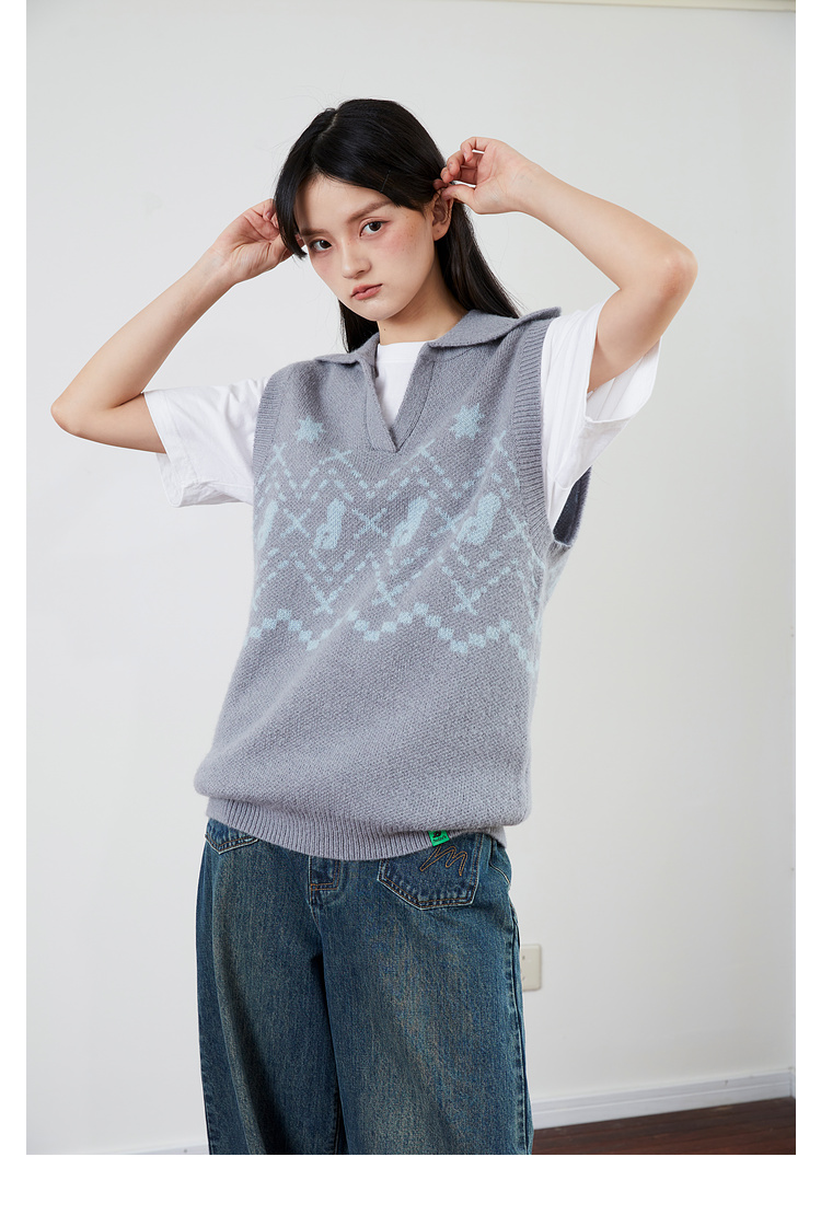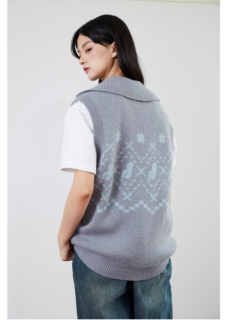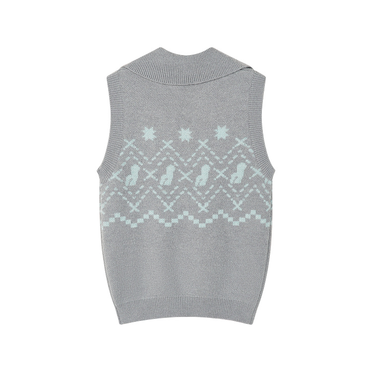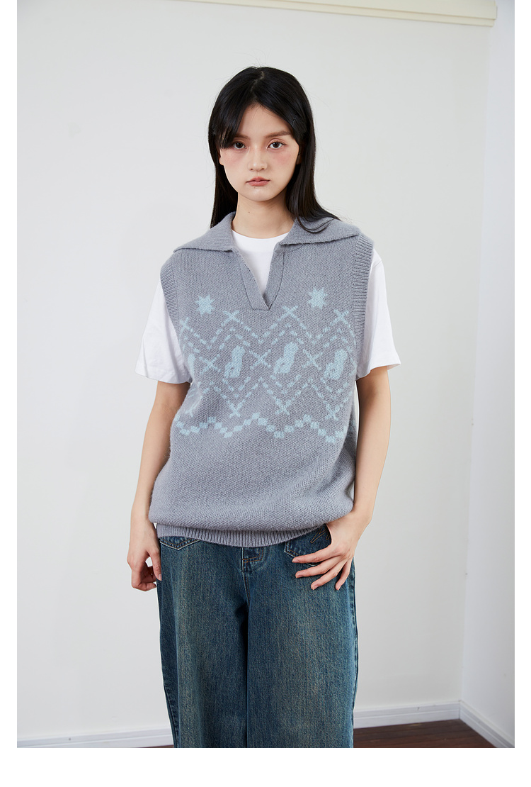 Mood Like Me/MMJ2402/猫咪提花翻领马甲背心