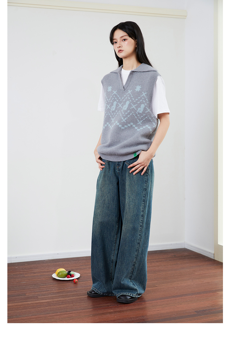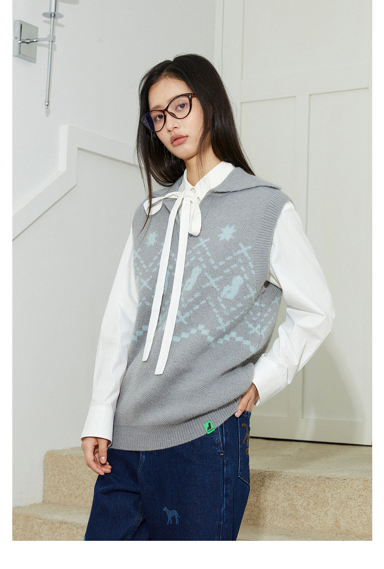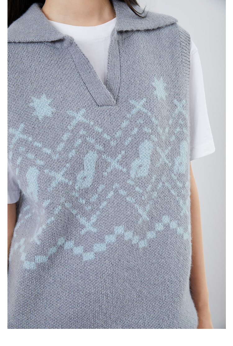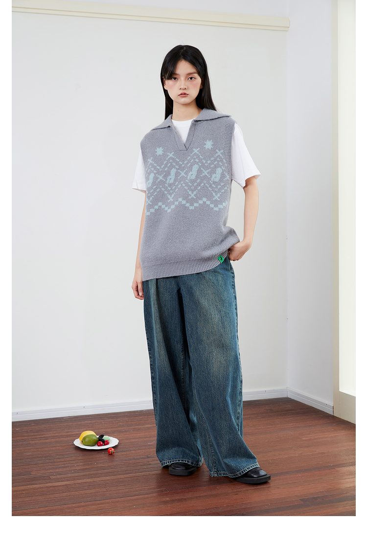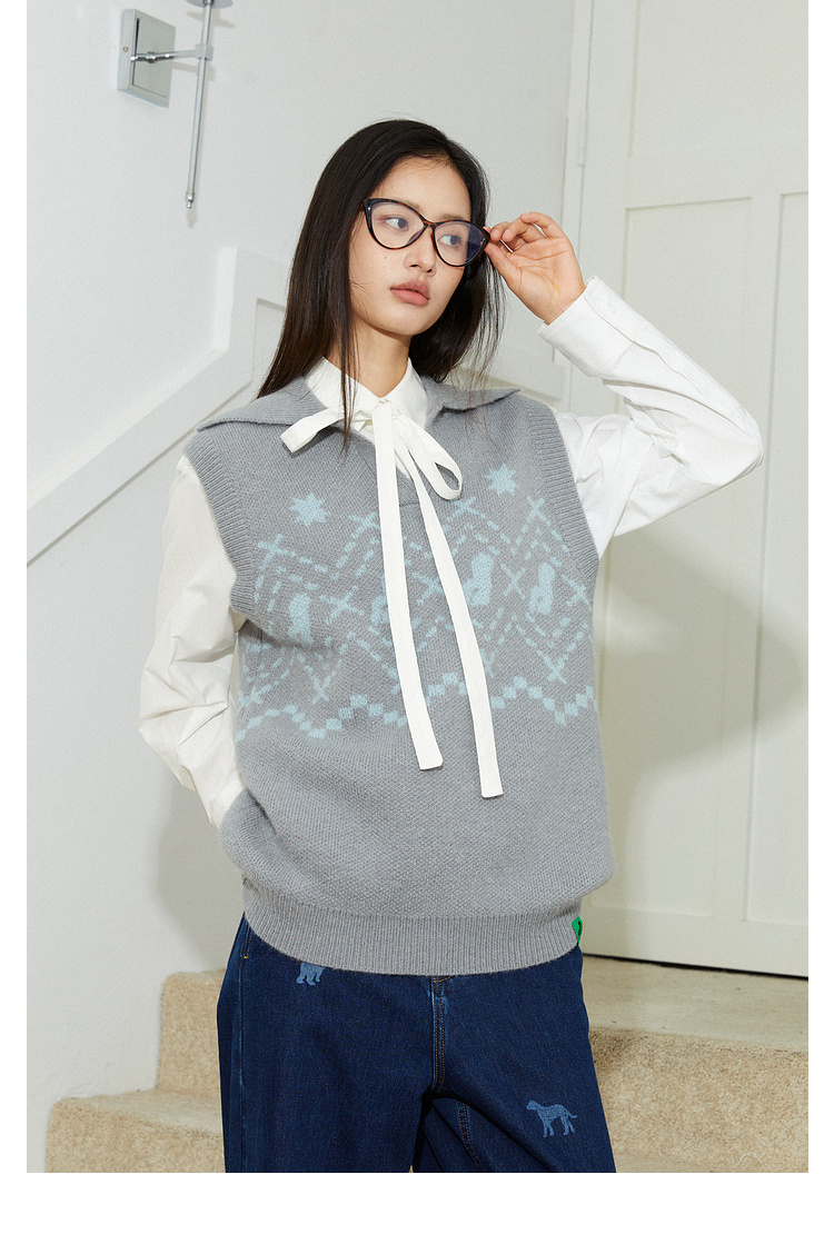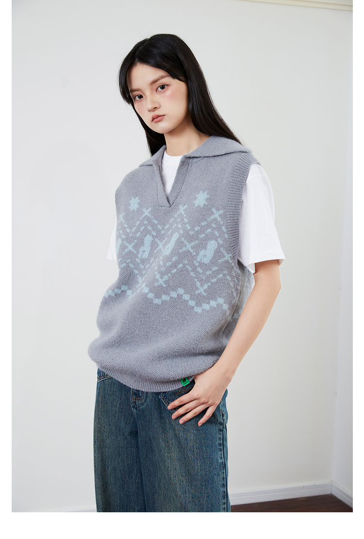 Mood Like Me/MMJ2402/猫咪提花翻领马甲背心