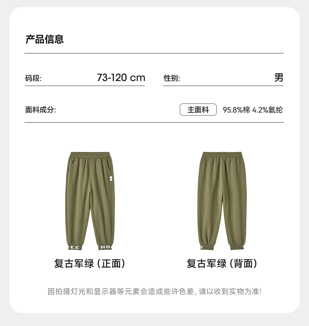 英氏儿童休闲长裤春夏长裤男童卫裤2025新款束脚裤YRKCJ1R011A