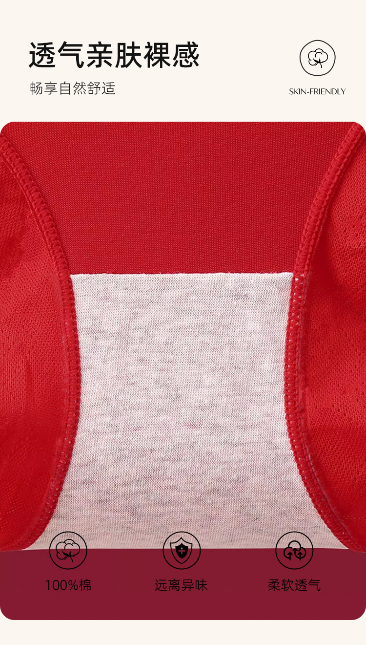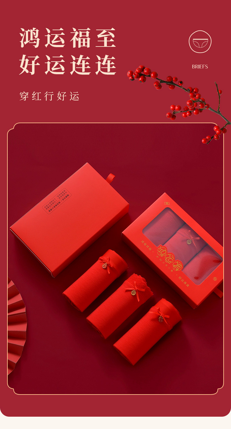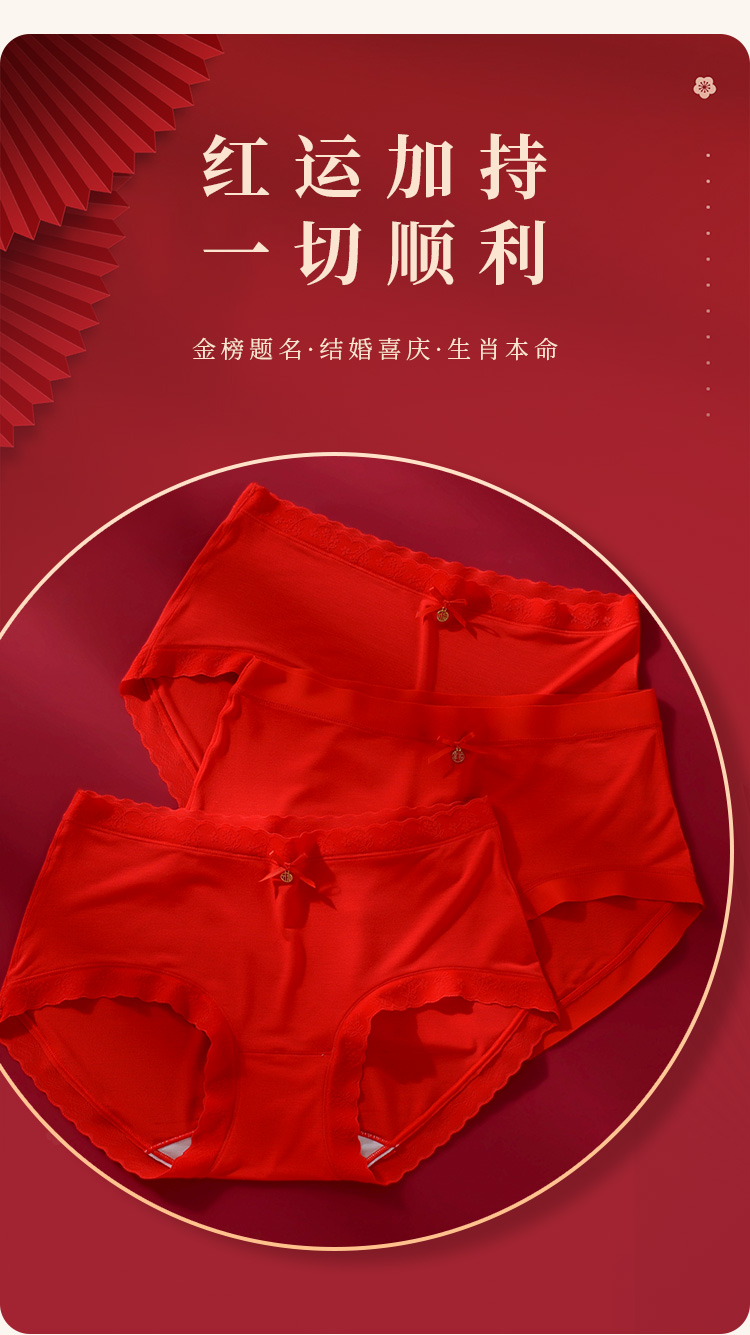 【99元3条,数量拍1】皇家丽美新年婚嫁红色内裤盒装轻薄舒适女士底裤3条装DKM1277
