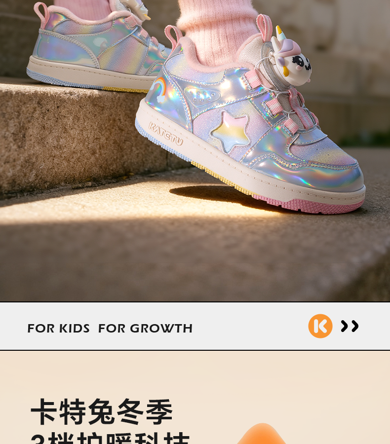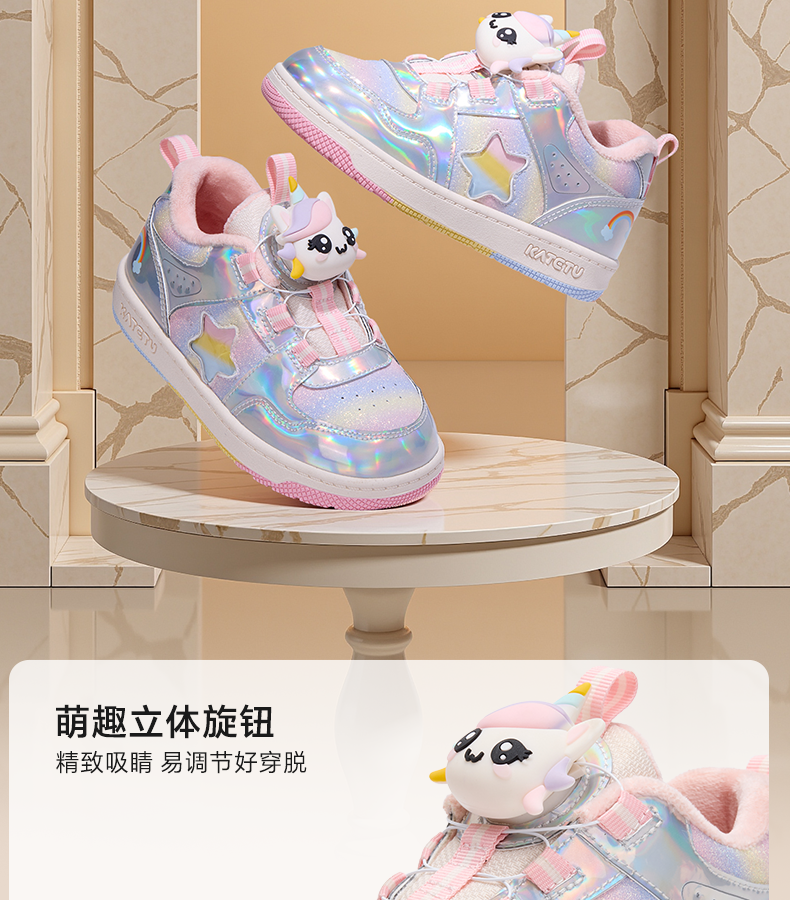 卡特兔童鞋儿童板鞋2025冬季新品小白鞋防滑耐磨加绒保暖儿童棉鞋