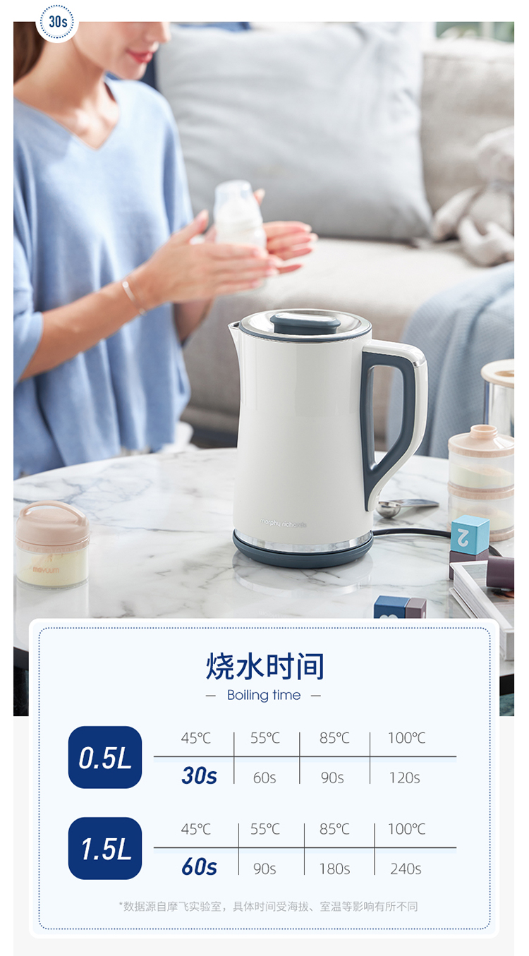 【授权商品】摩飞(Morphyrichards)烧水壶热水壶电热水壶家用恒温水壶 1.5L全不锈钢304双层防烫实时显温开水壶MR6070白
