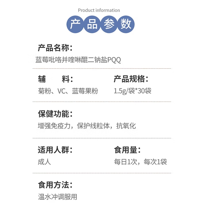 蓝莓吡咯并喹啉醌二钠盐固体饮料(PQQ)