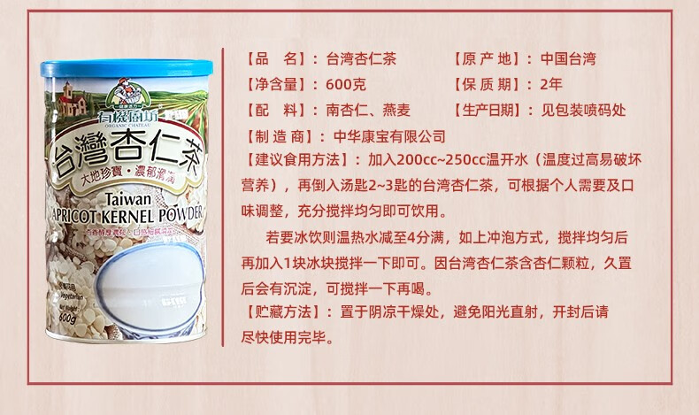 中国台湾有机厨坊杏仁粉600g/033617 保留杏仁的原香更醇厚