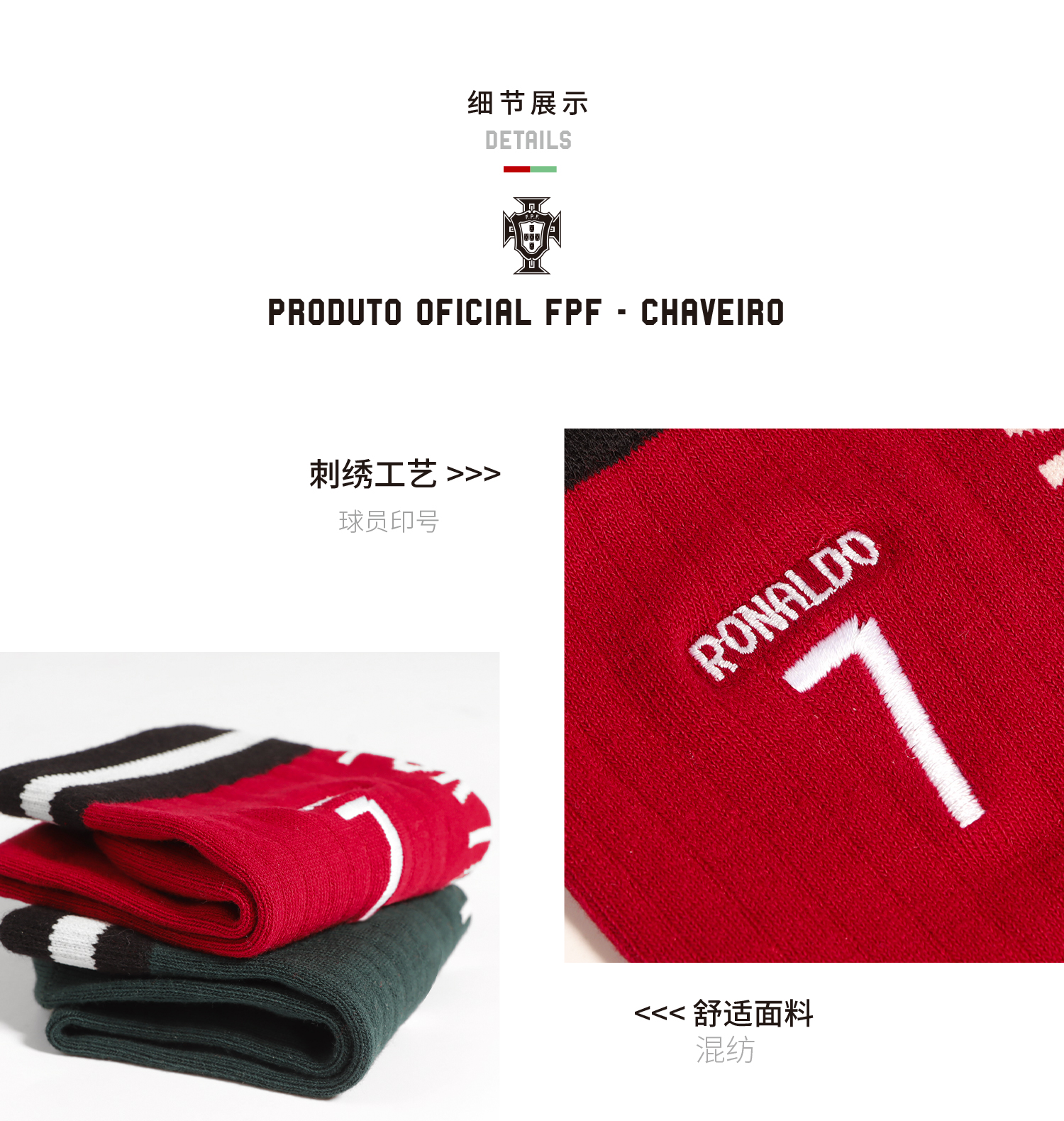 【官方正版】葡萄牙国家队 | 印号长袜套装红绿双色C罗球迷周边