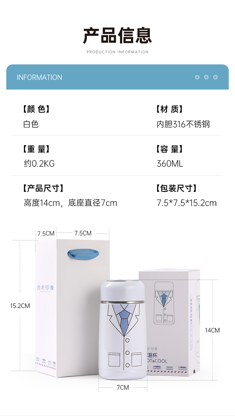 【实付满199送钥匙扣】【医生制服保温杯】可定制不锈钢泡茶水杯 男女创意便携喝水杯子