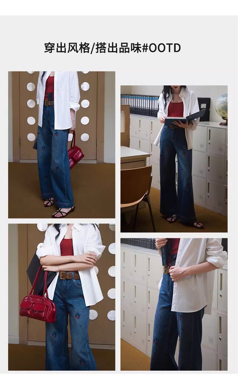 【门店同款】ENJOY秋季樱桃刺绣阔腿裤 164194921