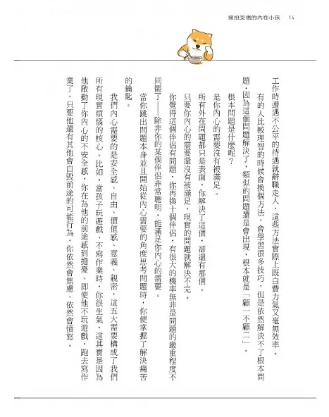 作者叢非從在本書中分享他諮商十年以來的諸多真實案例,藉由安全感、自由感、價值感、意義感、親密感等五大需要,帶領我們解讀情緒想要告訴我們的事情,找出內心匱乏的真正原因,並引領我們讓成熟的內心大人安撫與照顧受傷的內在小孩,與內在小孩一起成長。