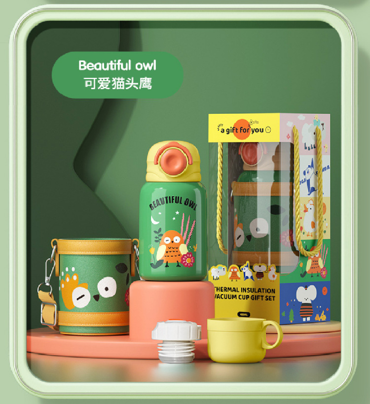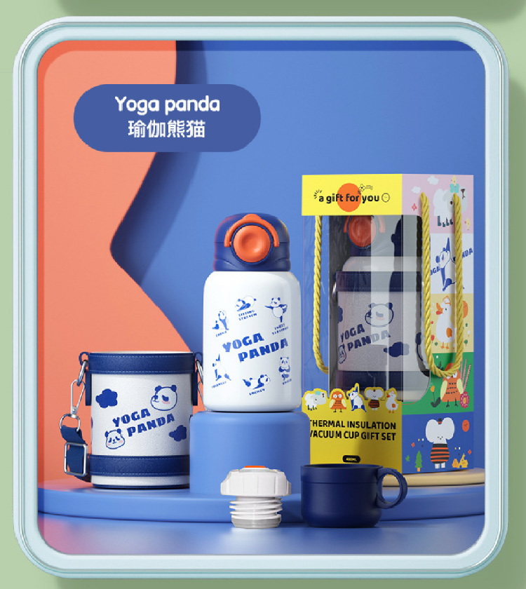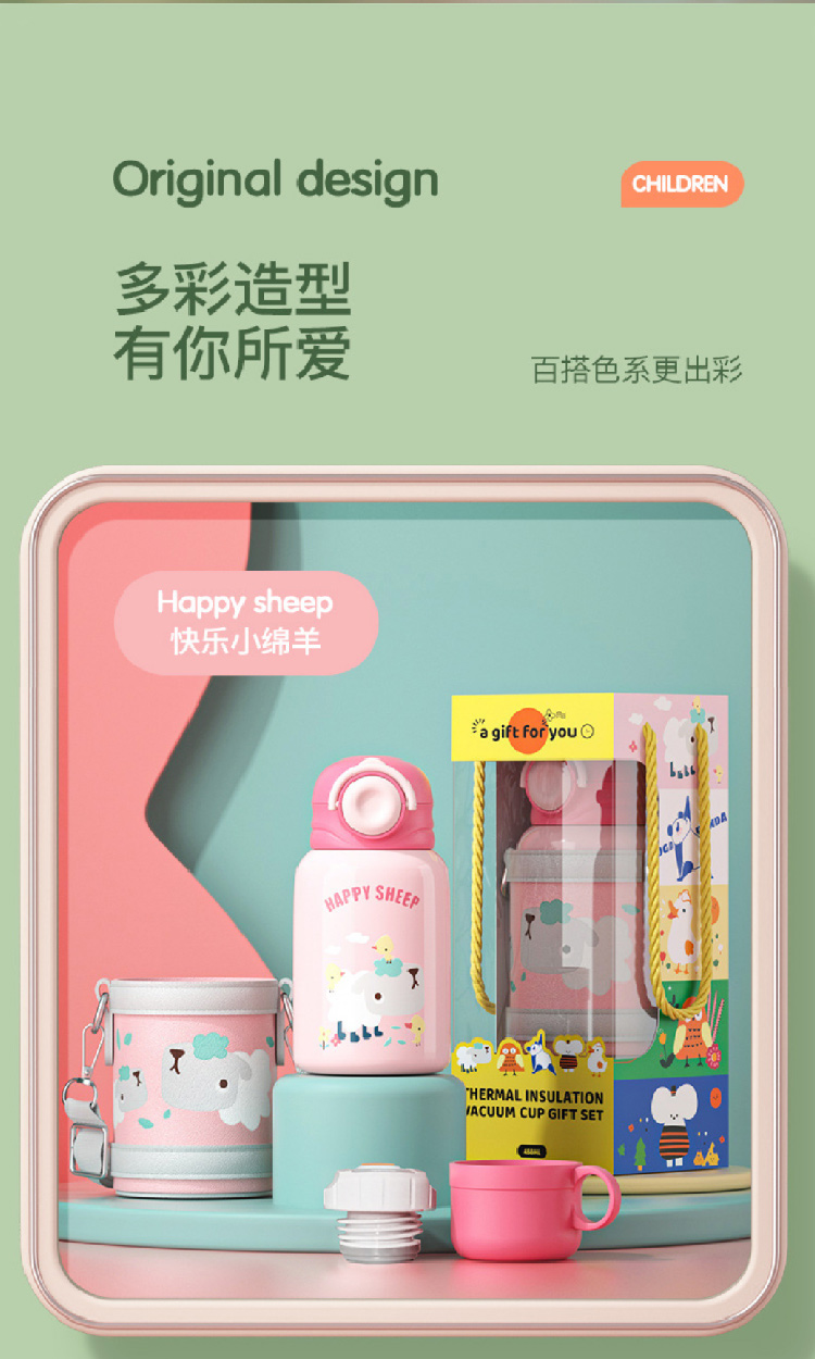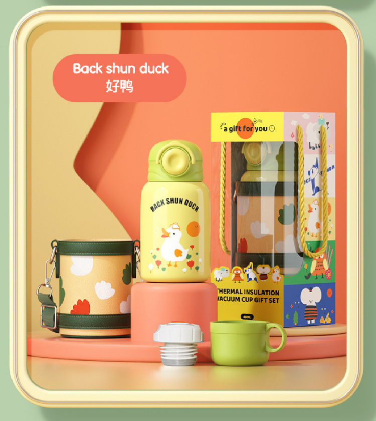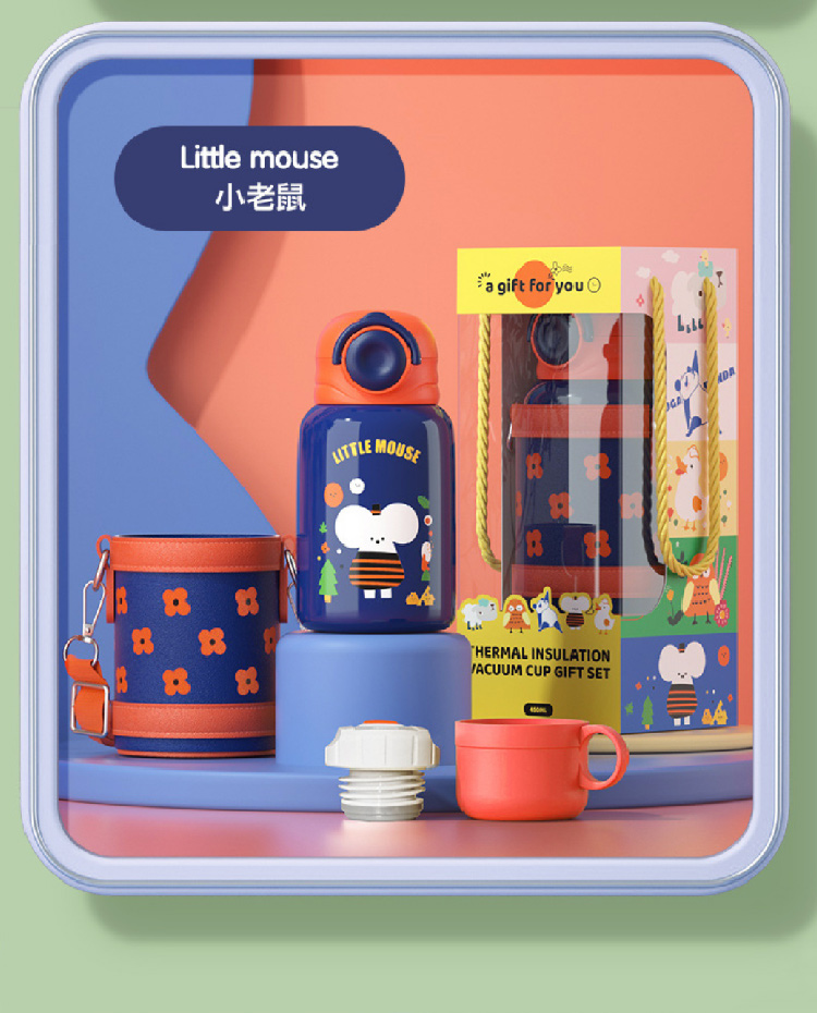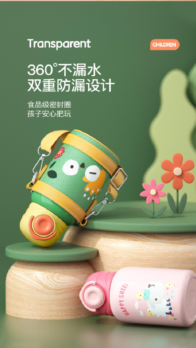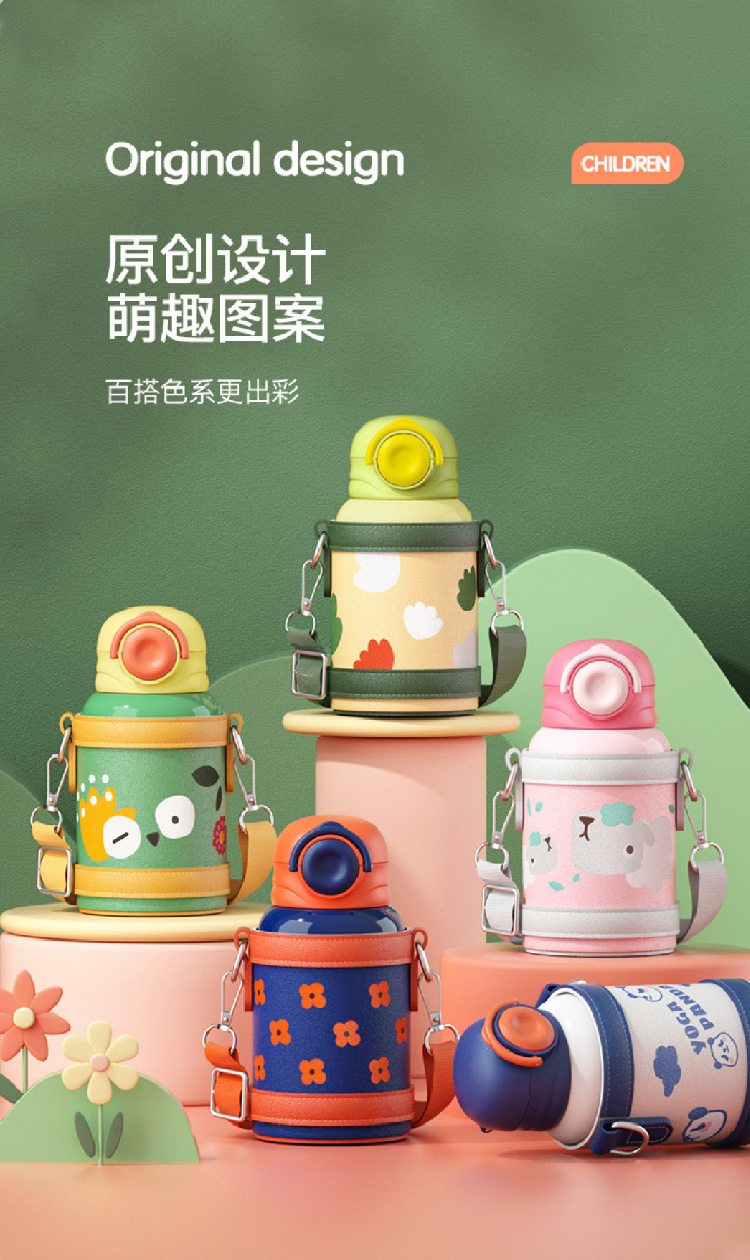 【儿童保温杯+杯套】 新款食品级不锈钢保温壶 可爱水壶便携防摔吸管杯学生水杯
